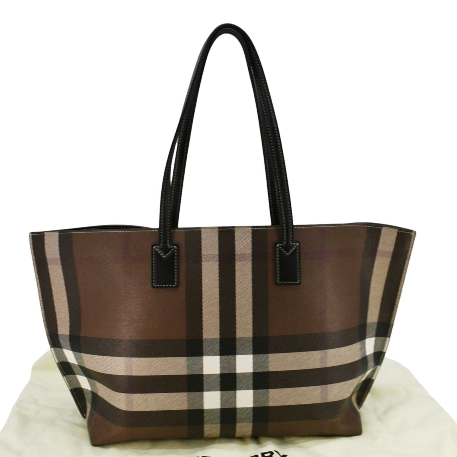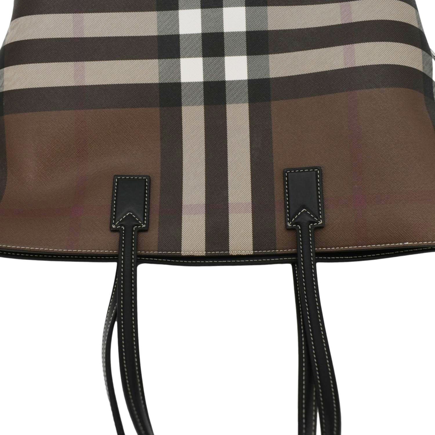 BURBERRY Check E-Canvas Tote Bag in Brown