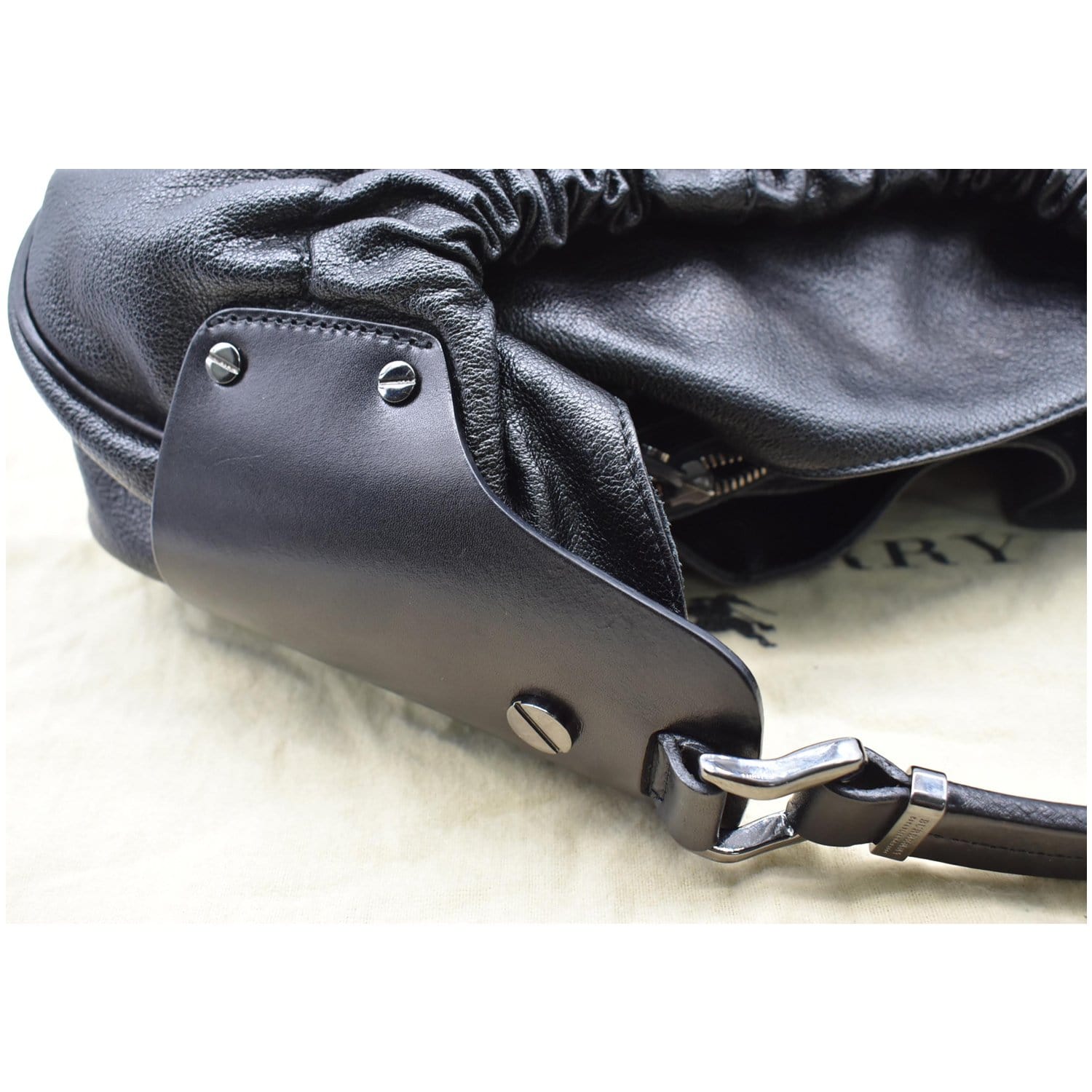 Burberry Warrior Drawstring Leather Hobo Bag