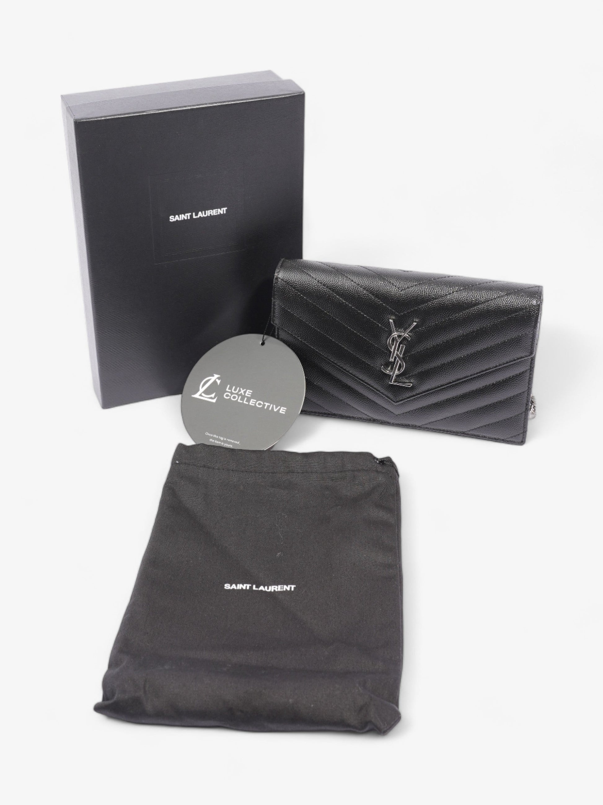 Saint Laurent Cassandre Envelope Black Grained Leather