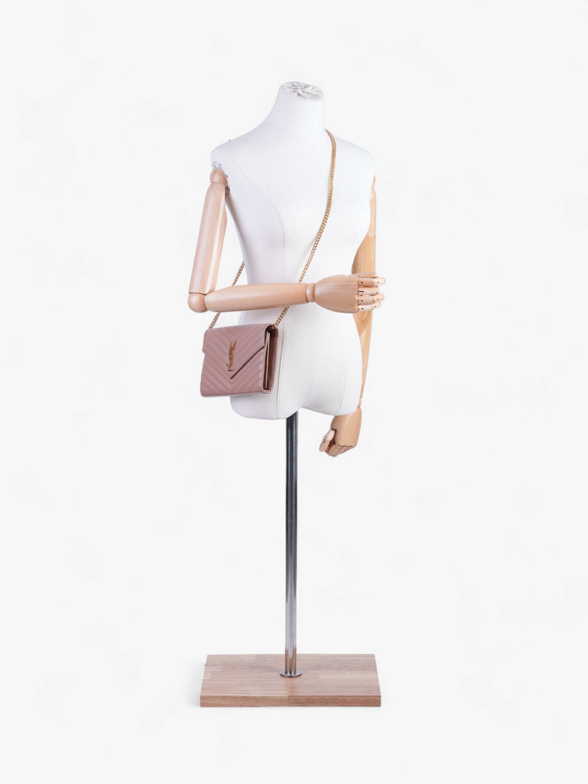 Saint Laurent Cassandre Envelope Chain Wallet Beige Matelasse Leather