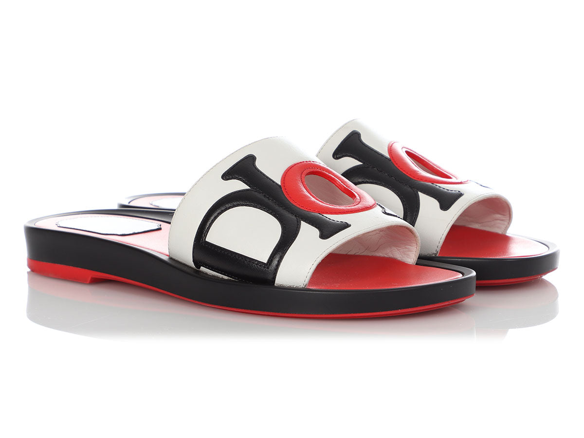 Slip into a poolside style with Dior’s Red, Black, and White Marina Sandals! Made of tricolor leather, these flat slides have the Dior name across the straps with cute cutouts in the O’s, leather inners, and rubber soles. In very good condition, they have light scuffing along the edges, a scuff inside the D on the left shoe, and wear on the soles. A more casual look, they broadcast some major designer love!