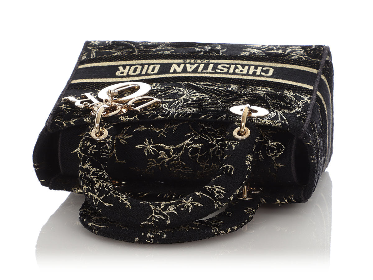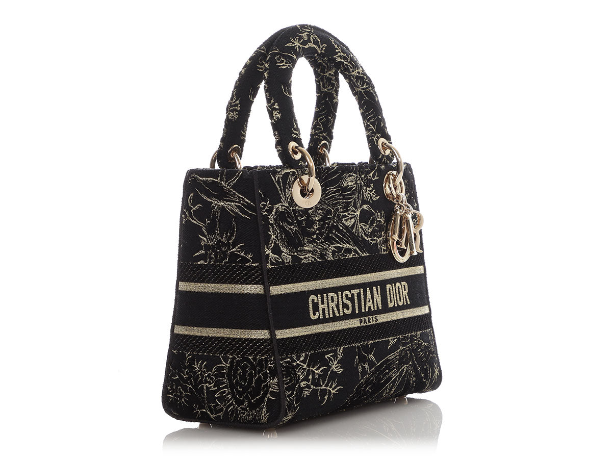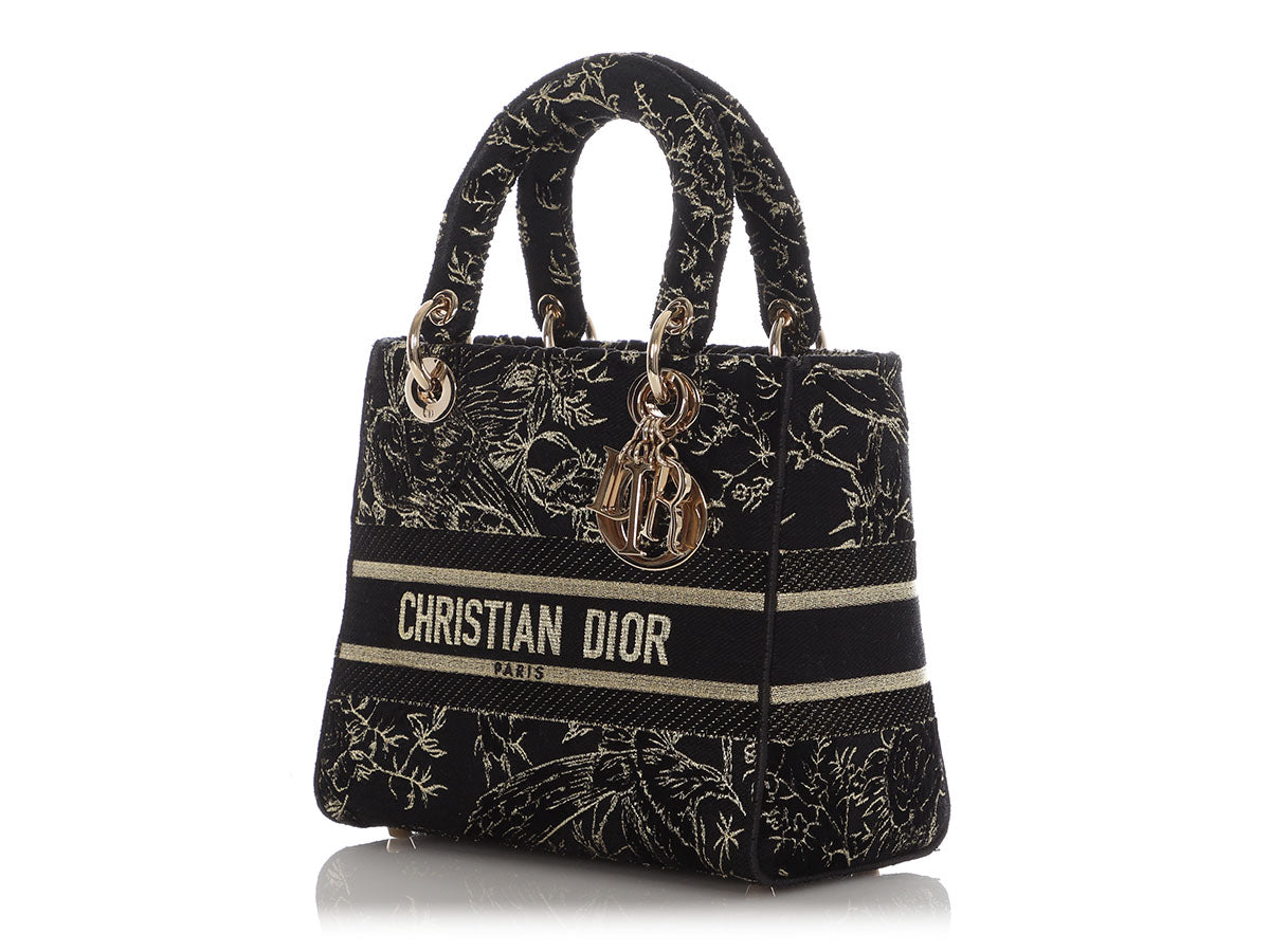 Dior Medium Black and Gold Toile de Jouy Embroidery Lady D-Lite Bag