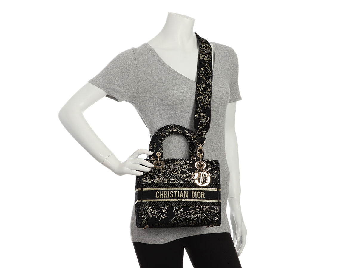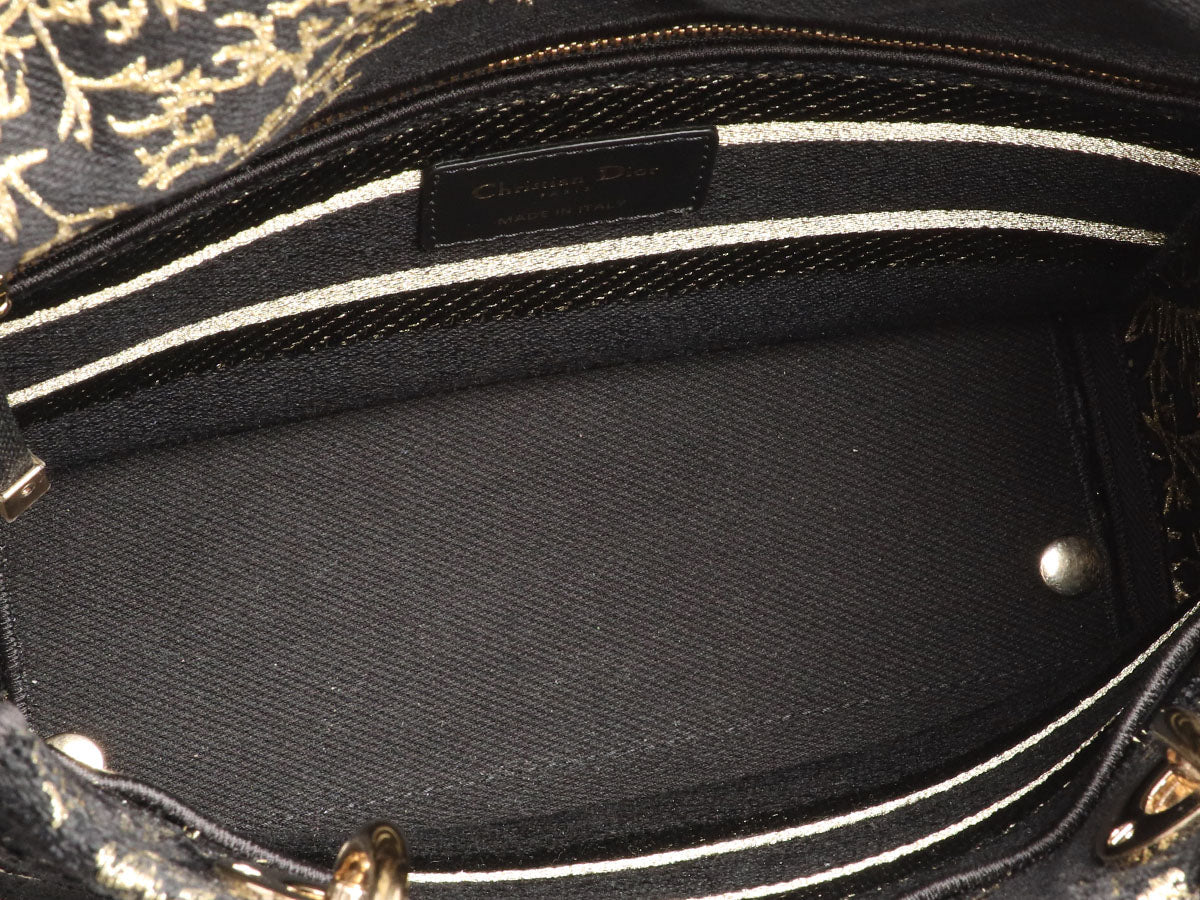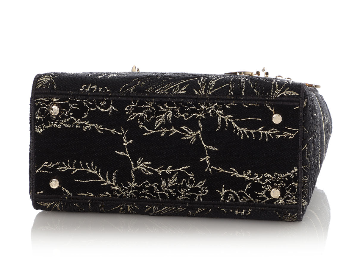 Dior Medium Black and Gold Toile de Jouy Embroidery Lady D-Lite Bag