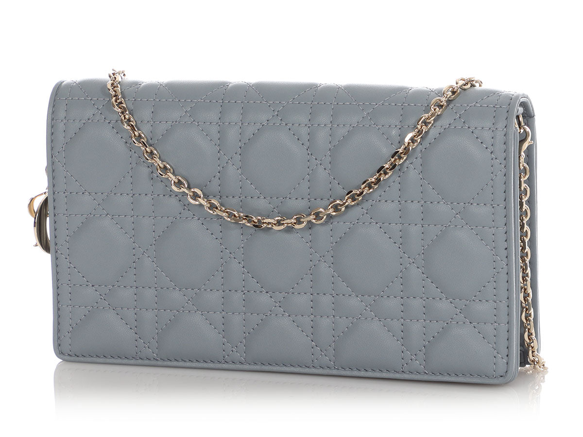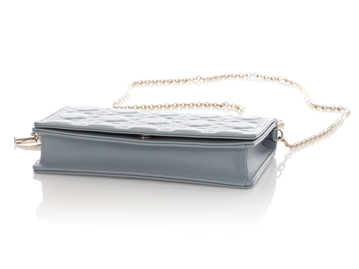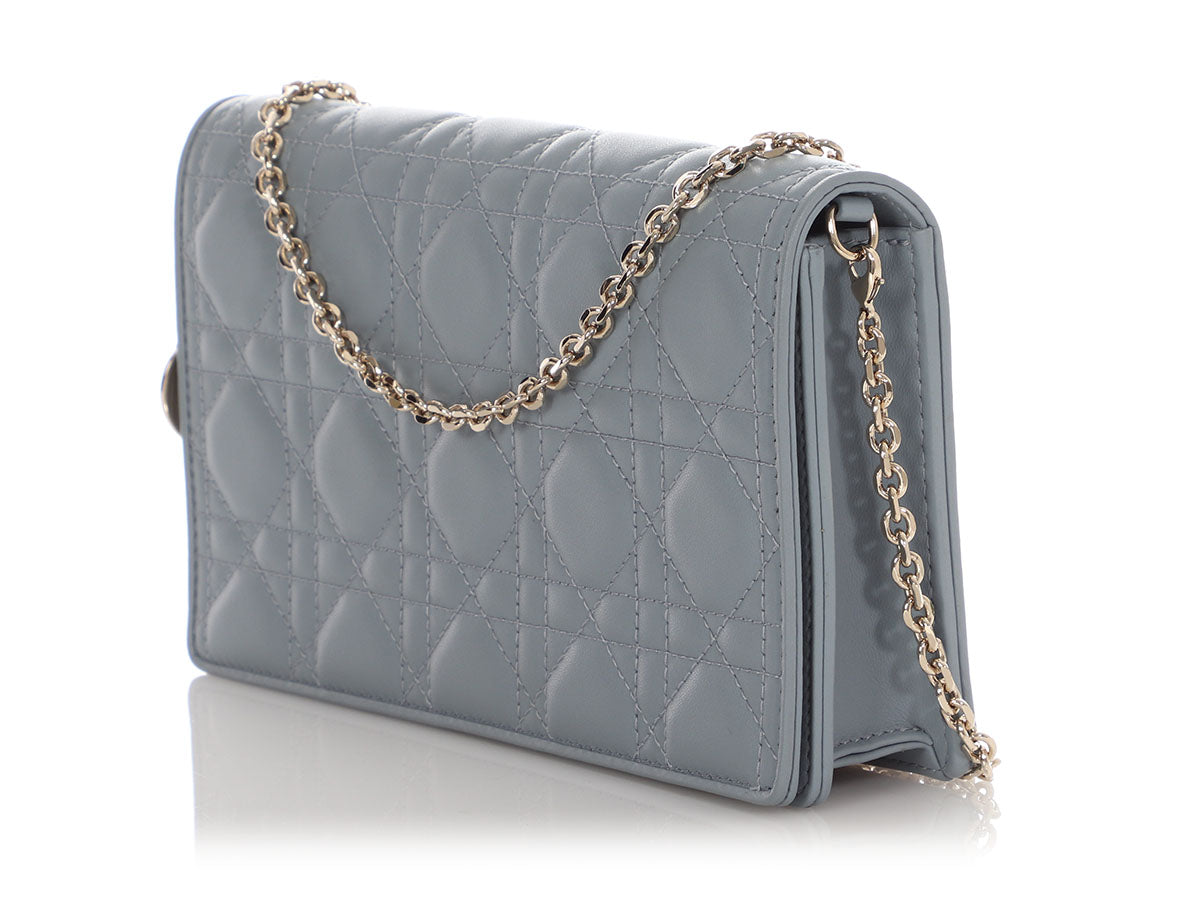 Dior Gray Lambskin Lady Dior Pouch With Chain
