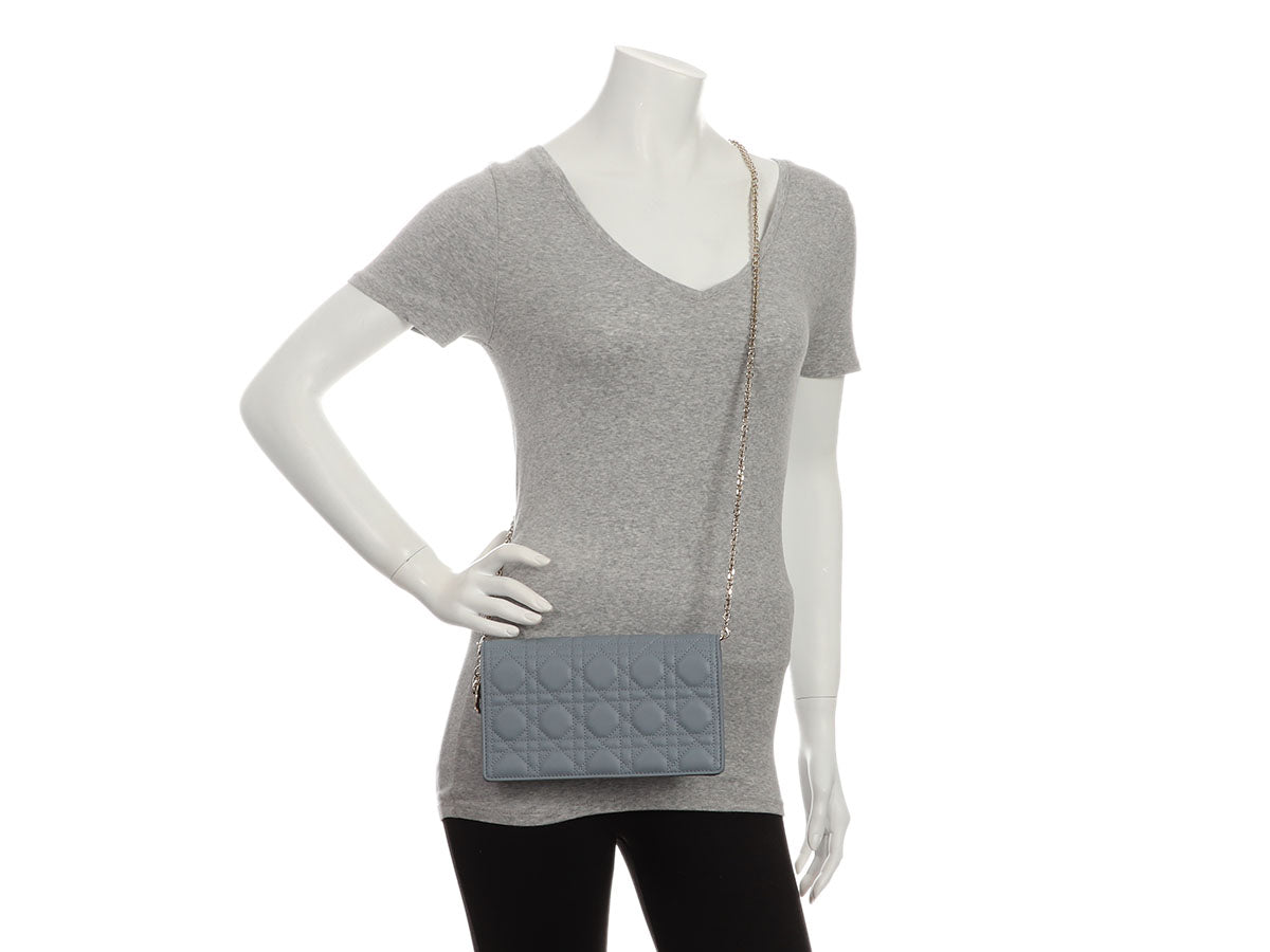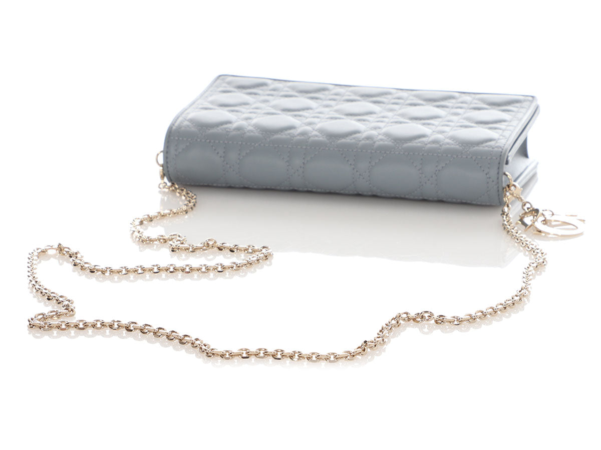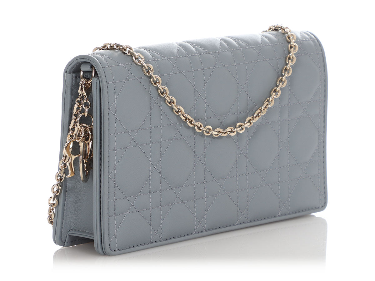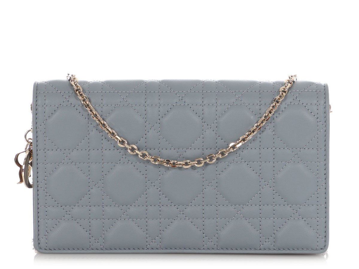 Dior Gray Lambskin Lady Dior Pouch With Chain