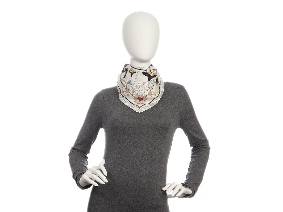 Abracadabra, Dior’s Le Bateleur Silk Scarf has appeared! Made from 100% silk in shades of white, black, and blue, it features “Le Bateleur” (The Magician) tarot motif—a card that signifies untapped potential, creativity, and resourcefulness. In good condition, it has a few small runs, a few stains near the center, and a strong perfume smell. Adding this scarf to your collection is in the cards!