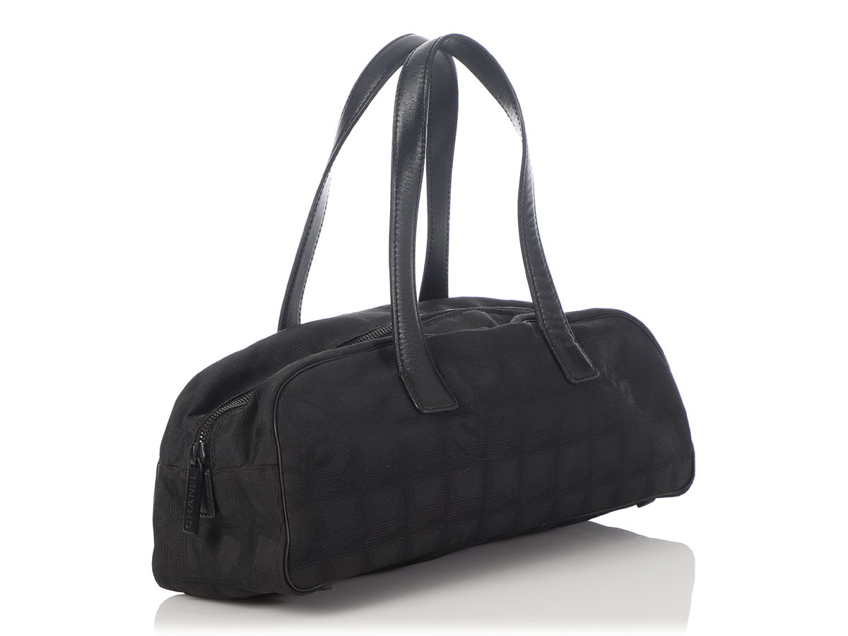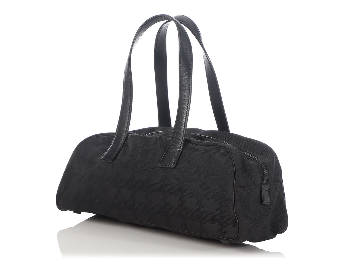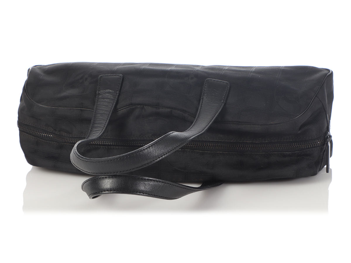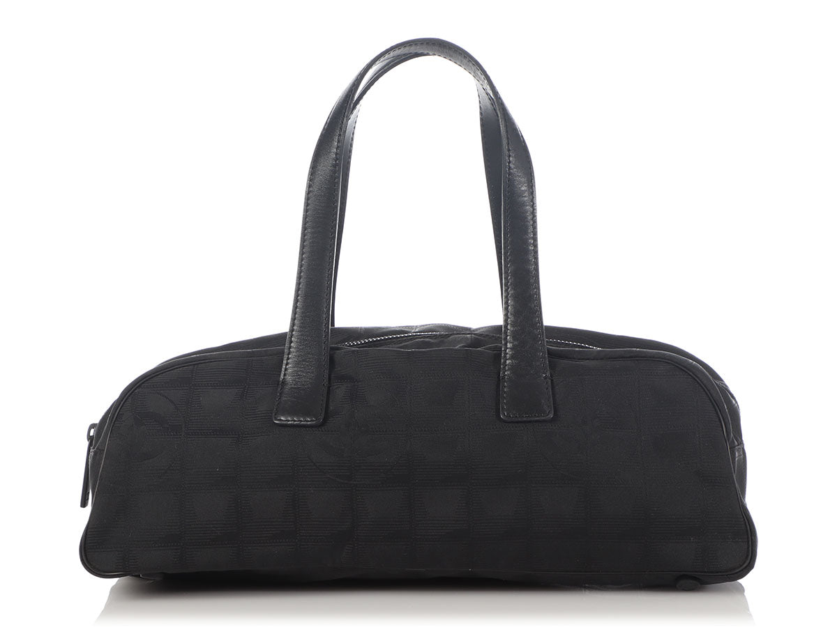 Chanel Black Printed Nylon Travel Ligne Bowler Bag