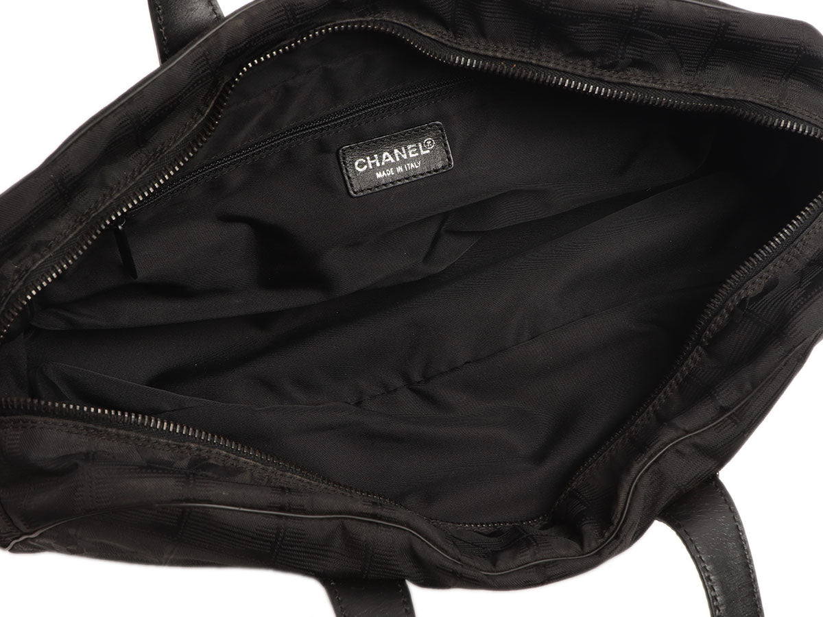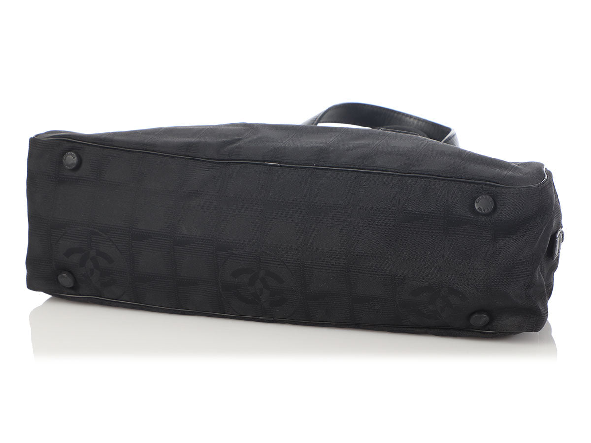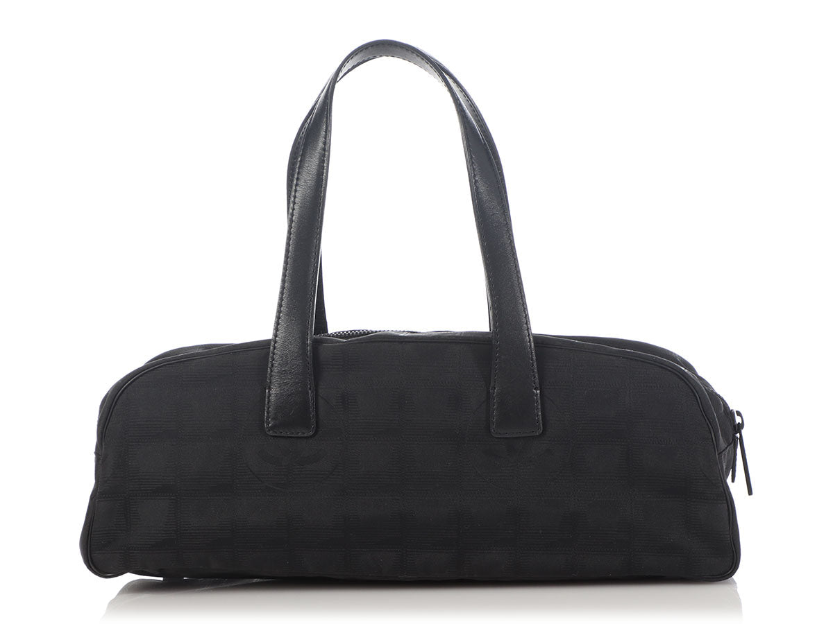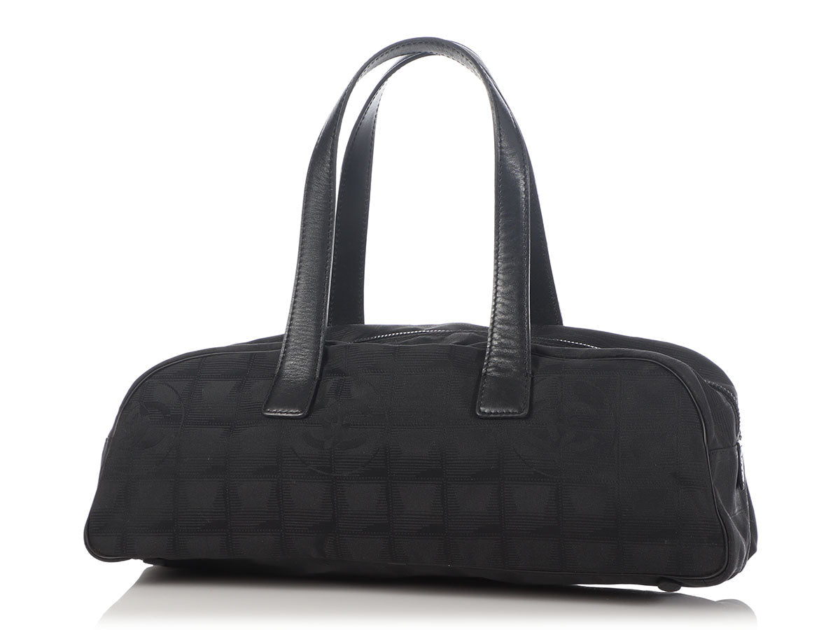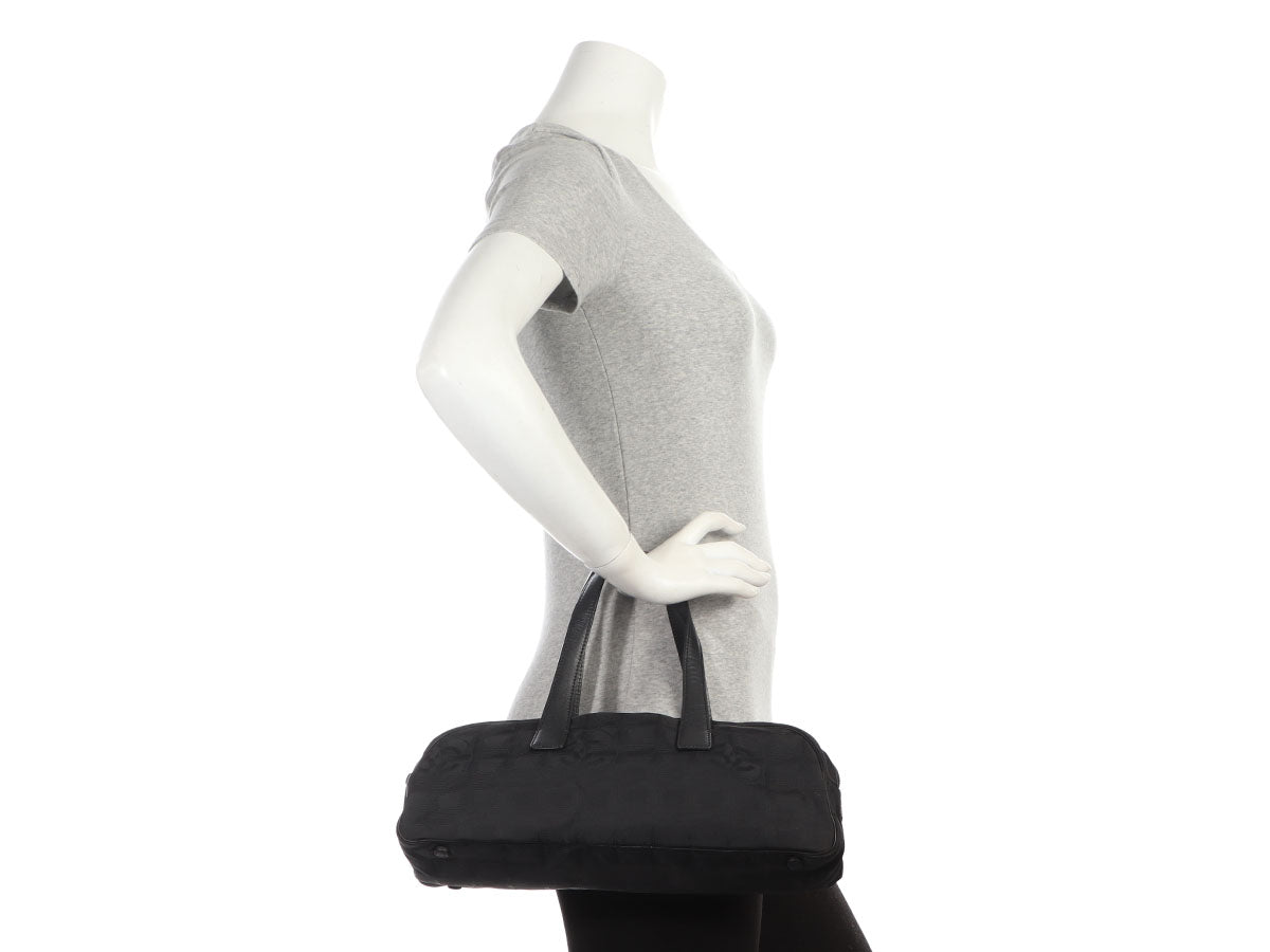 Chanel Black Printed Nylon Travel Ligne Bowler Bag