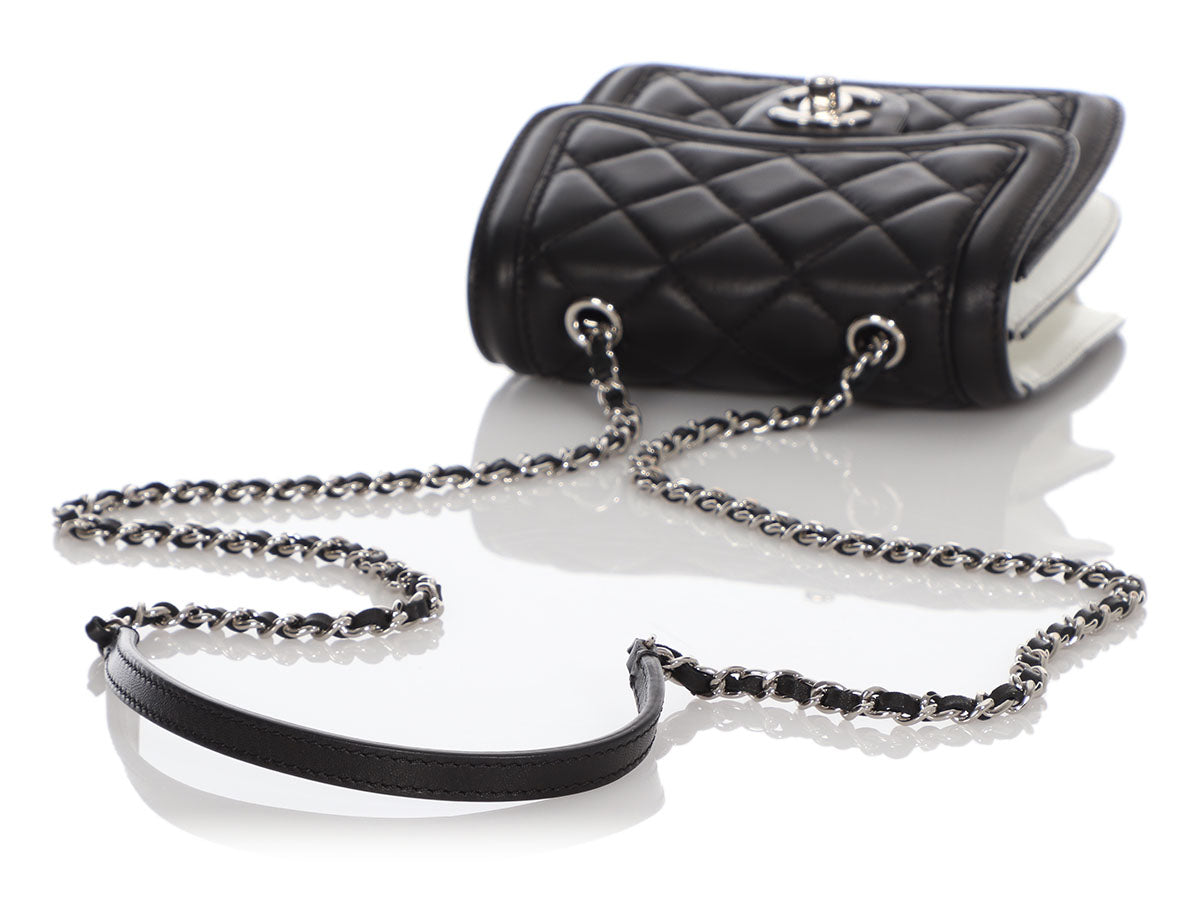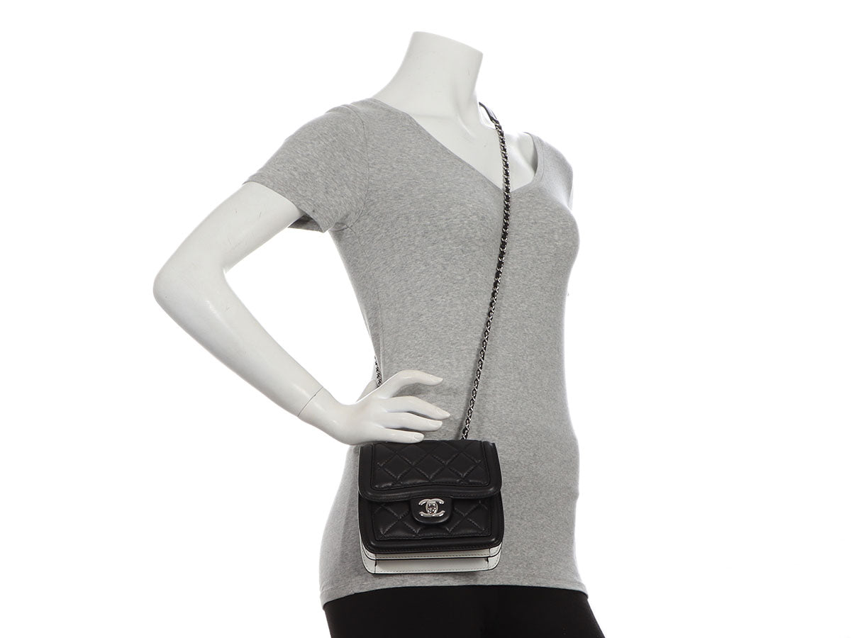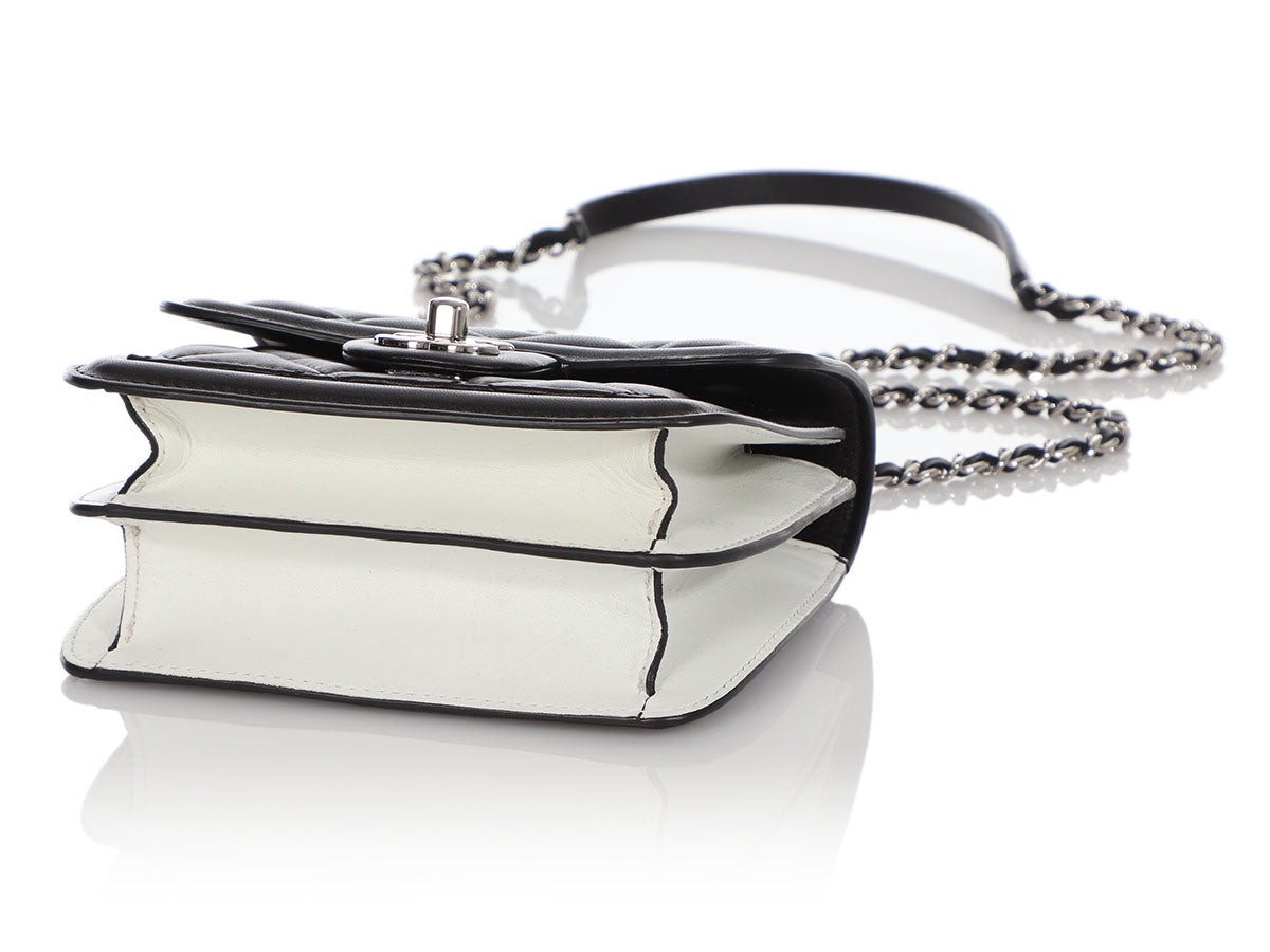 Hear ye, hear ye, fashionistas of the world, Chanel’s Mini Black and White Leather Citizen Flap just got into town and she’s rarin’ to go! The front and back faces are black diamond-quilted leather that feels to be lambskin and the sides are in smooth white leather. The flap opens with a silver-tone logo turnlock that opens to black-fabric lining that is divided by a zippered pocket with a space on either side and a slide pocket in the back section. The leather-and-chain crossbody strap with a 25.5-inch drop has a leather shoulder pad for comfort on the body. In very good condition from 2013, it comes with a dustbag, box, and card and has a few marks on the leather. It’s black and white and plain as the nose on your face—this Citizen is one to add to your Chanel collection!