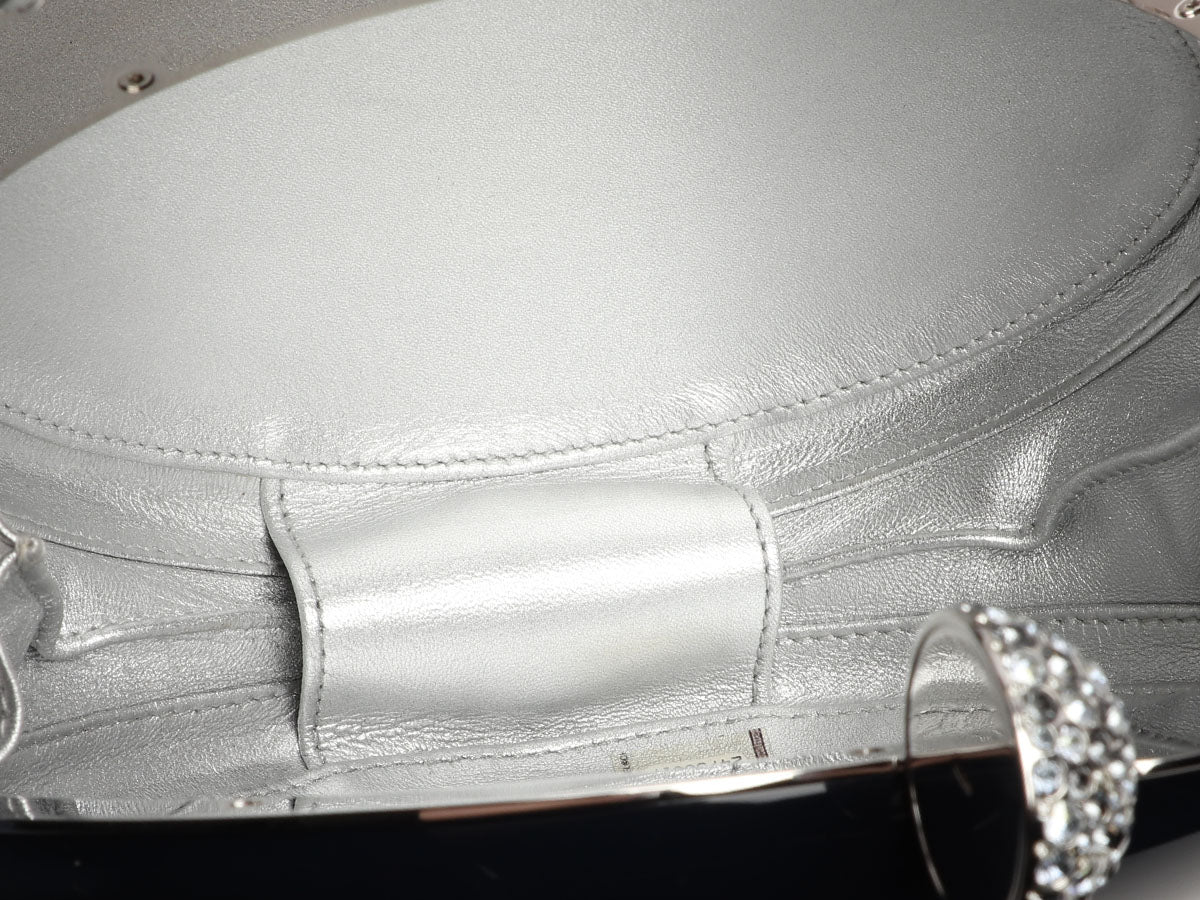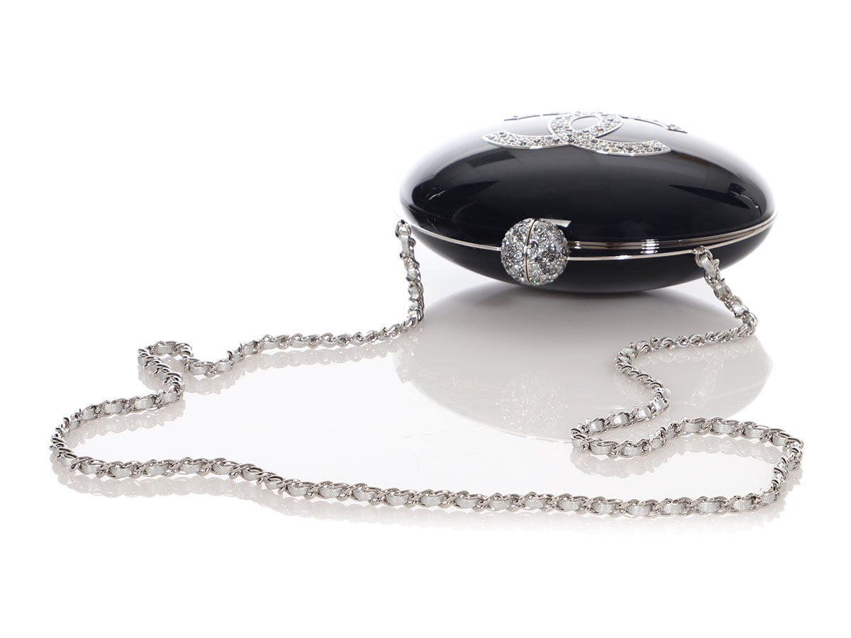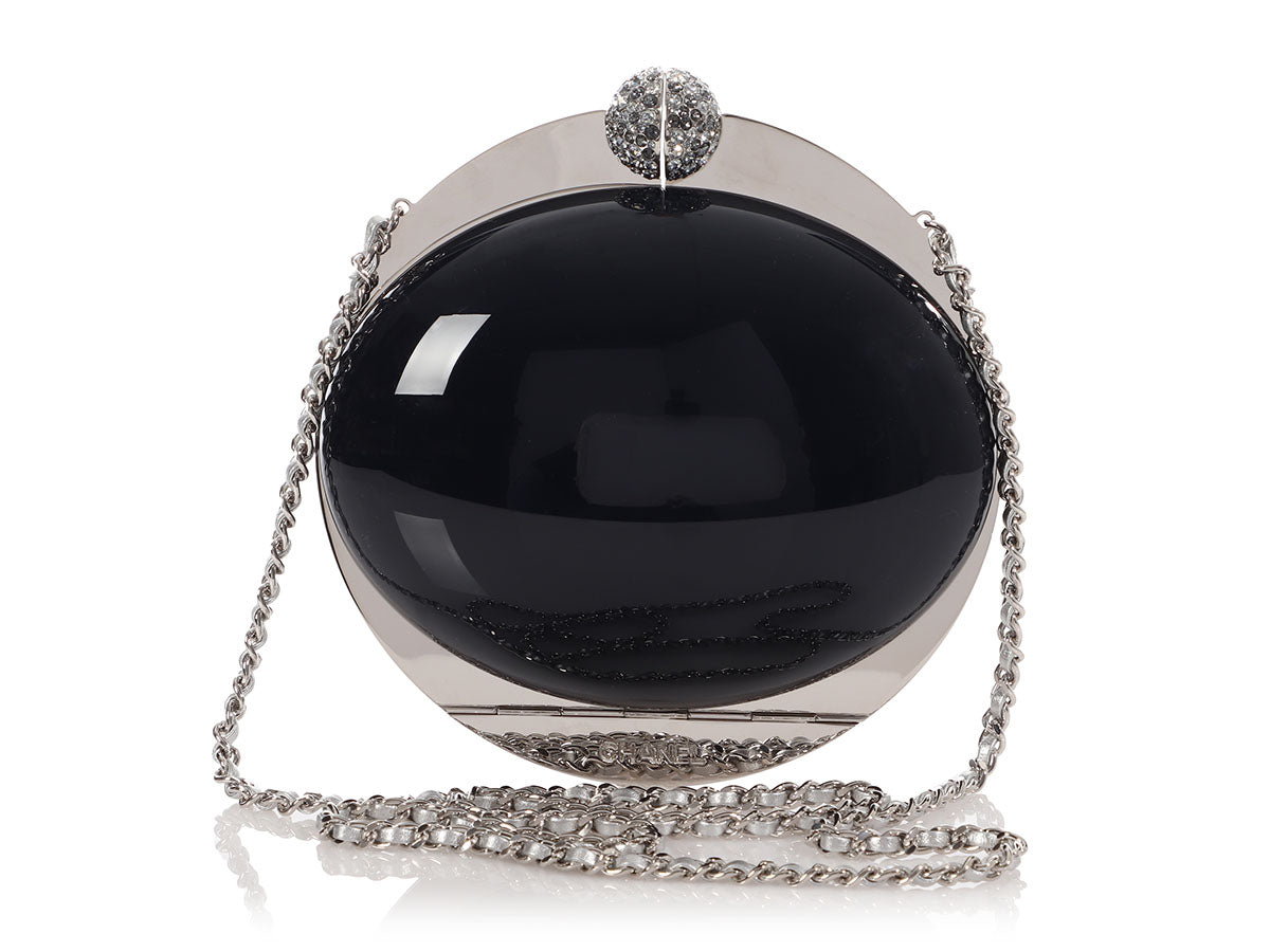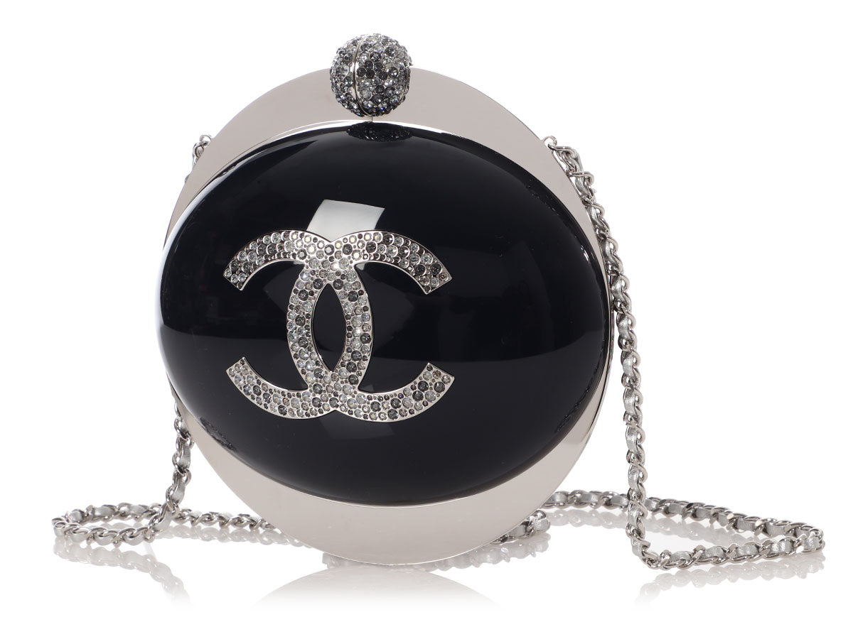 Chanel’s Navy Evening on the Moon Minaudière is the perfect accessory for a night on the town or a daytime stroll! Made of navy-blue resin, this round frame bag is decked out with silver-tone hardware, a Swarovski crystal ball clasp and a crystal-studded CC logo on the front face. It has a silver-leather interior with no pockets and the leather-threaded chain strap has a generous 22-inch crossbody drop. In pristine condition from 2017-18, it comes with a dustbag, box, and card and was probably not worn but there are a few very faint marks on the metal. This very cool bag is truly out of this world!
