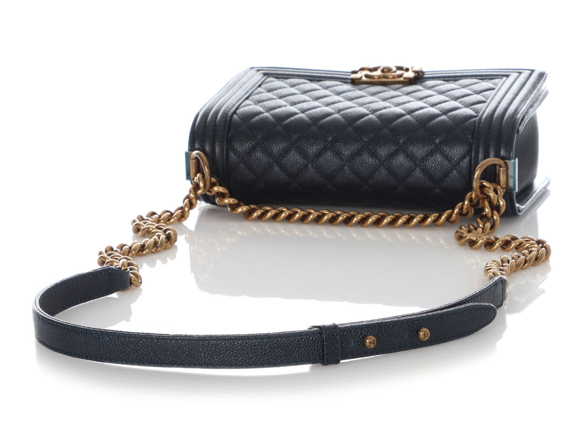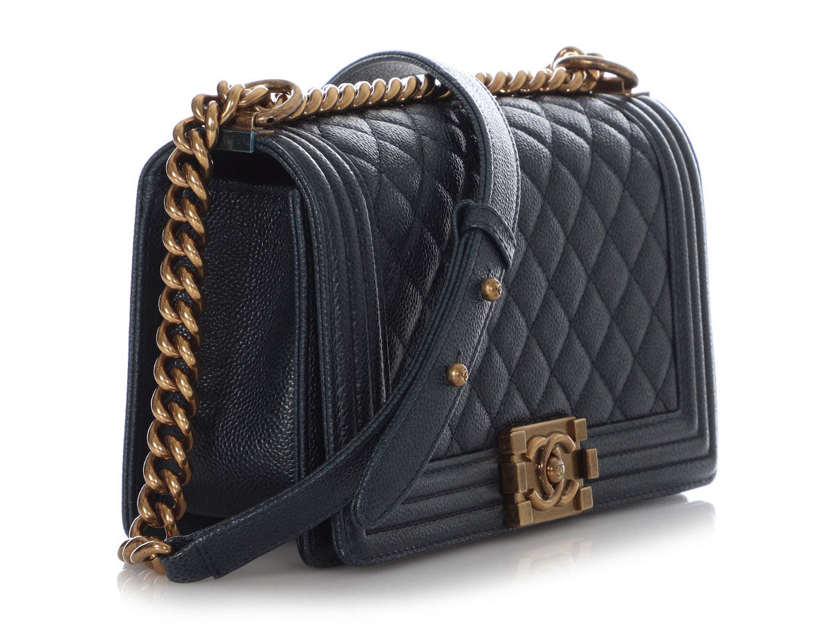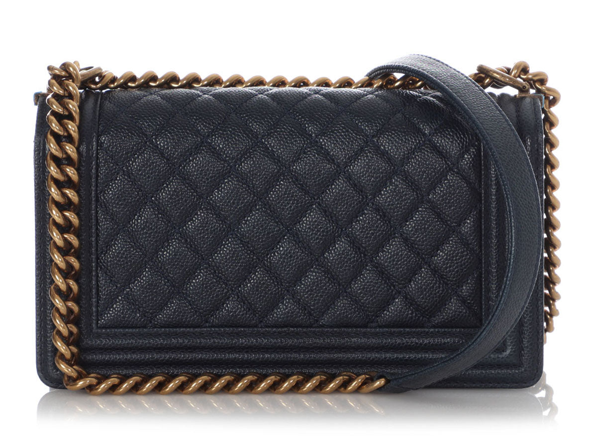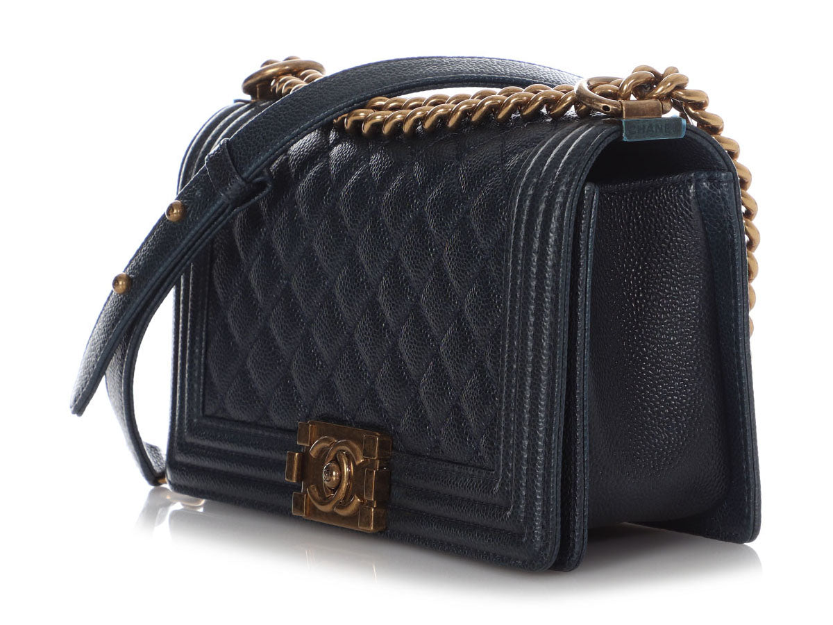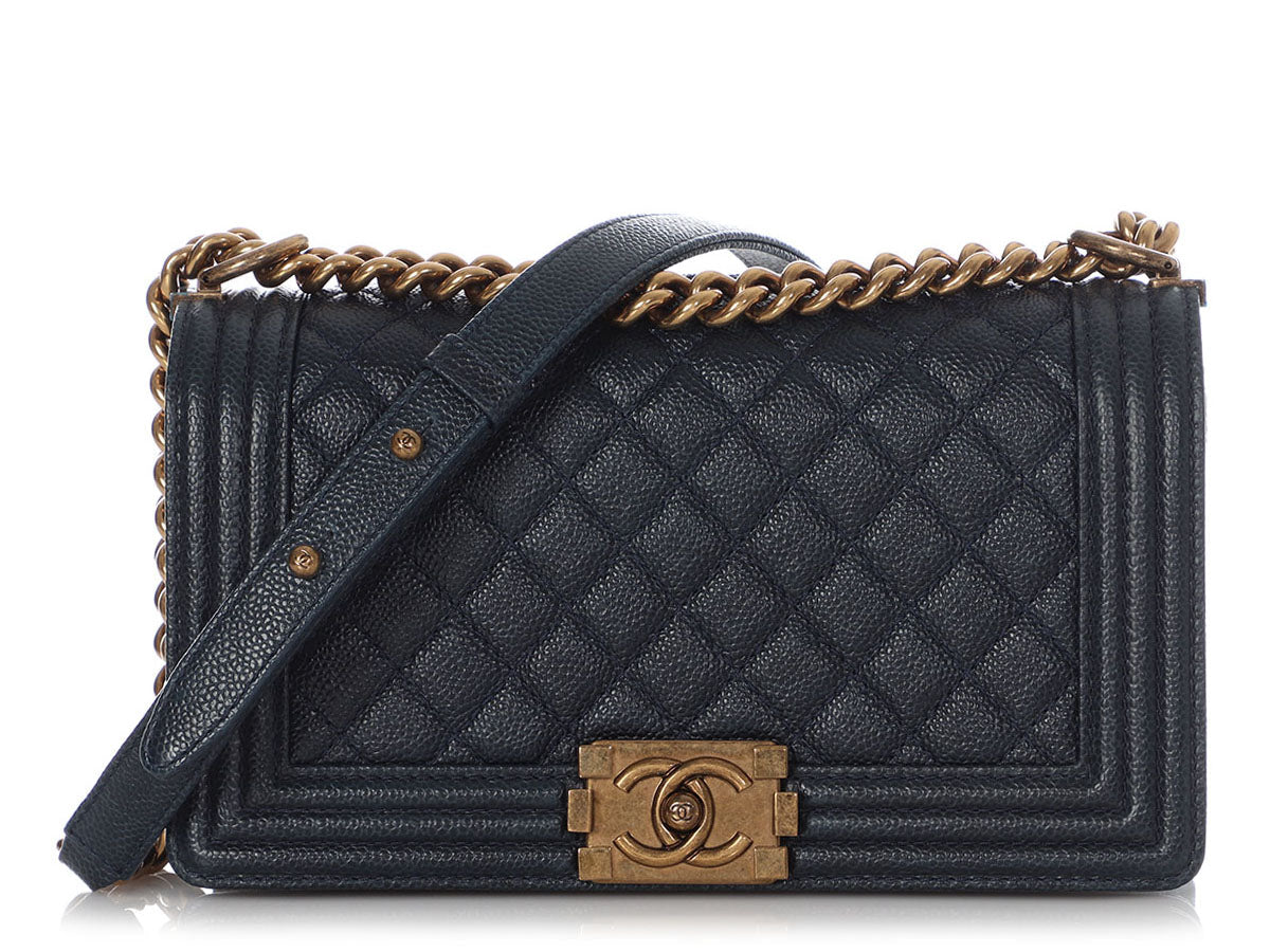 Chanel Old Medium Dark Navy Quilted Caviar Boy