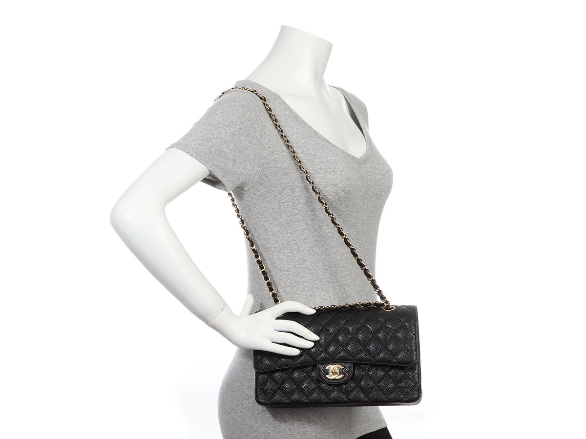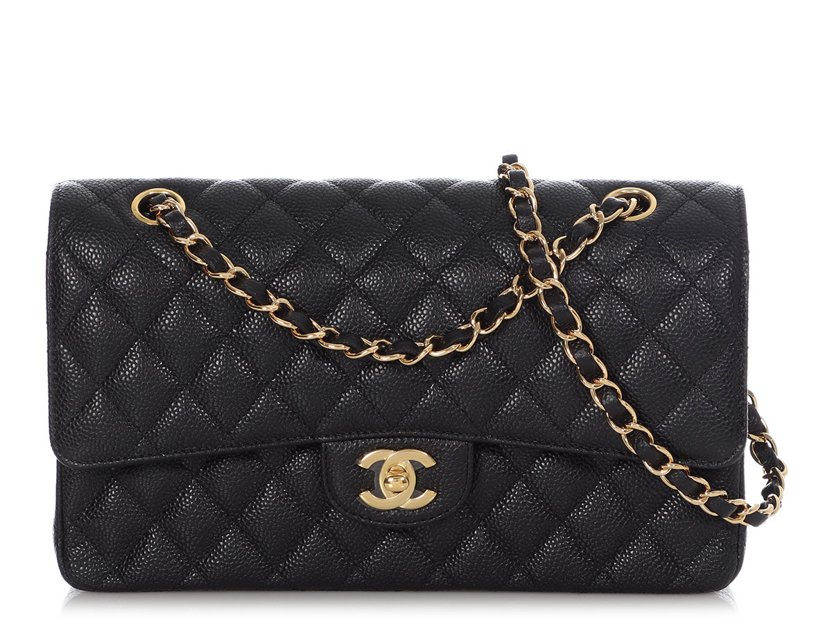 Chanel Medium/Large Black Quilted Caviar Classic Double Flap