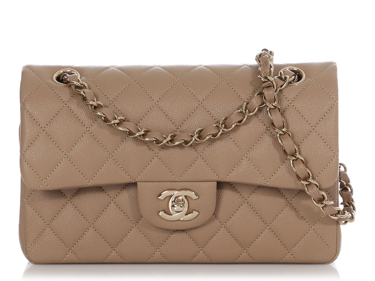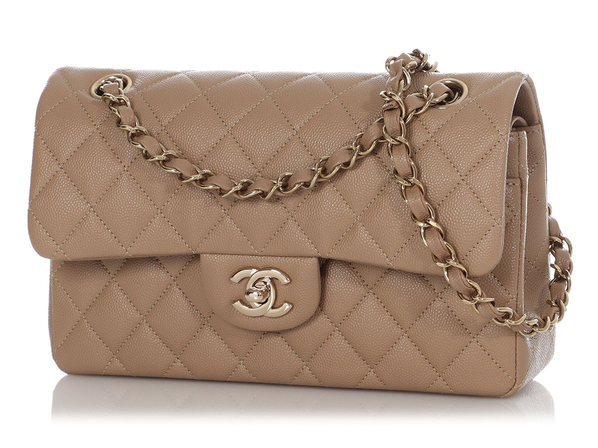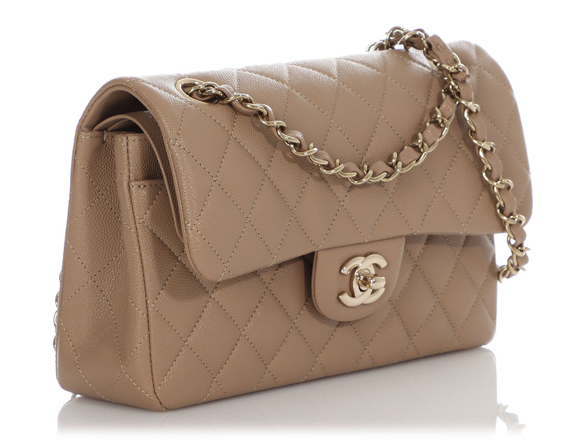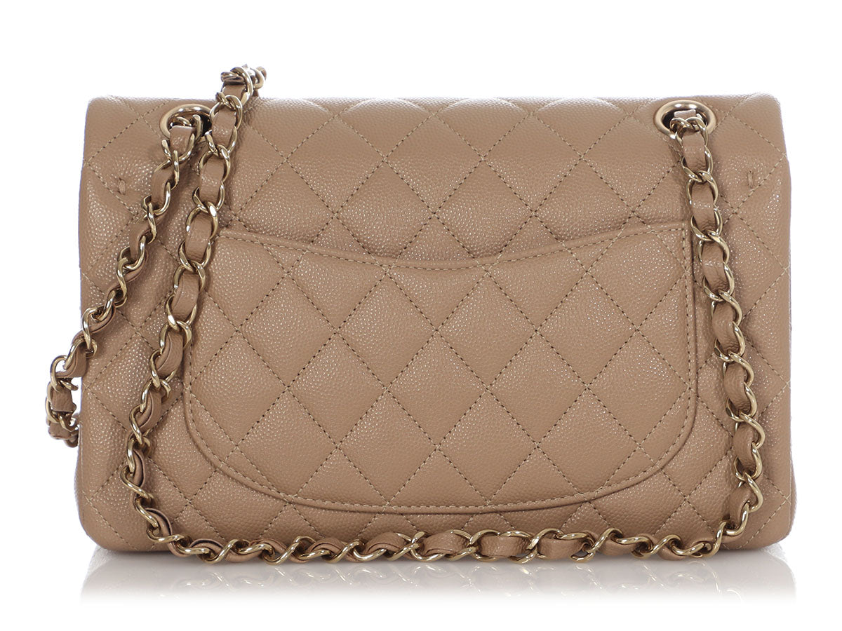 Chanel Small Dark Beige Quilted Caviar Classic Double Flap