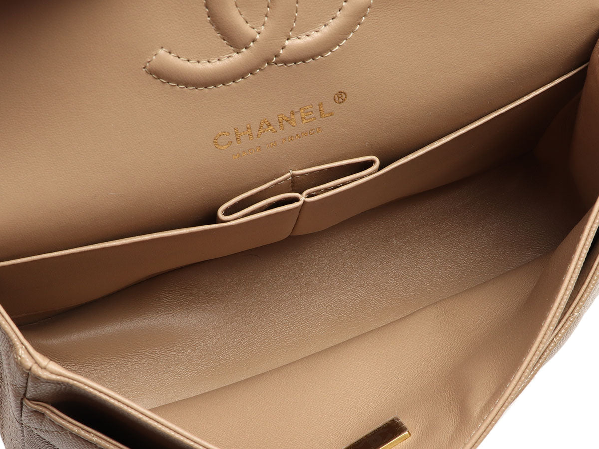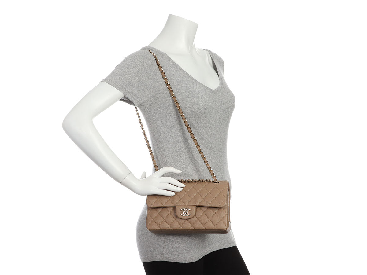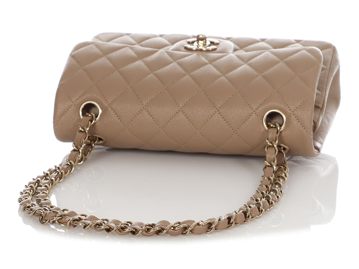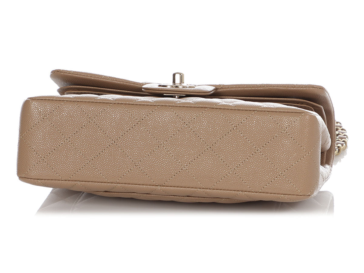 Chanel Small Dark Beige Quilted Caviar Classic Double Flap