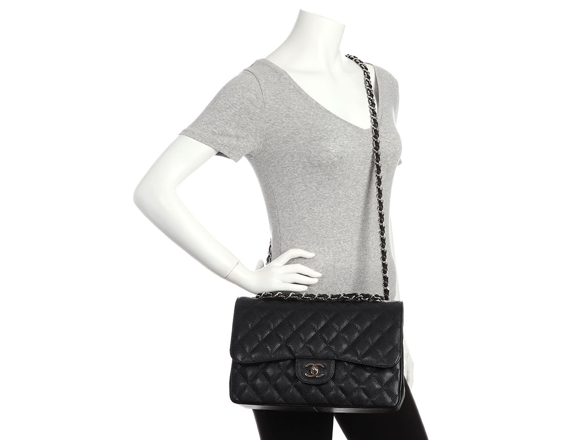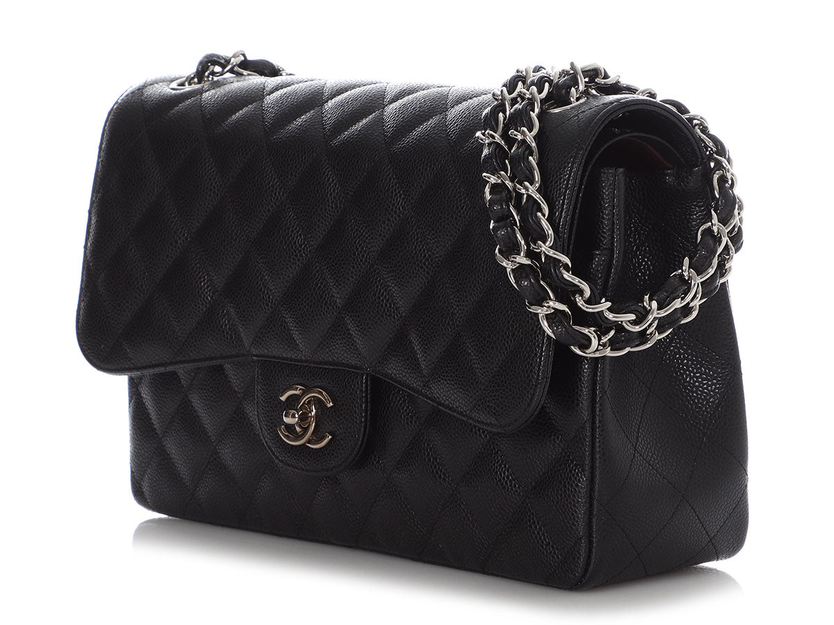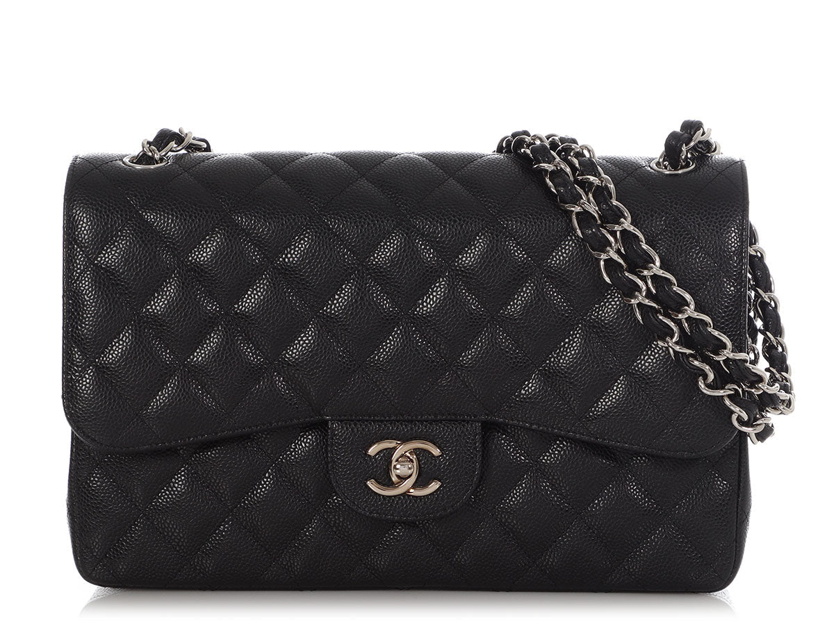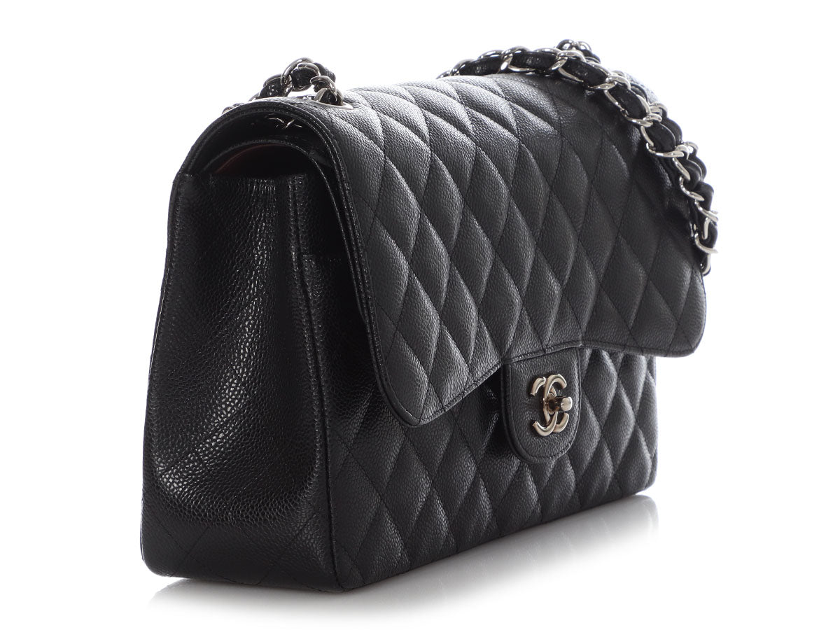Chanel Jumbo Black Quilted Caviar Classic Double Flap