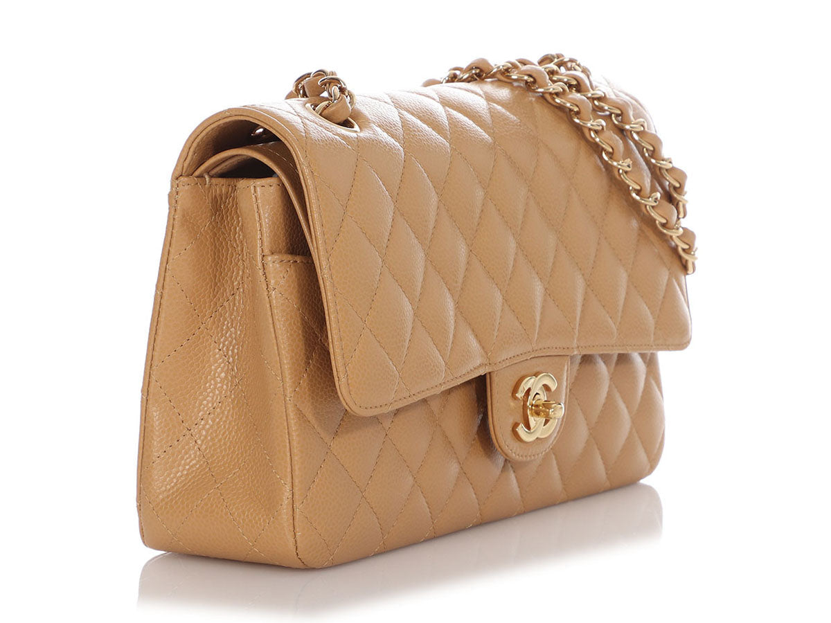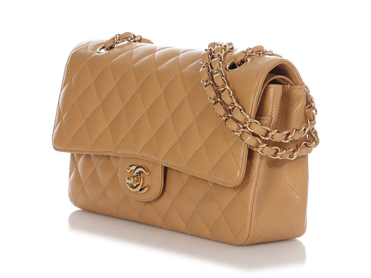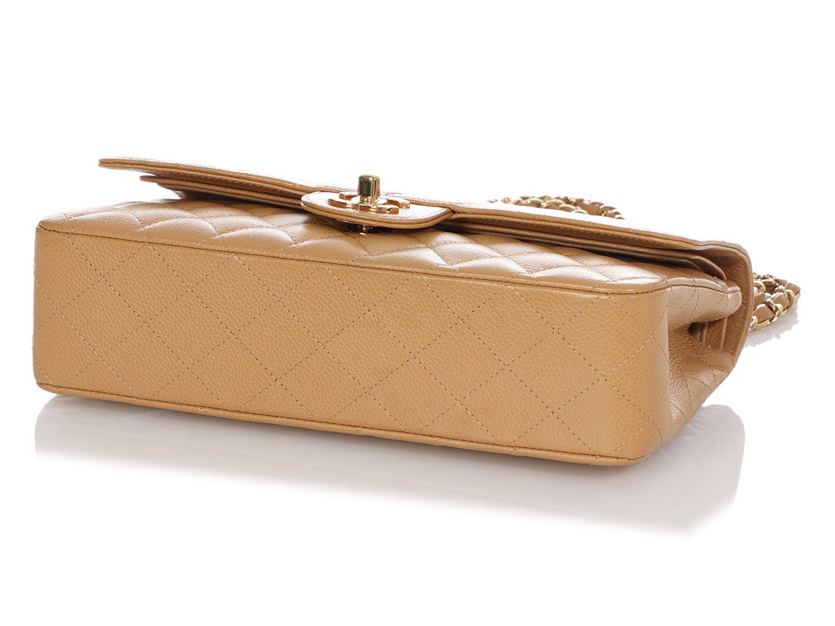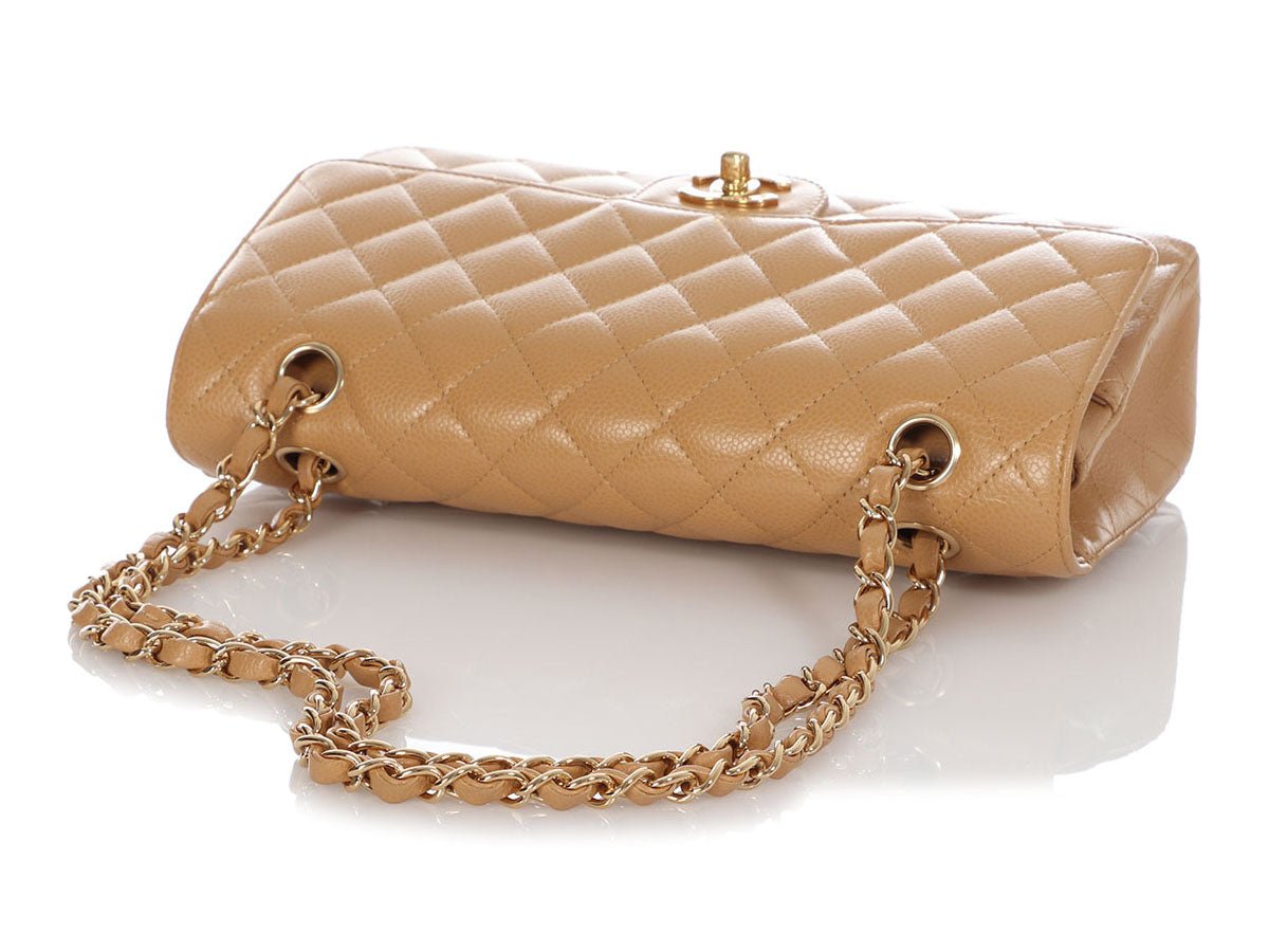 Chanel Medium/Large Beige Quilted Caviar Classic Double Flap