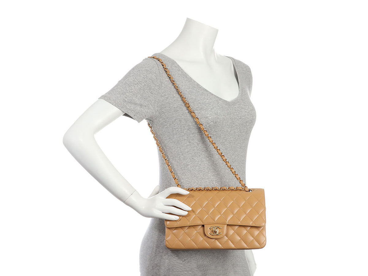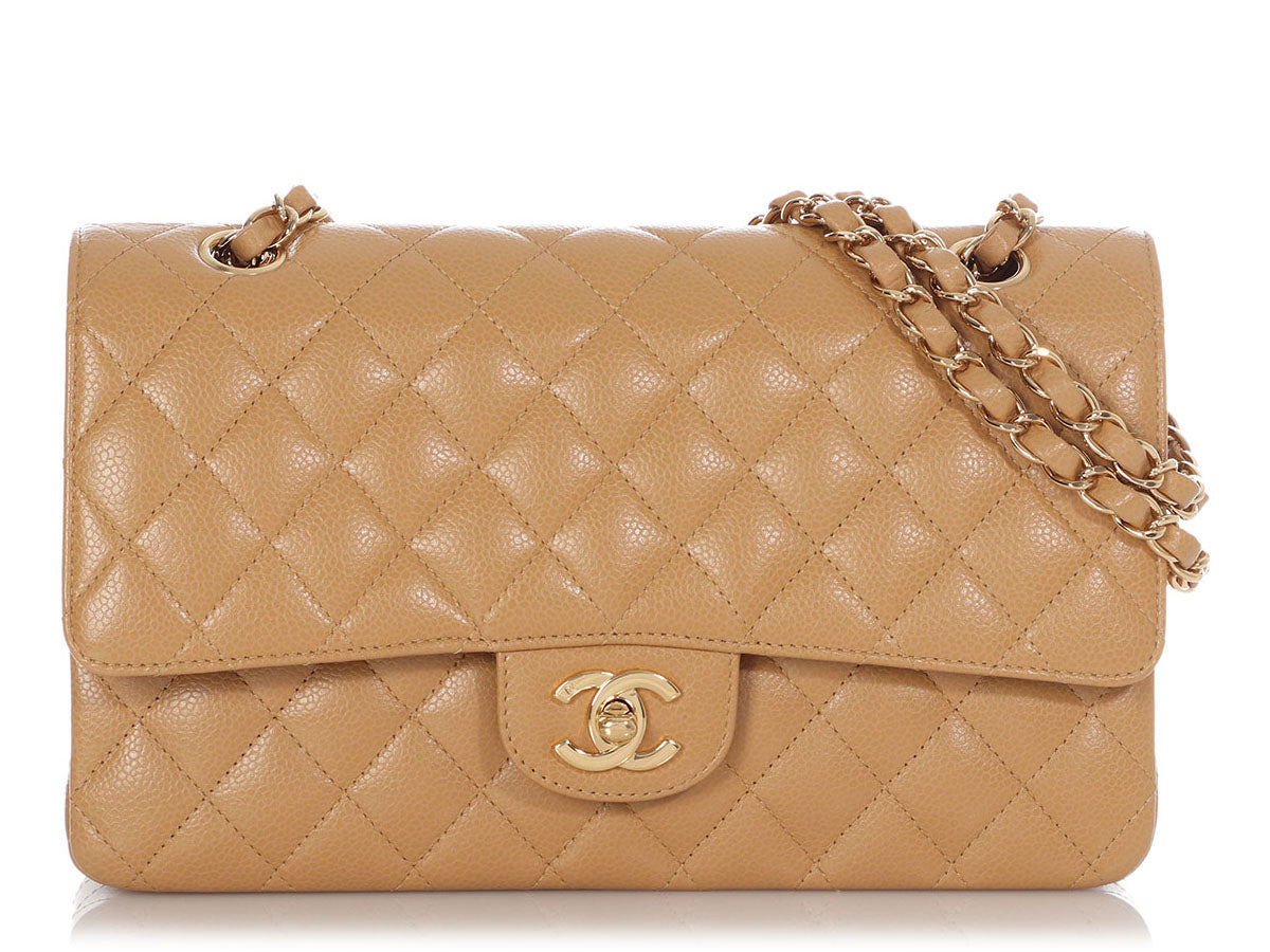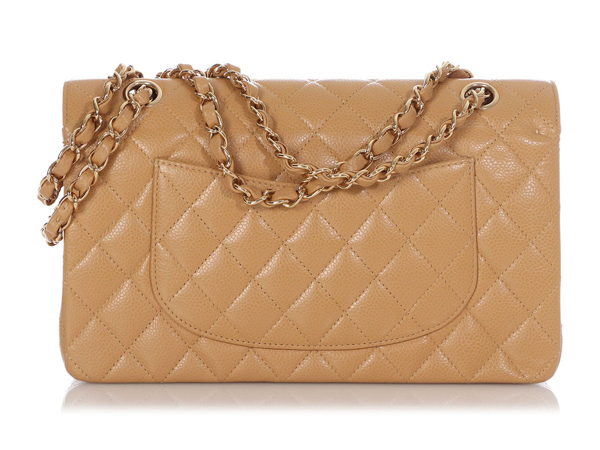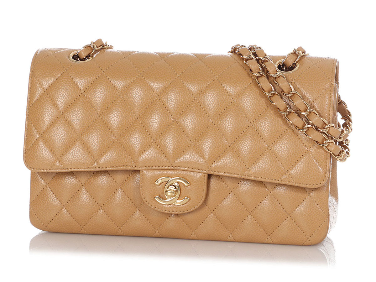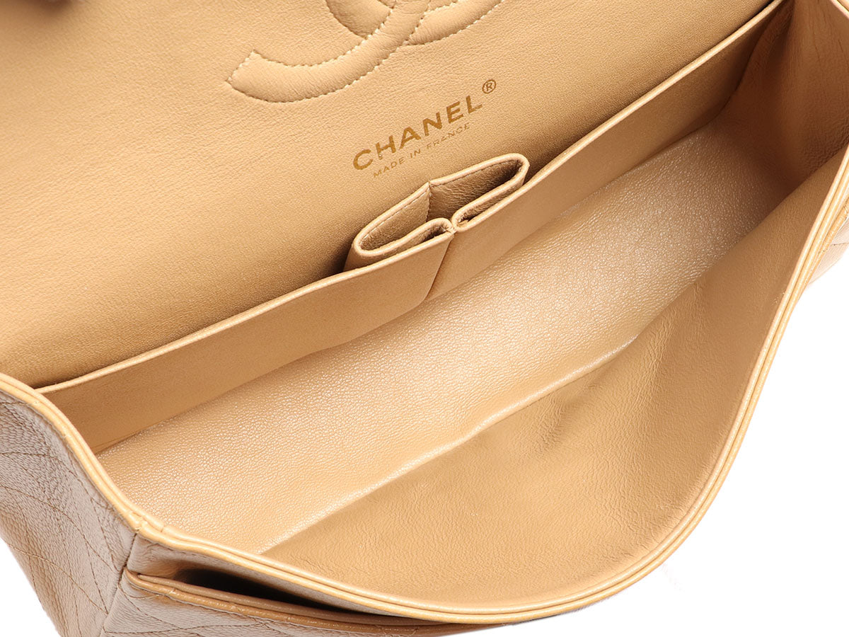 Chanel Medium/Large Beige Quilted Caviar Classic Double Flap