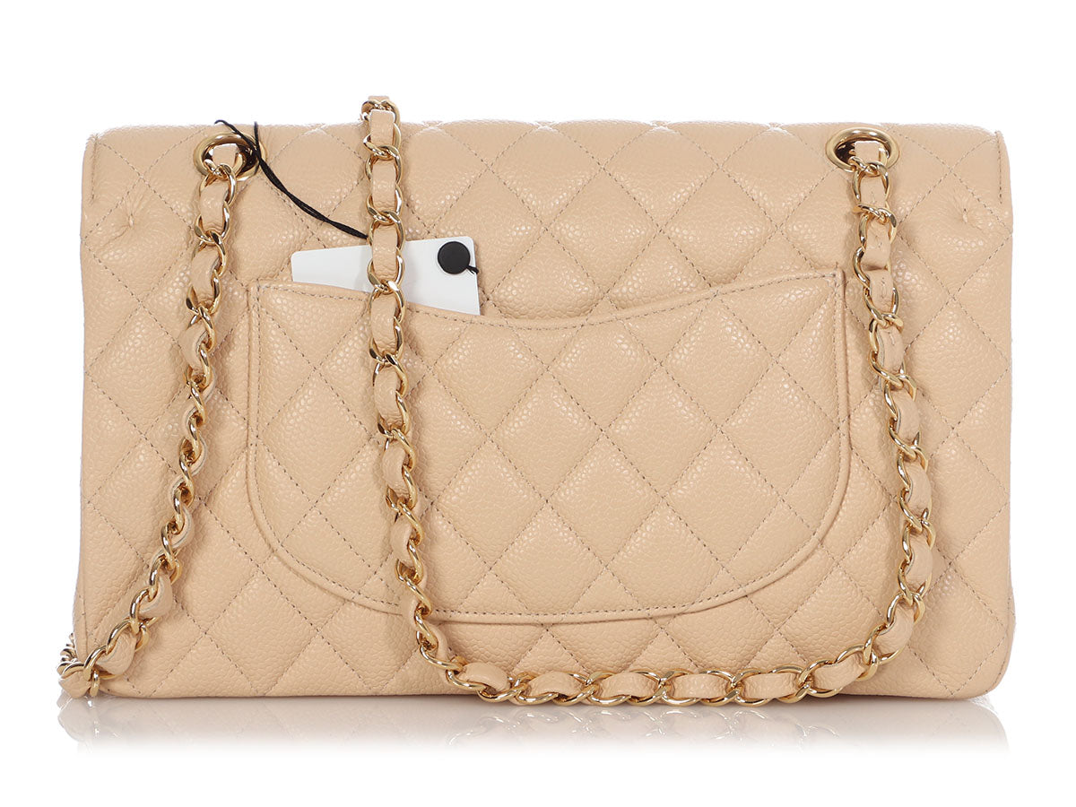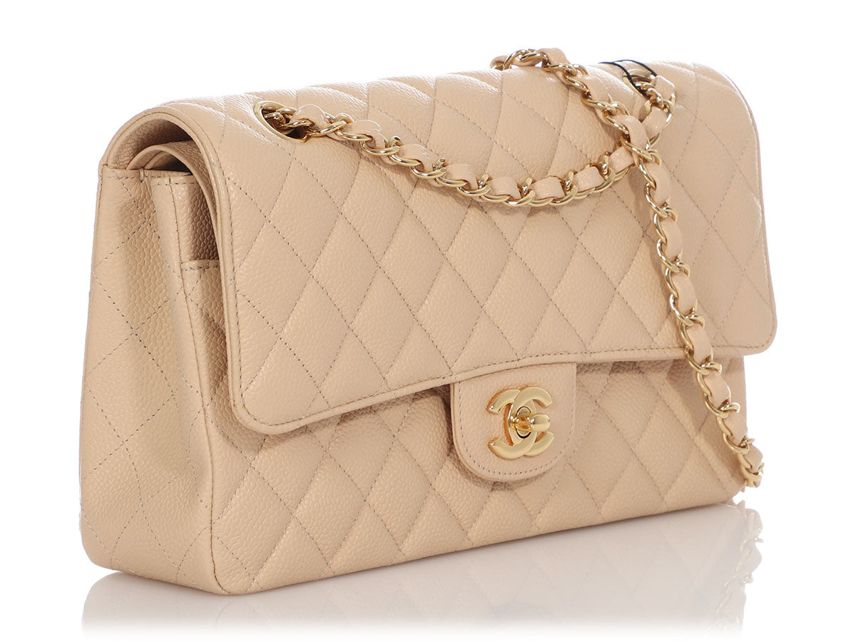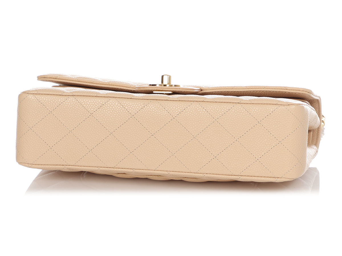 Chanel Medium/Large Beige Quilted Caviar Classic Double Flap