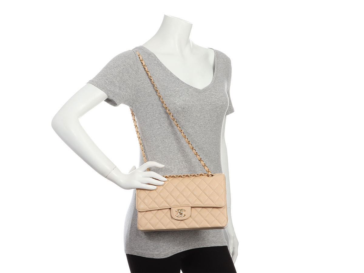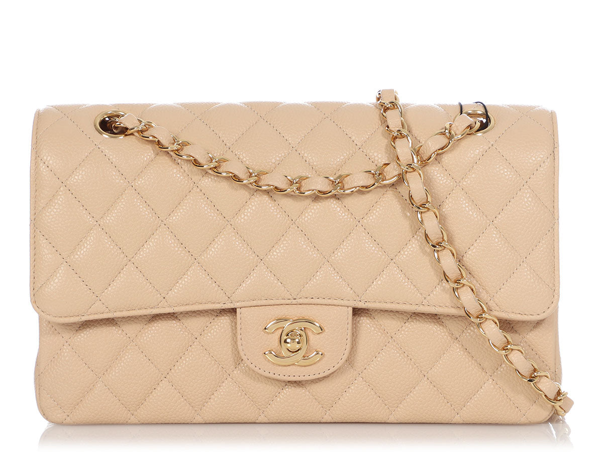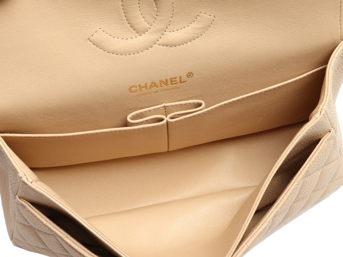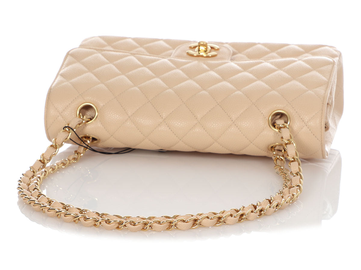 Chanel Medium/Large Beige Quilted Caviar Classic Double Flap