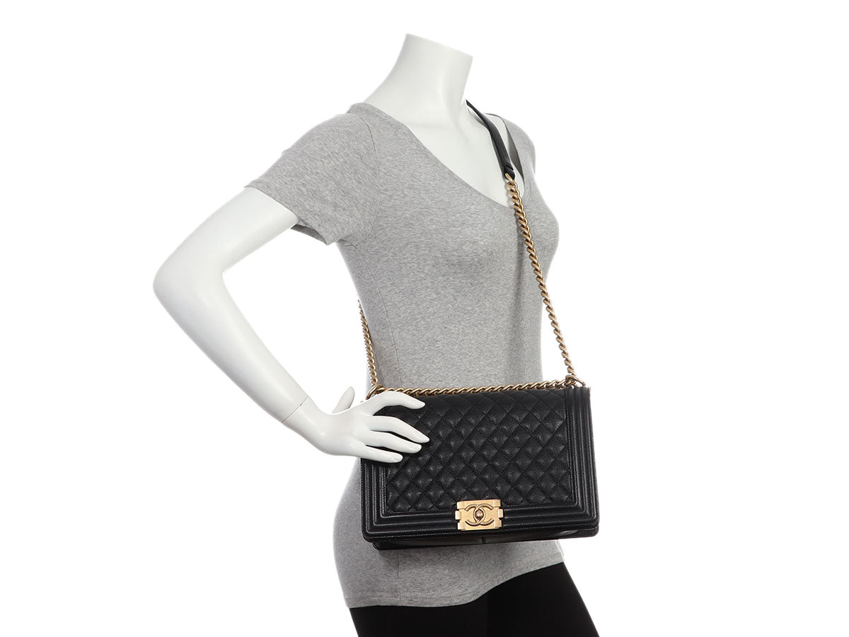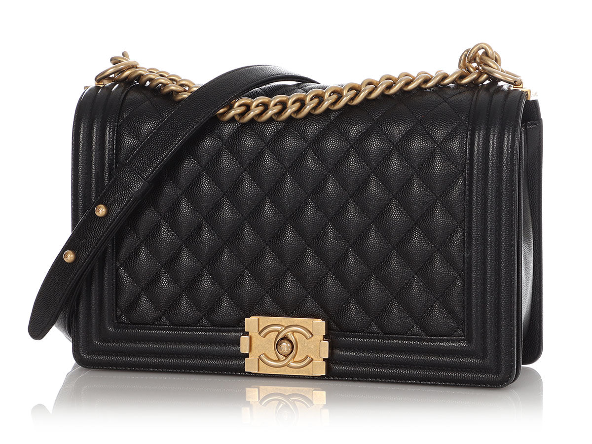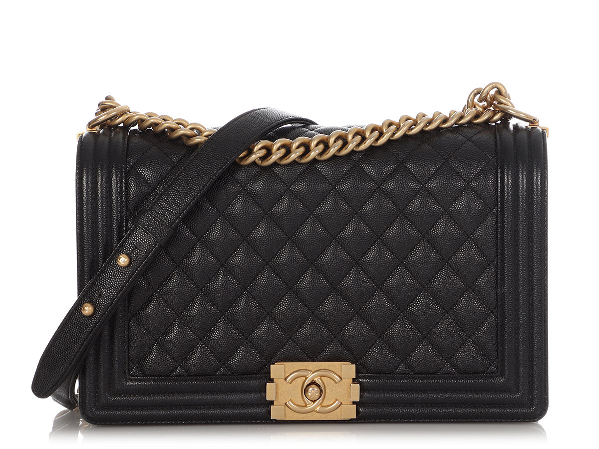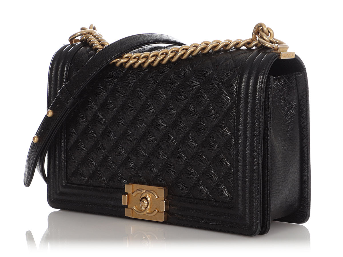 Chanel New Medium Black Quilted Caviar Boy Bag