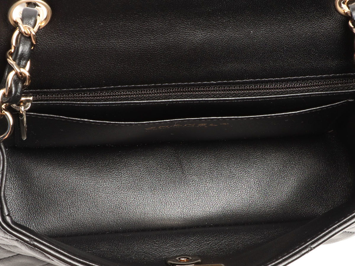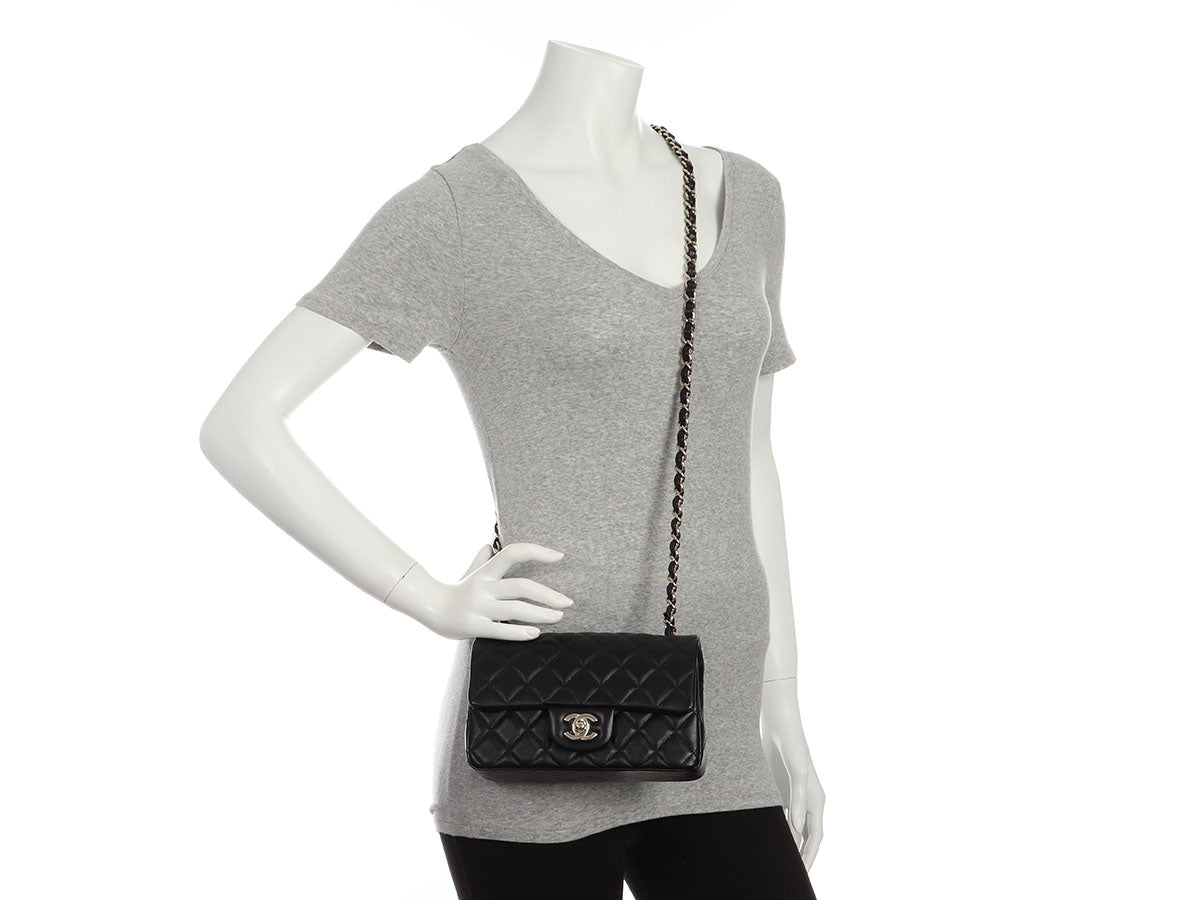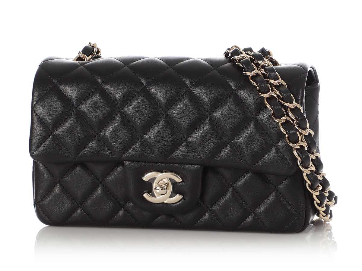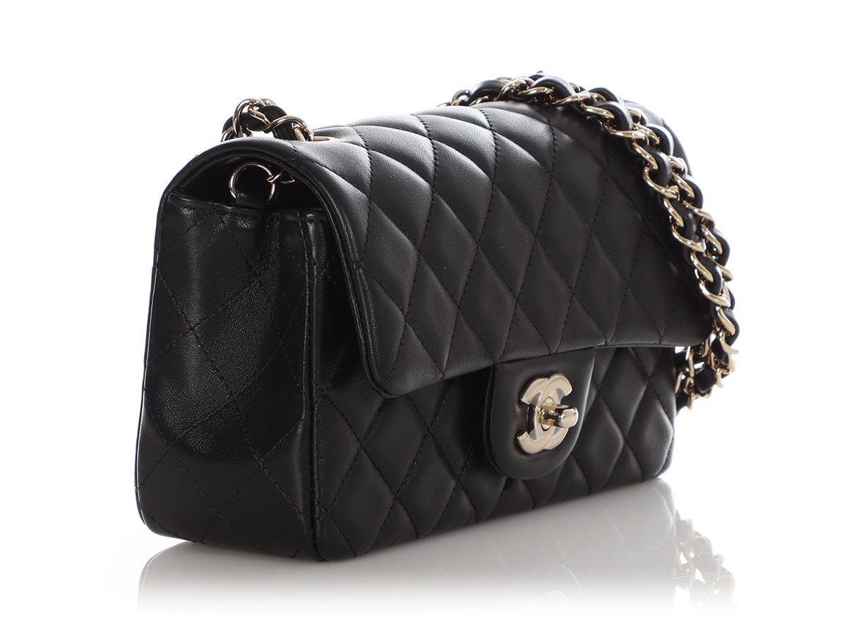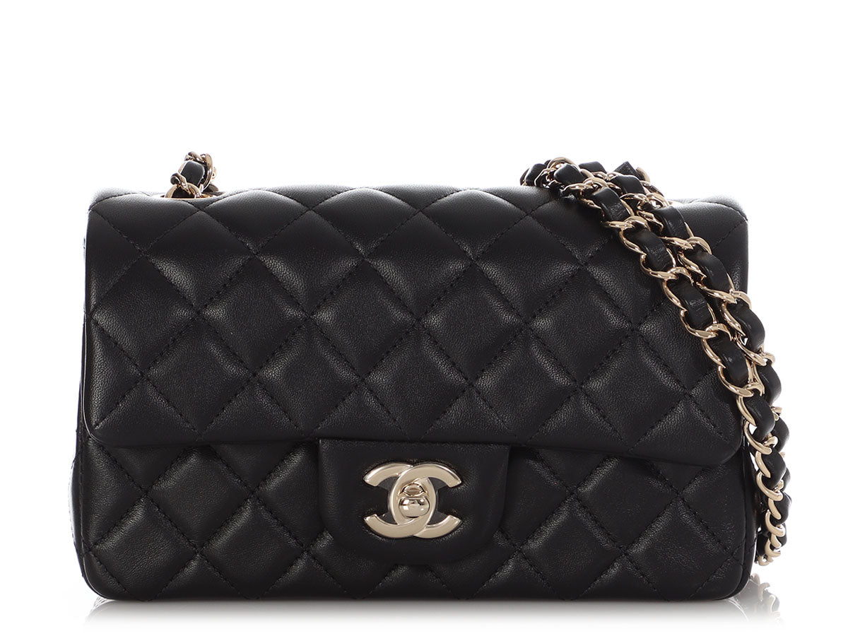 This timeless, classique Chanel is brought to you as a Mini in Black Quilted Lambskin! It has light-gold hardware in the logo turnlock that opens to black-leather lining with one zipped and one slide pocket inside. The leather-and-chain strap has a generous 21.5-inch crossbody drop. New and never worn from 2022, it comes with a dustbag and box and hs a Mona Lisa slide pocket on the back face for incidentals!