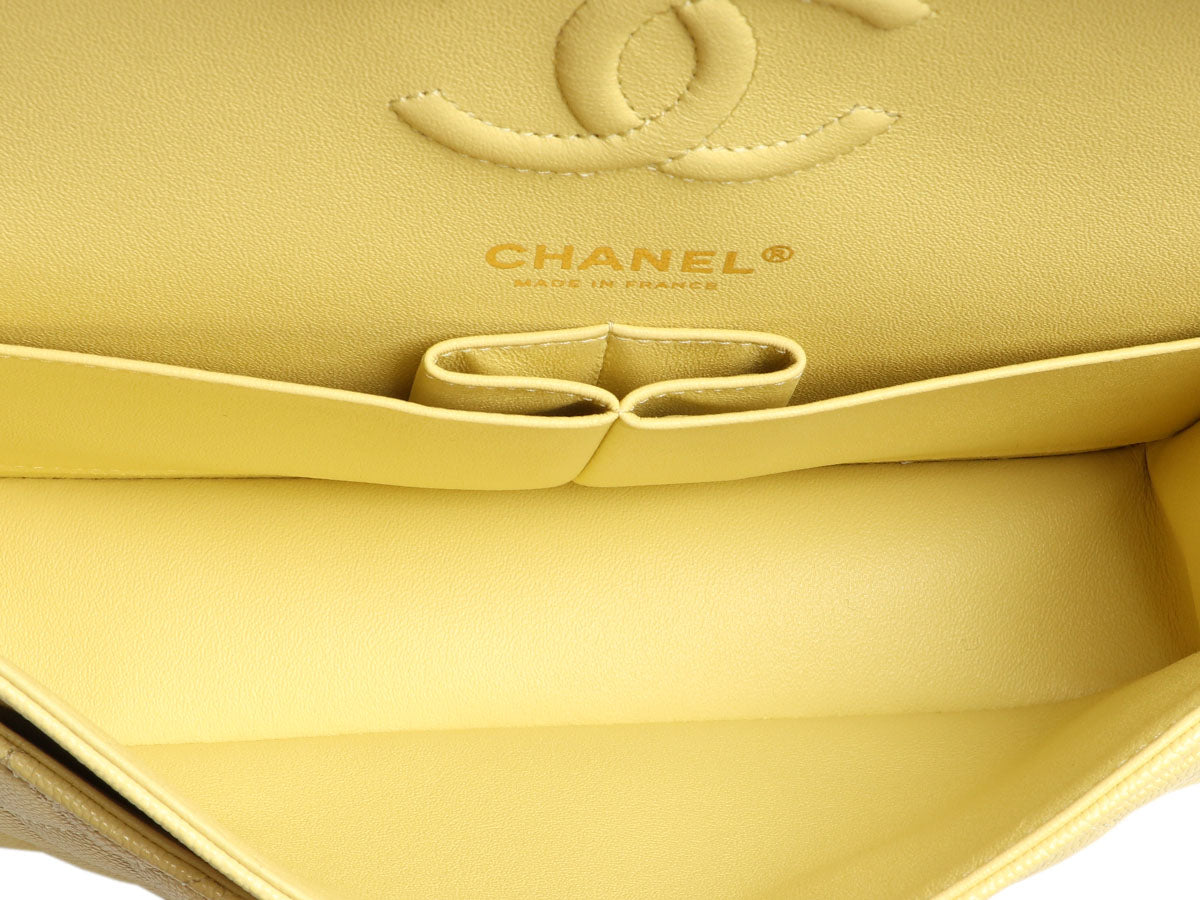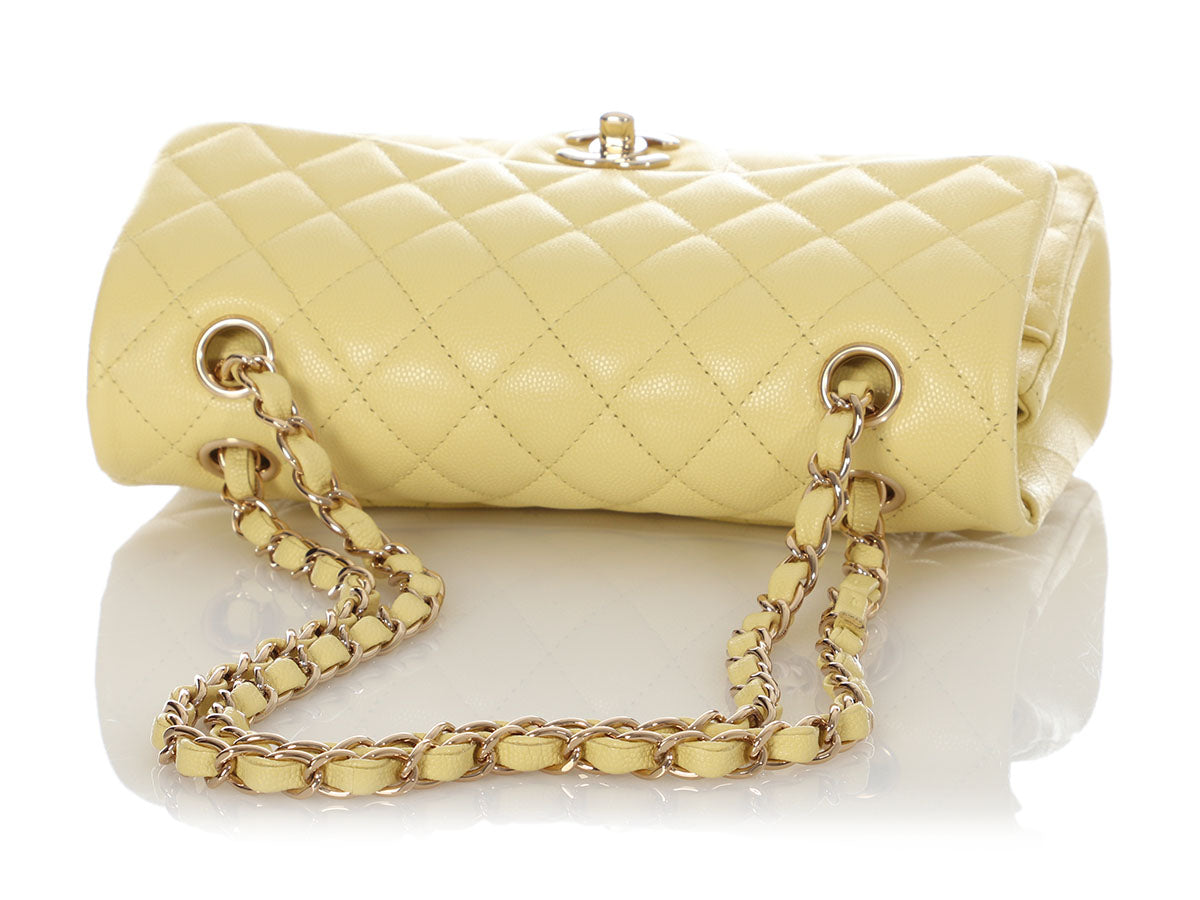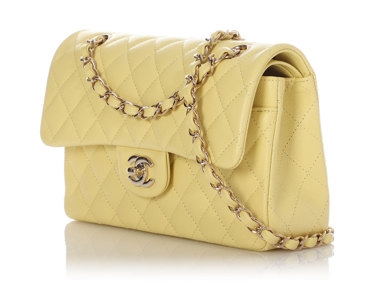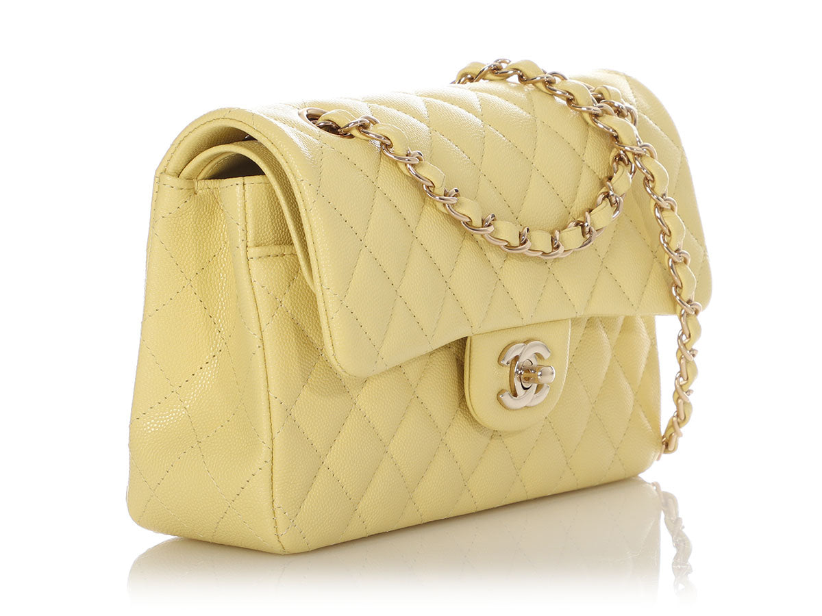 Chanel Small Light Yellow Quilted Caviar Classic Double Flap