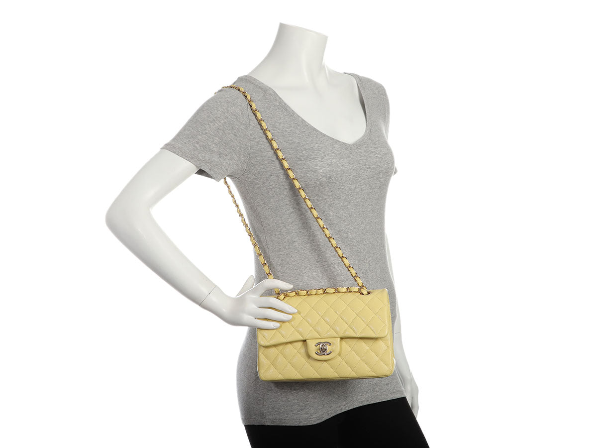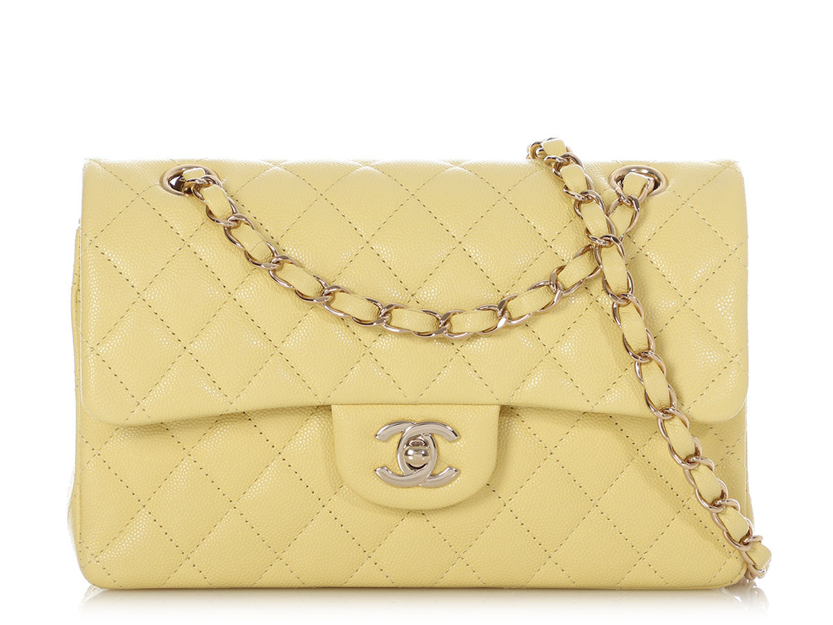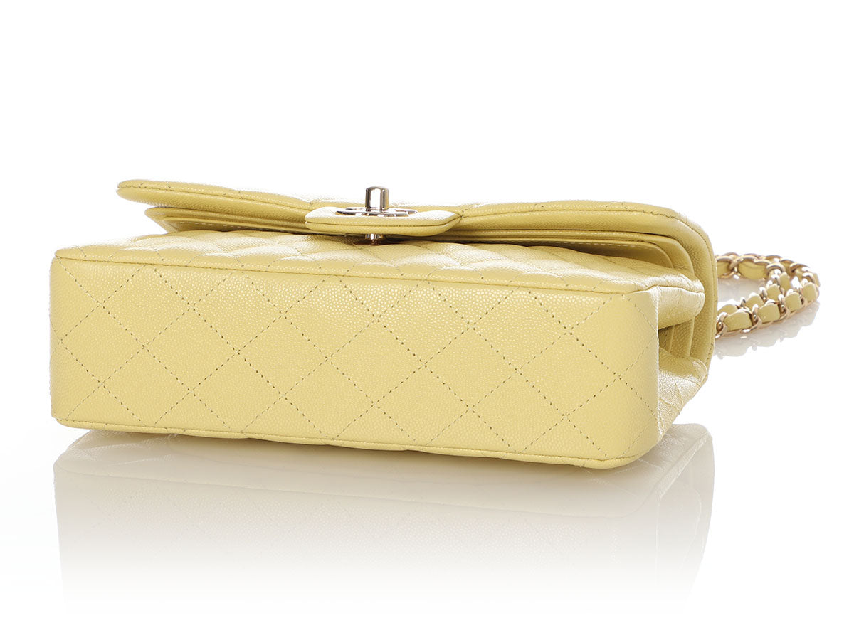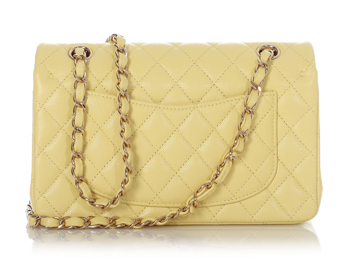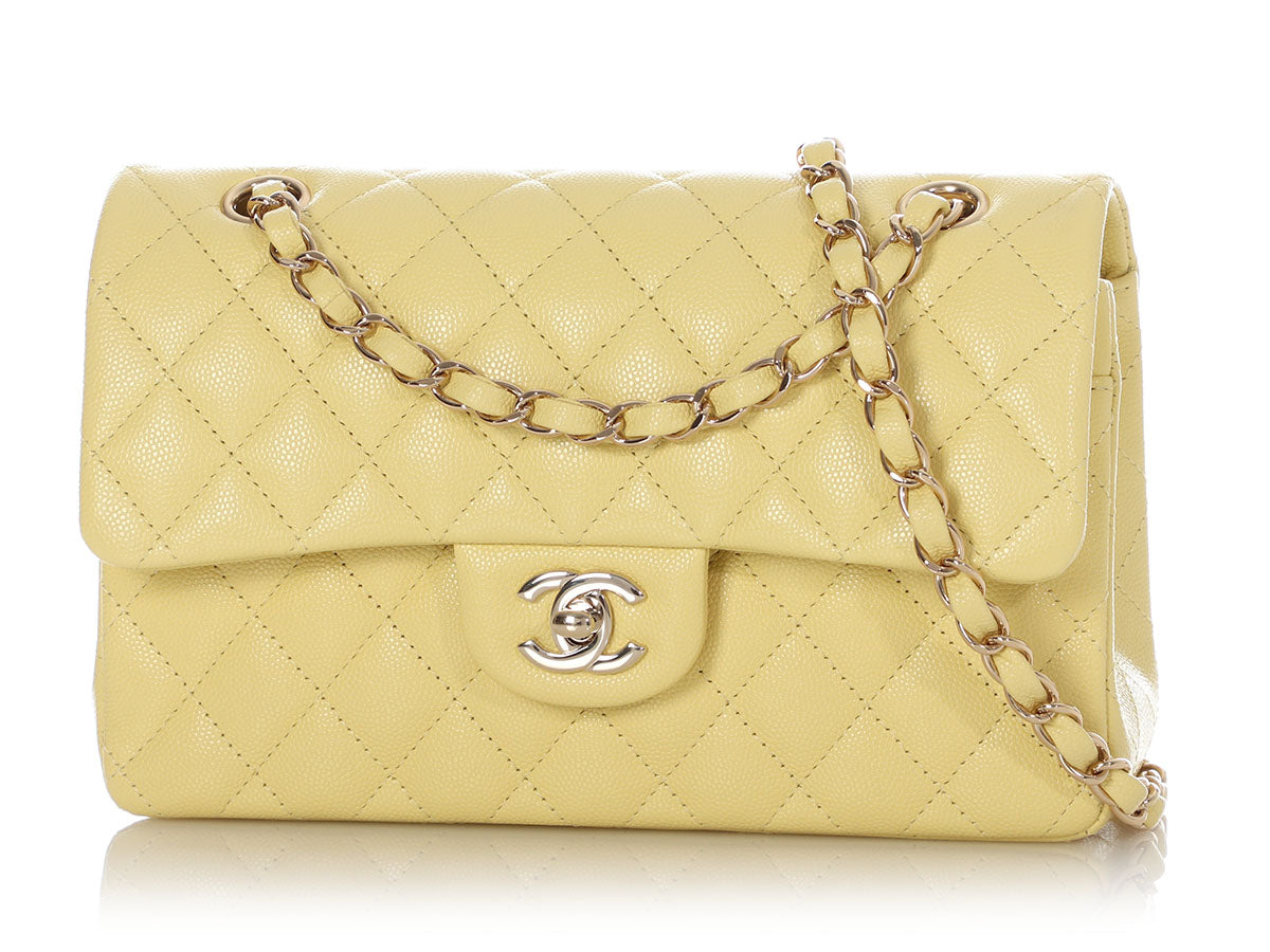 Chanel Small Light Yellow Quilted Caviar Classic Double Flap