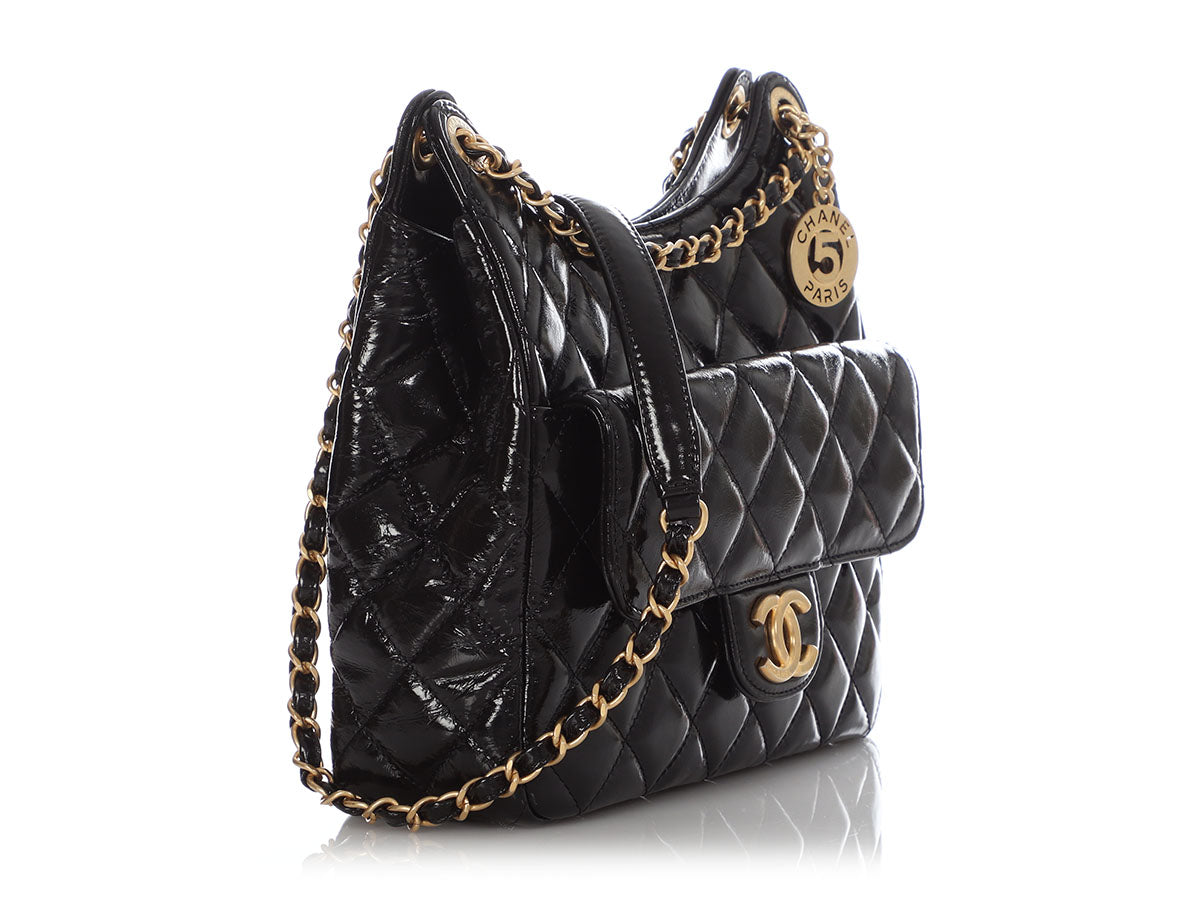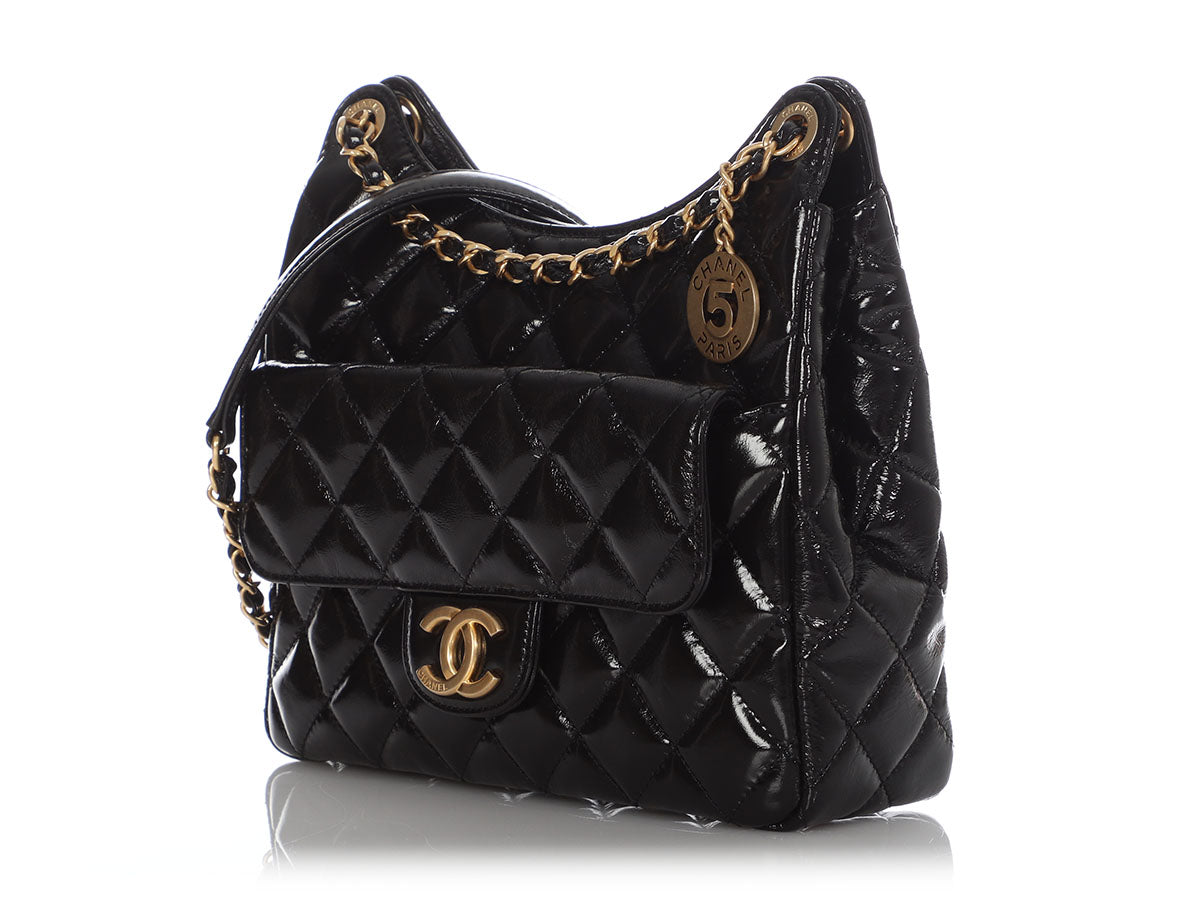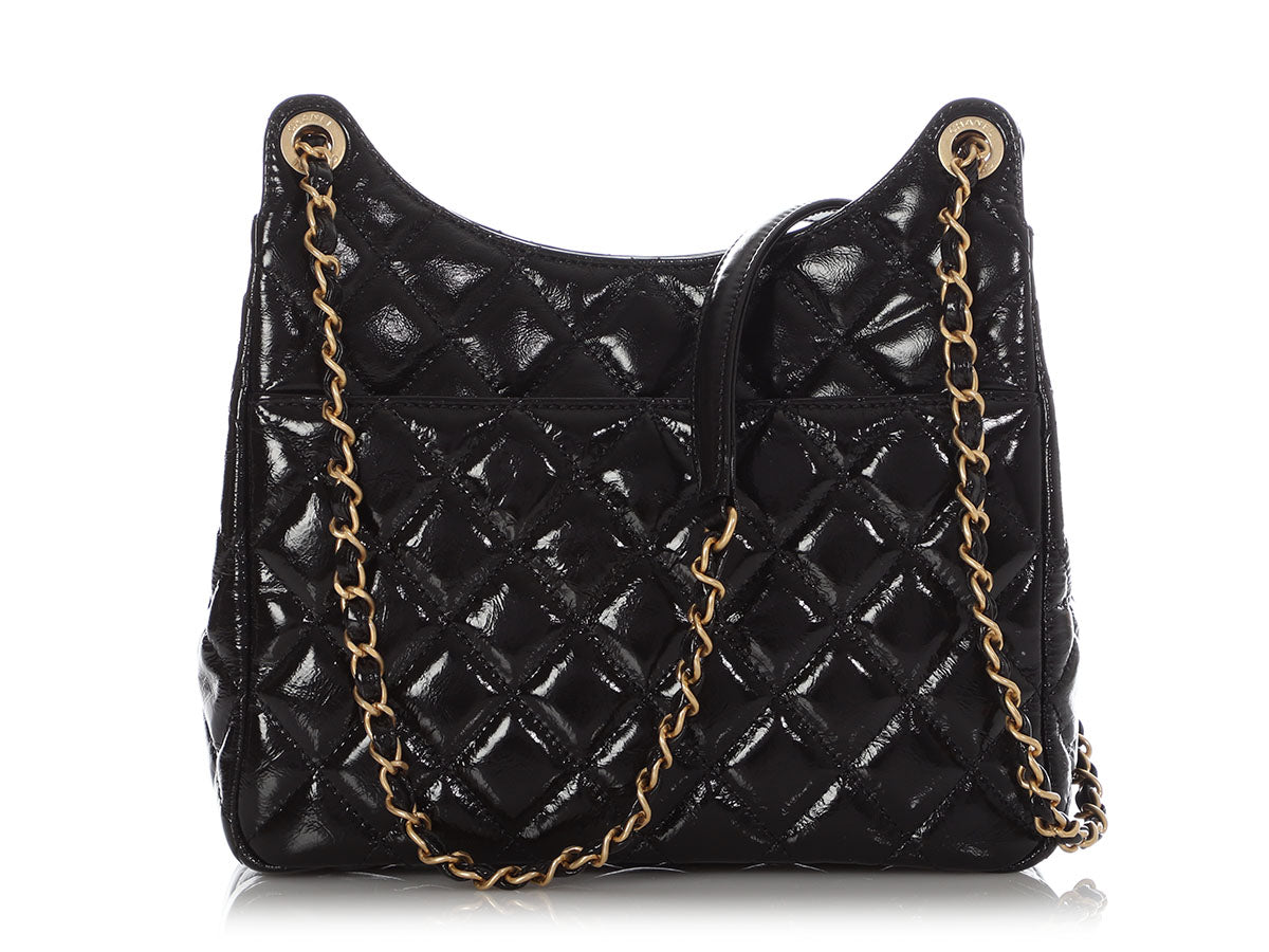 Chanel Black Soft Patent Wavy Hobo