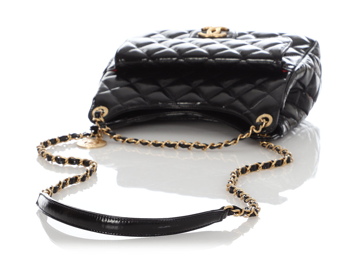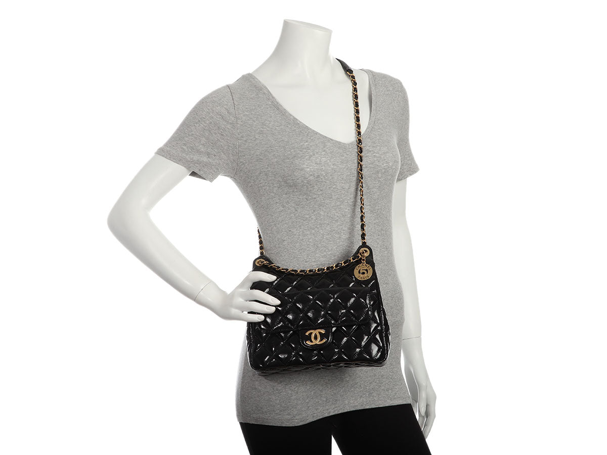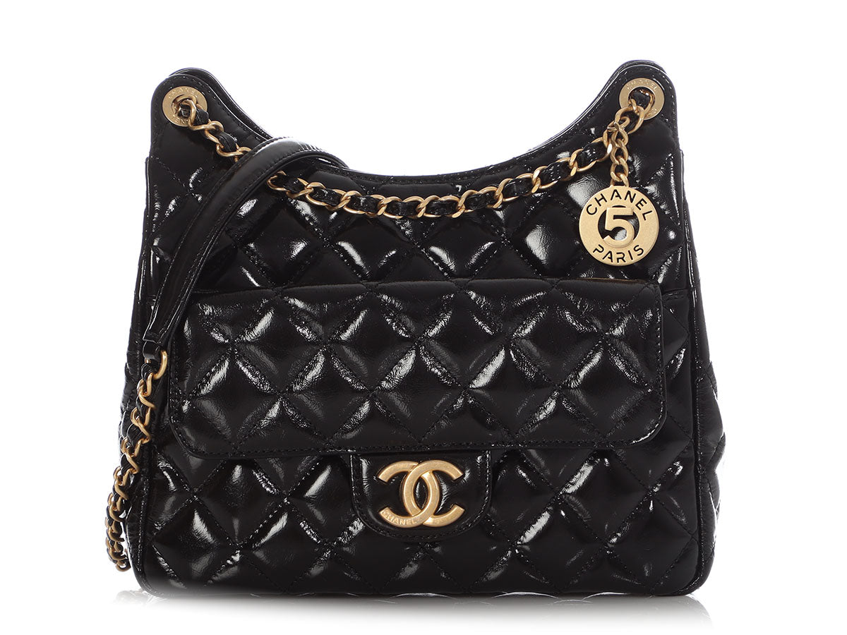 Chanel Black Soft Patent Wavy Hobo