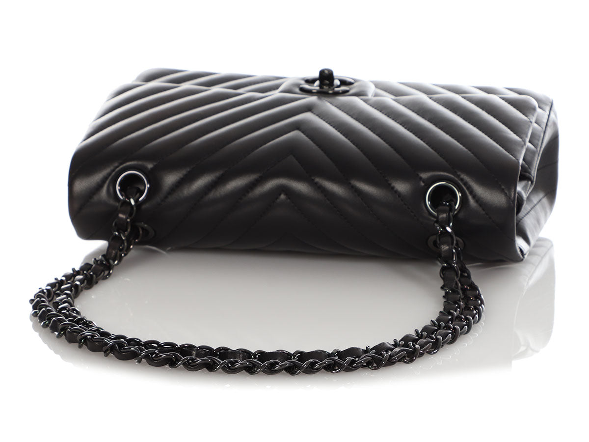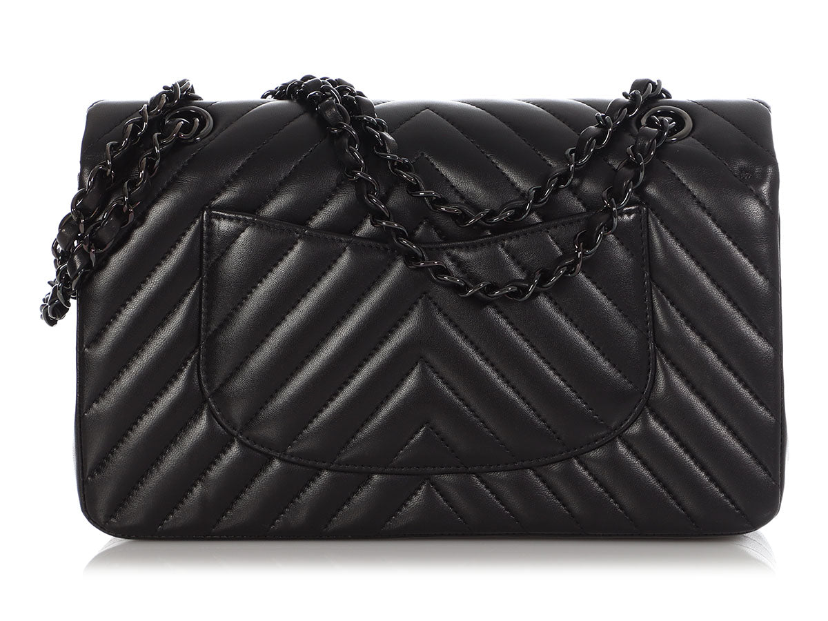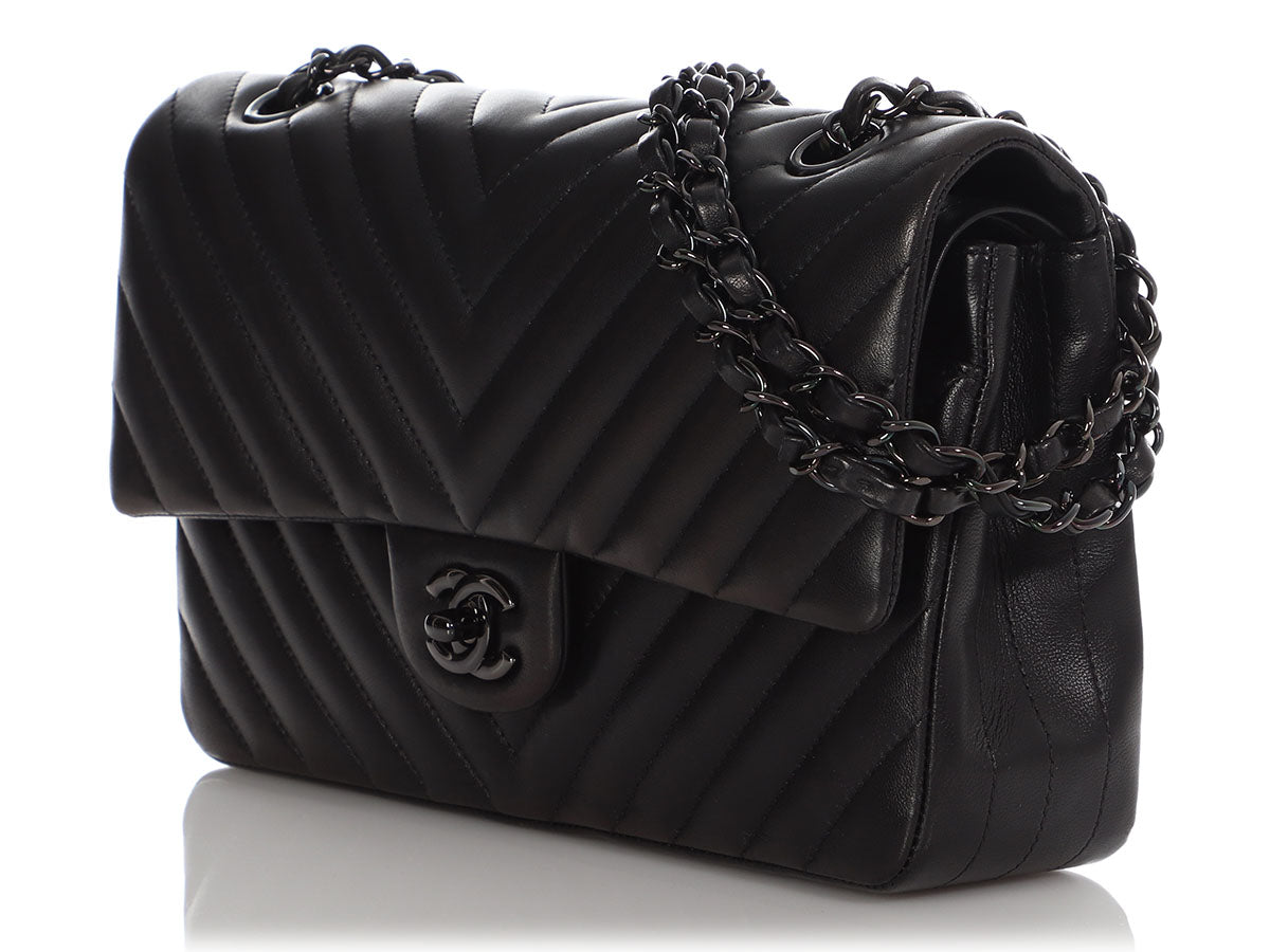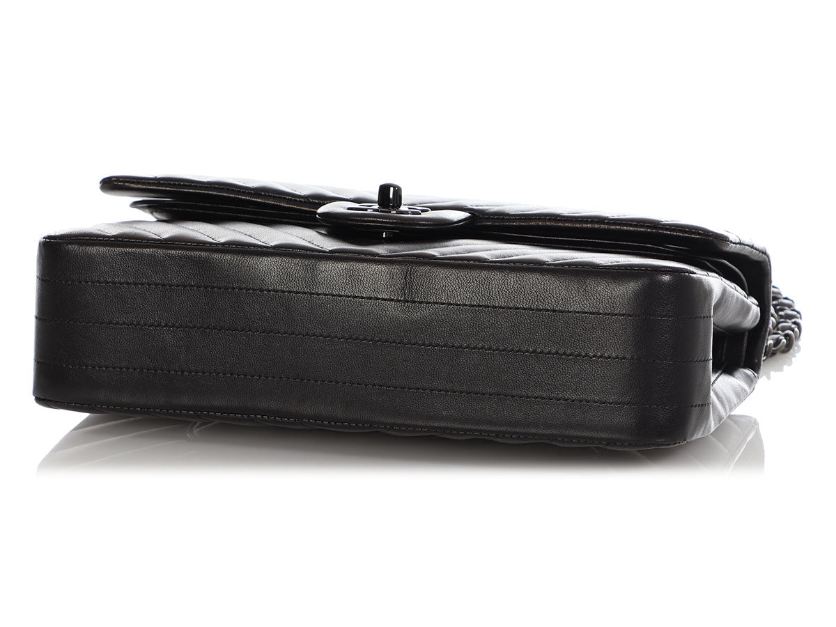 Chanel Medium/Large So Black Chevron-Quilted Lambskin Classic Double Flap