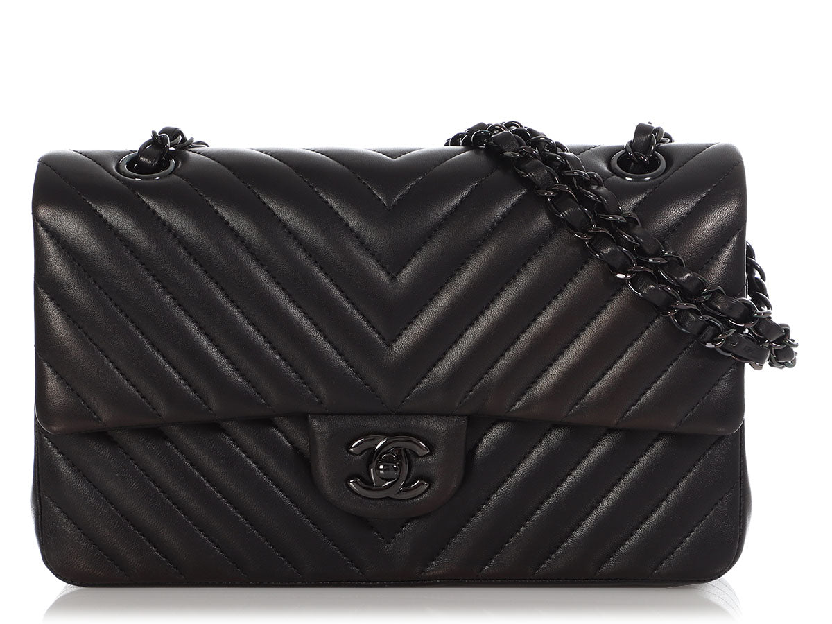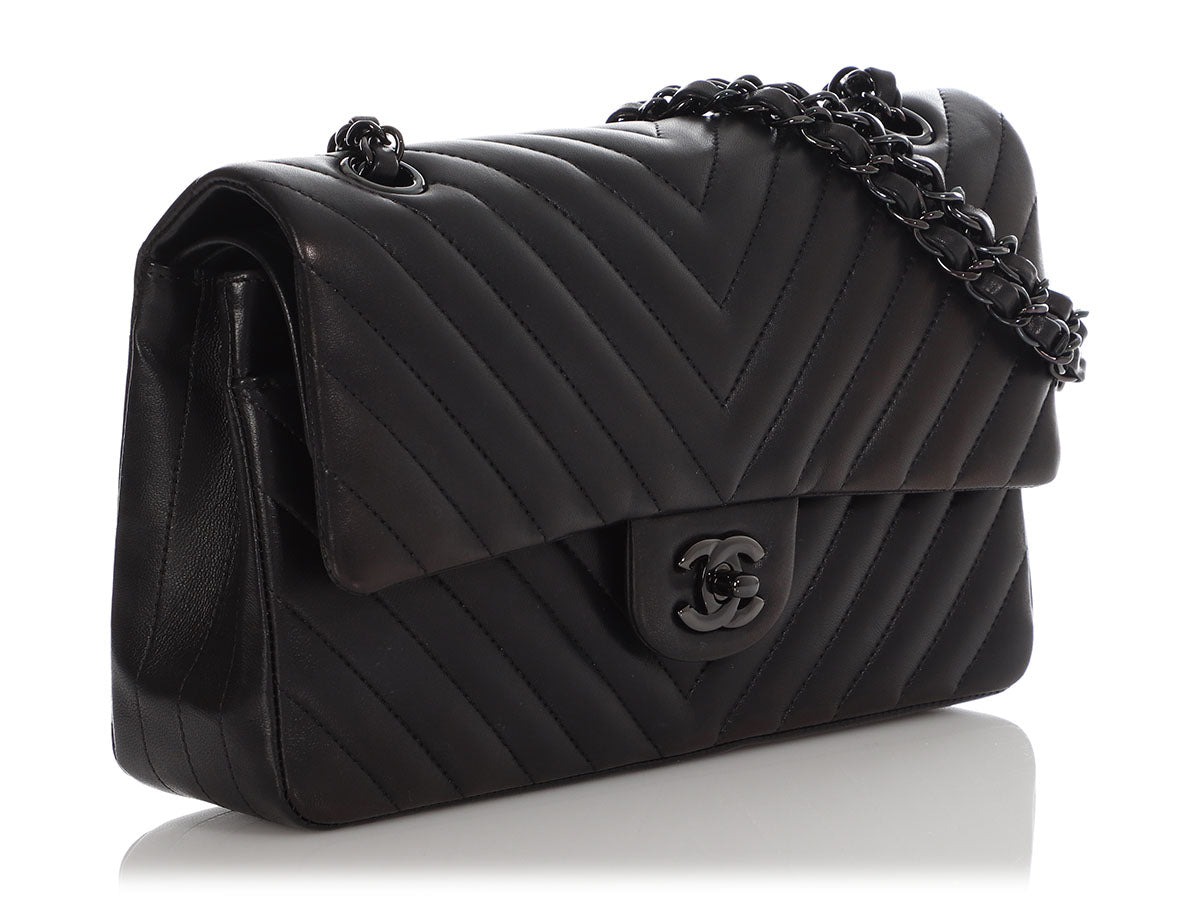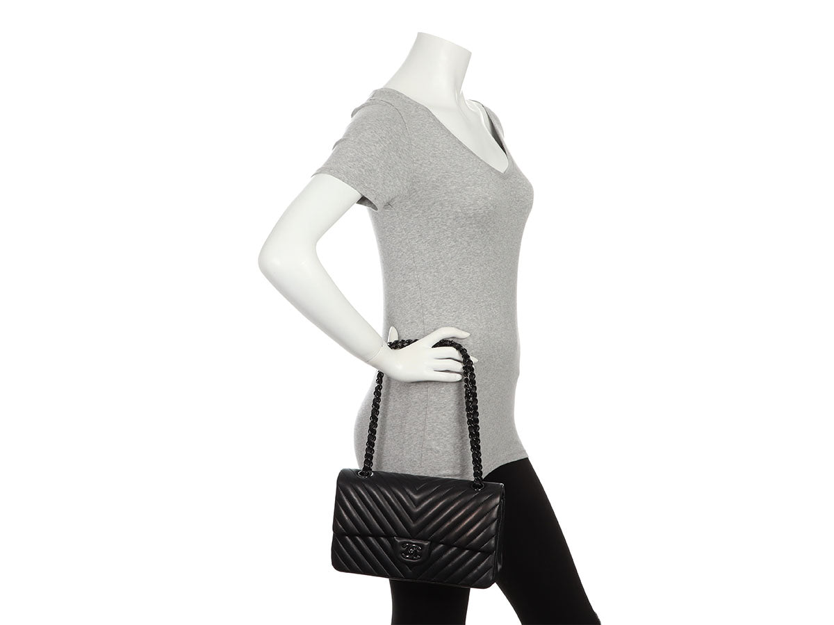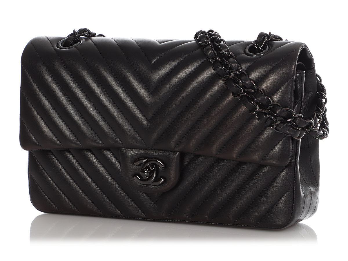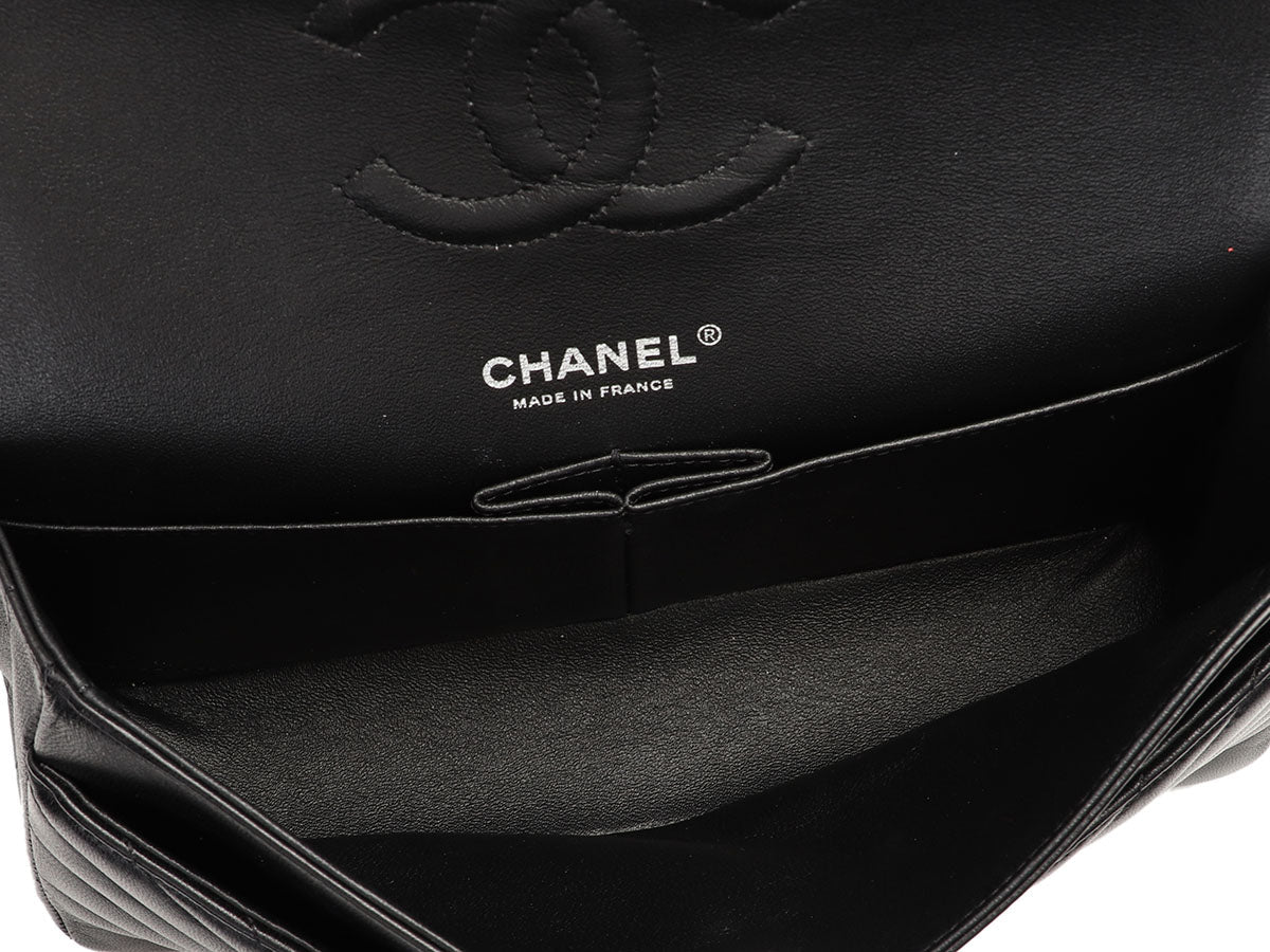 Chanel Medium/Large So Black Chevron-Quilted Lambskin Classic Double Flap