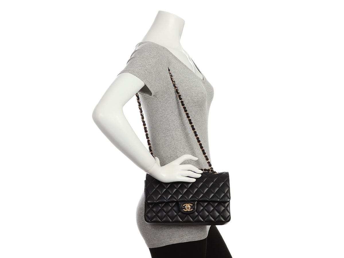 Chanel Medium/Large Black Quilted Lambskin Classic Double Flap