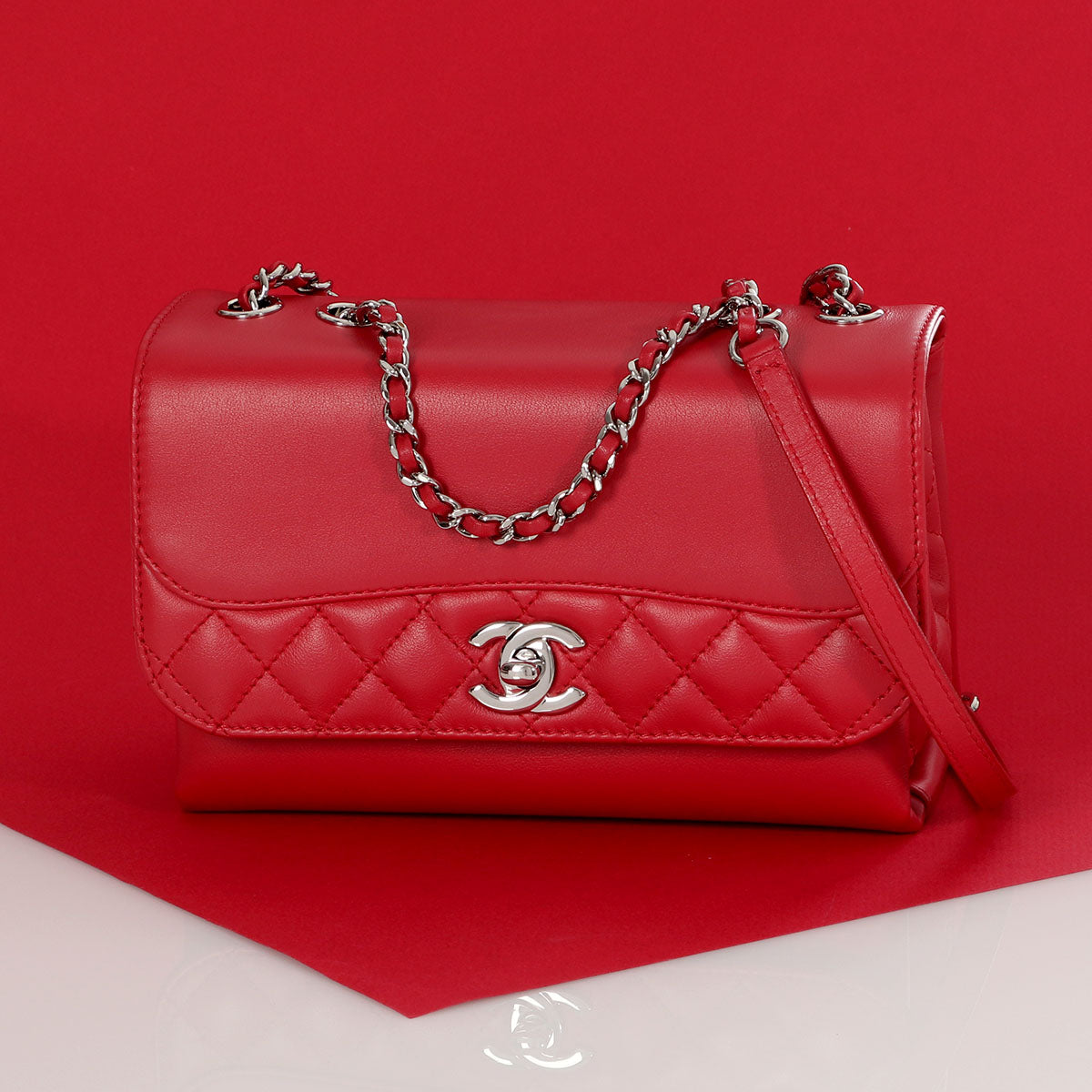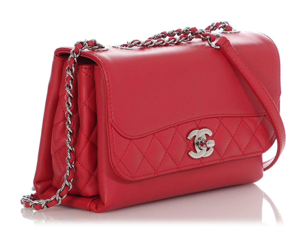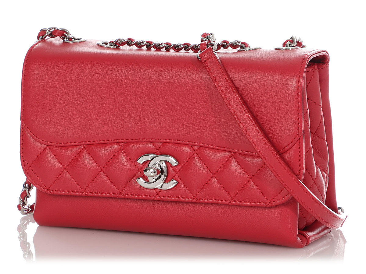 Chanel Red Part-Quilted Calfskin Tramezzo Crossbody