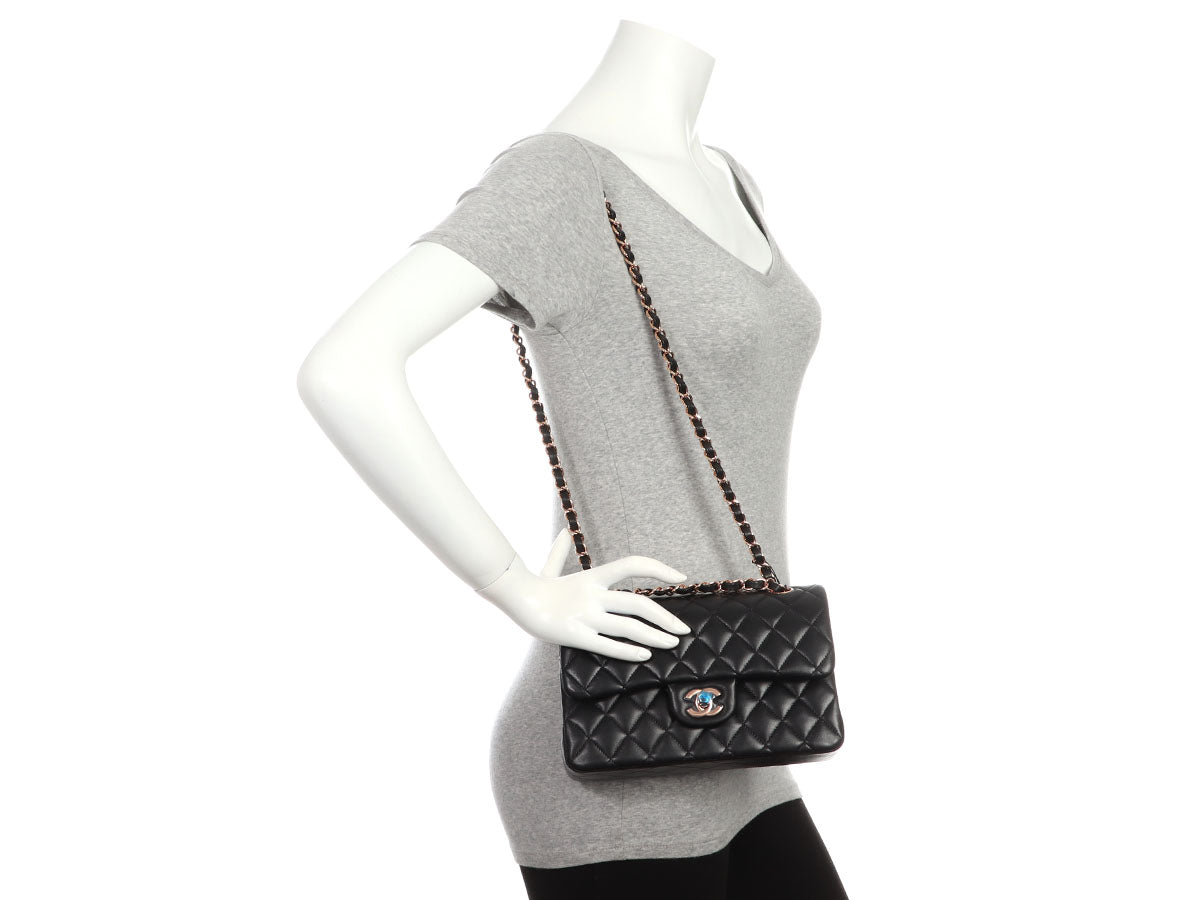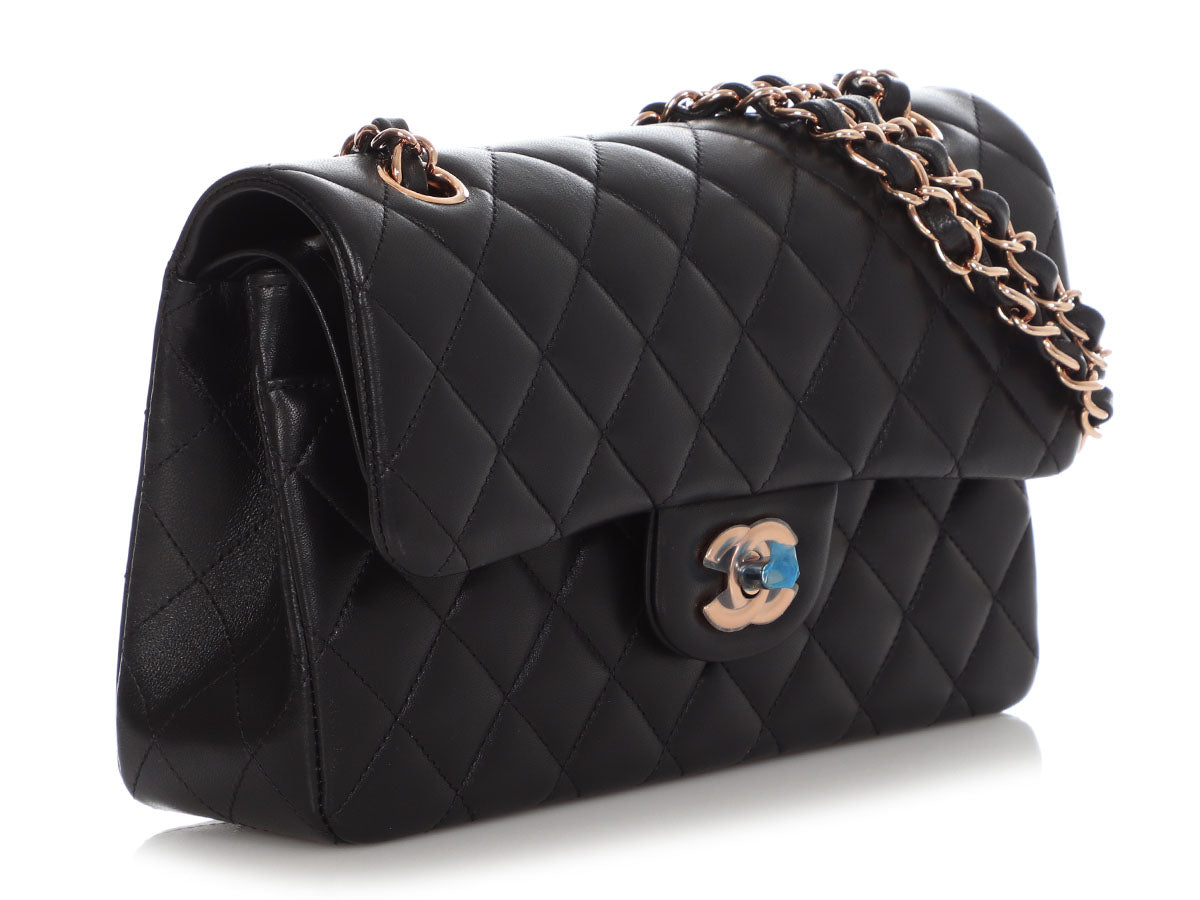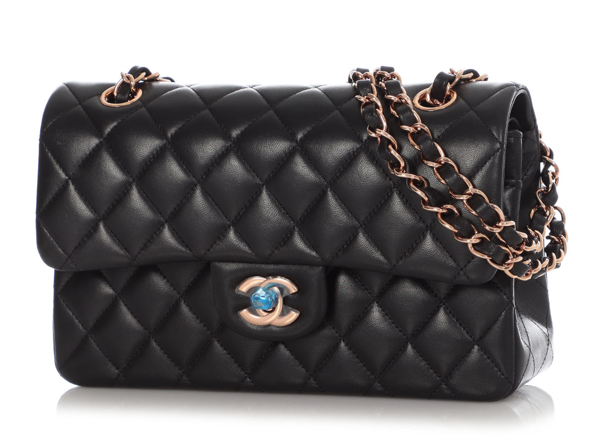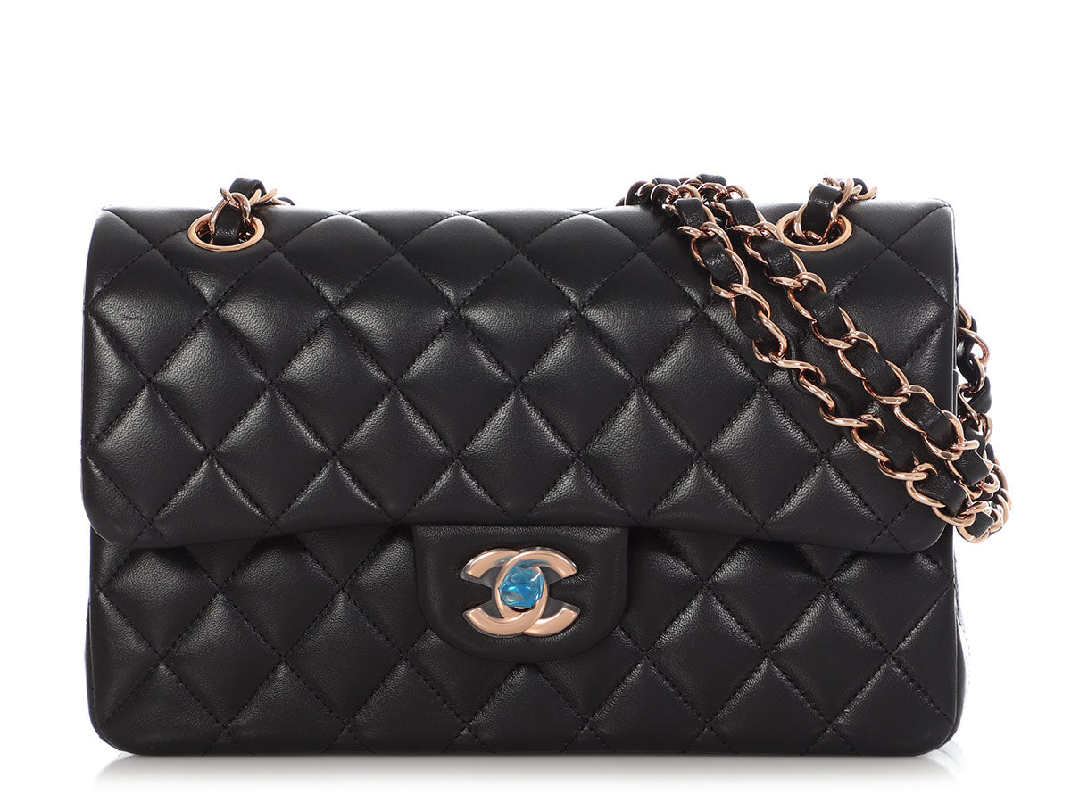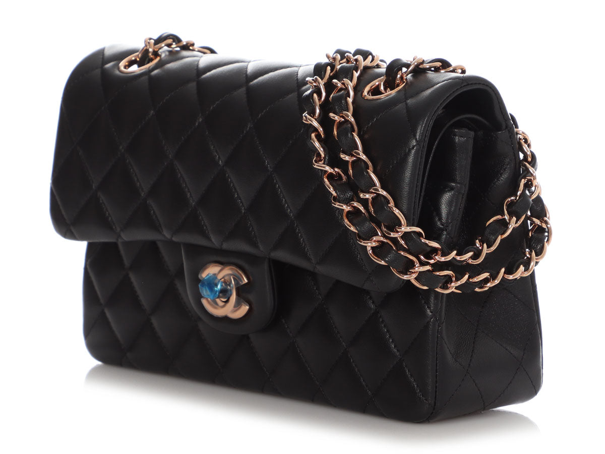 Chanel Small Black Quilted Lambskin Classic Double Flap