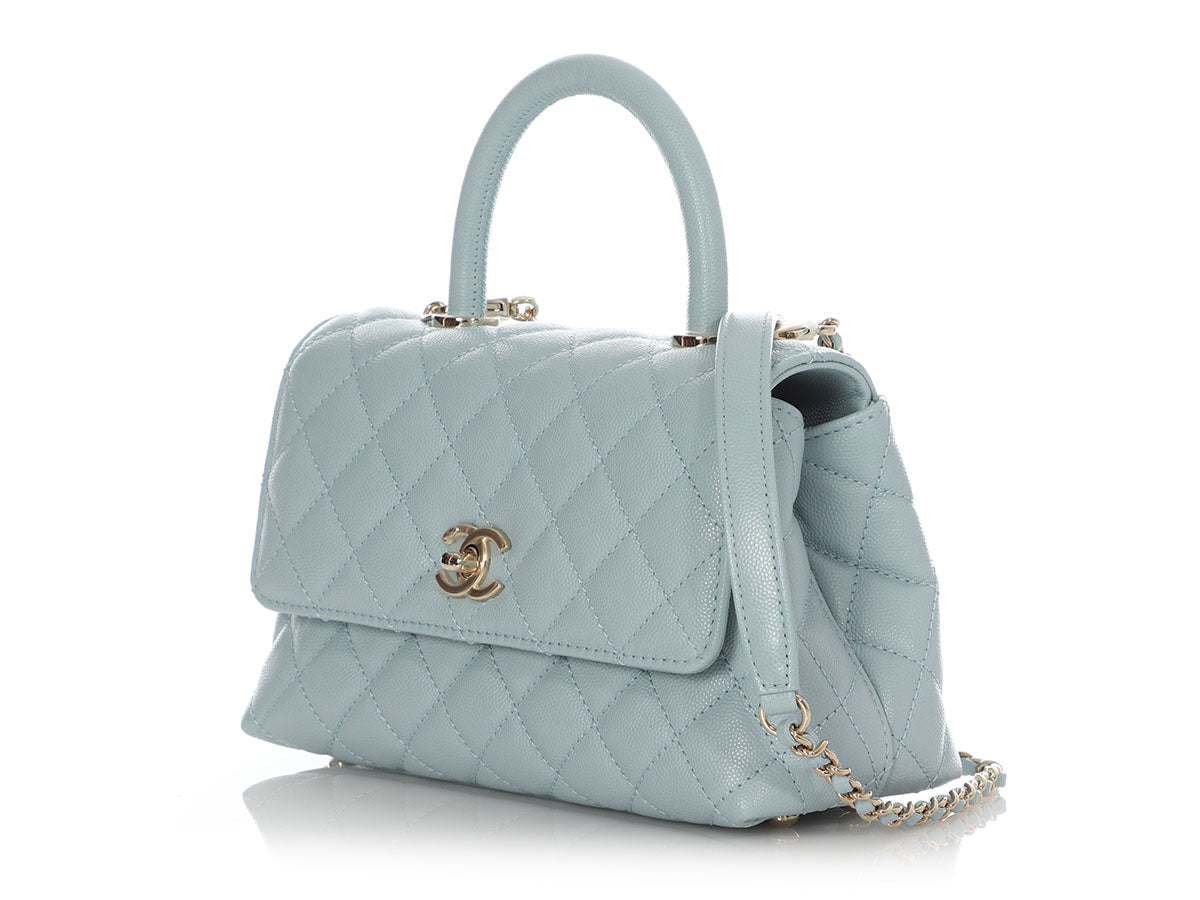 Chanel Mini Light Blue Quilted Caviar Coco Handle
