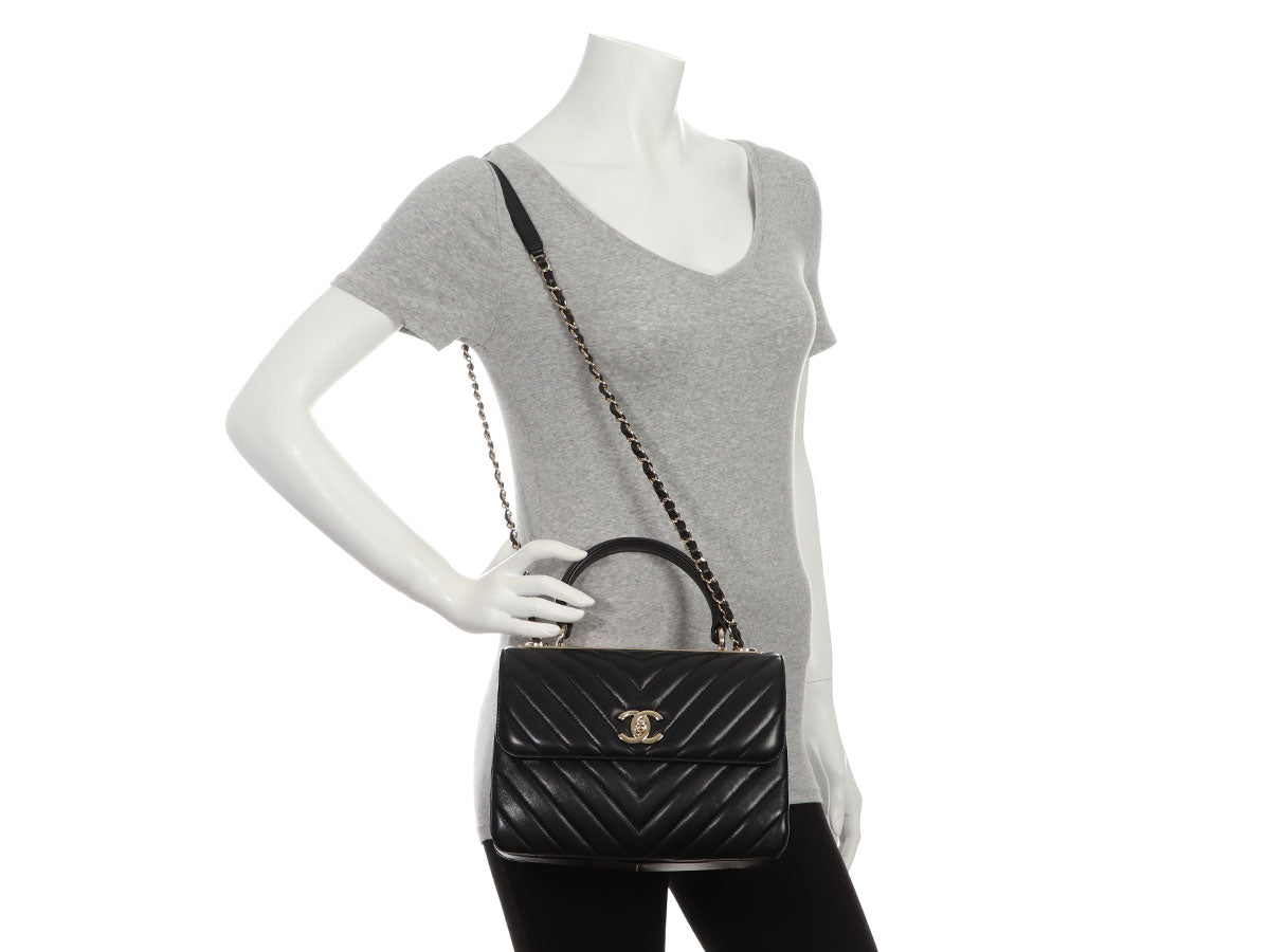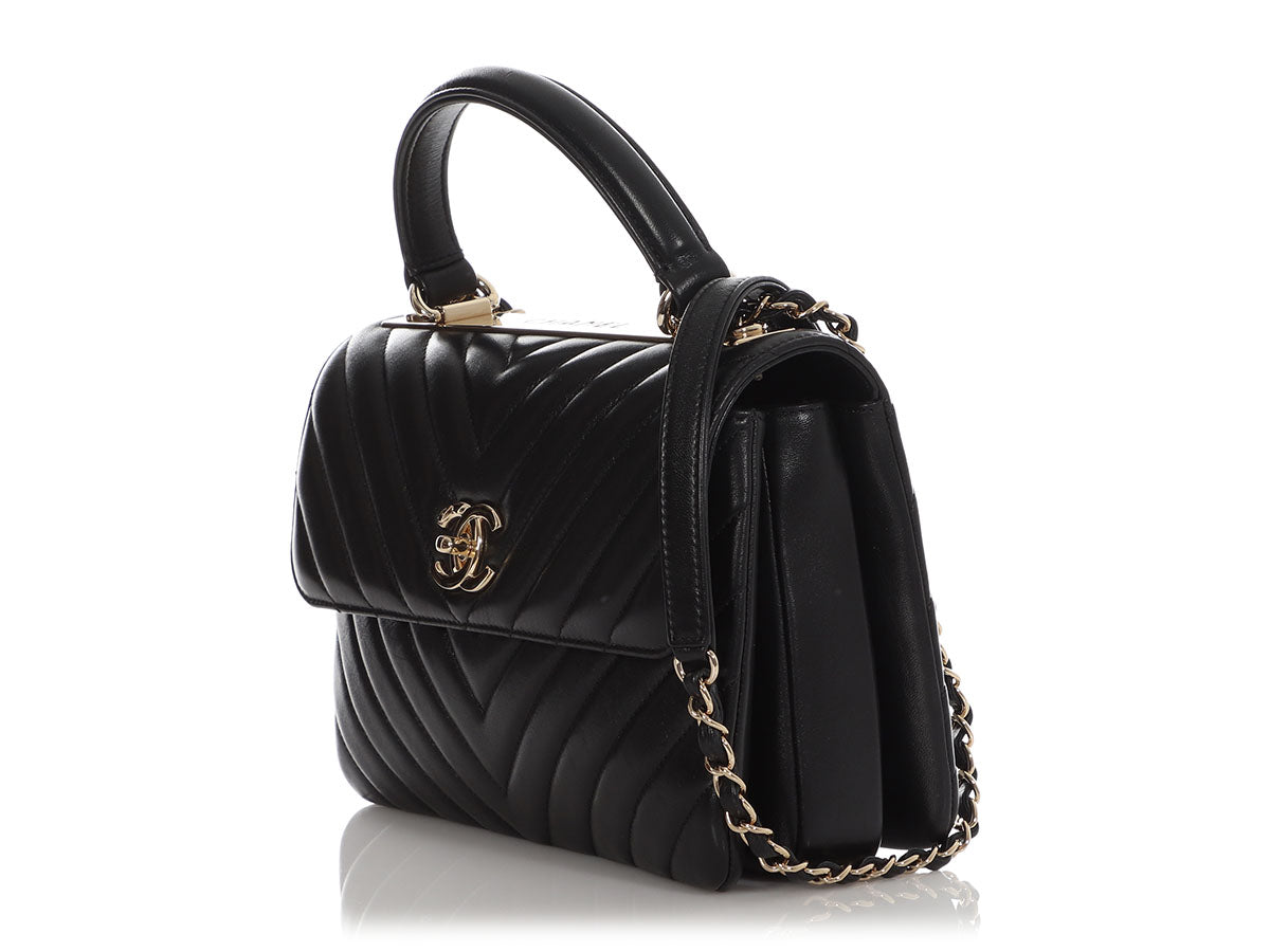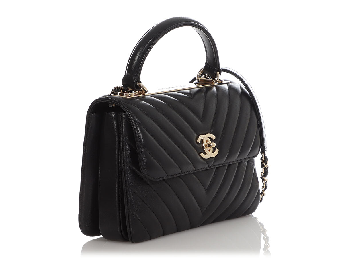 Chanel Medium Chevron-Quilted Black Lambskin Trendy CC Flap