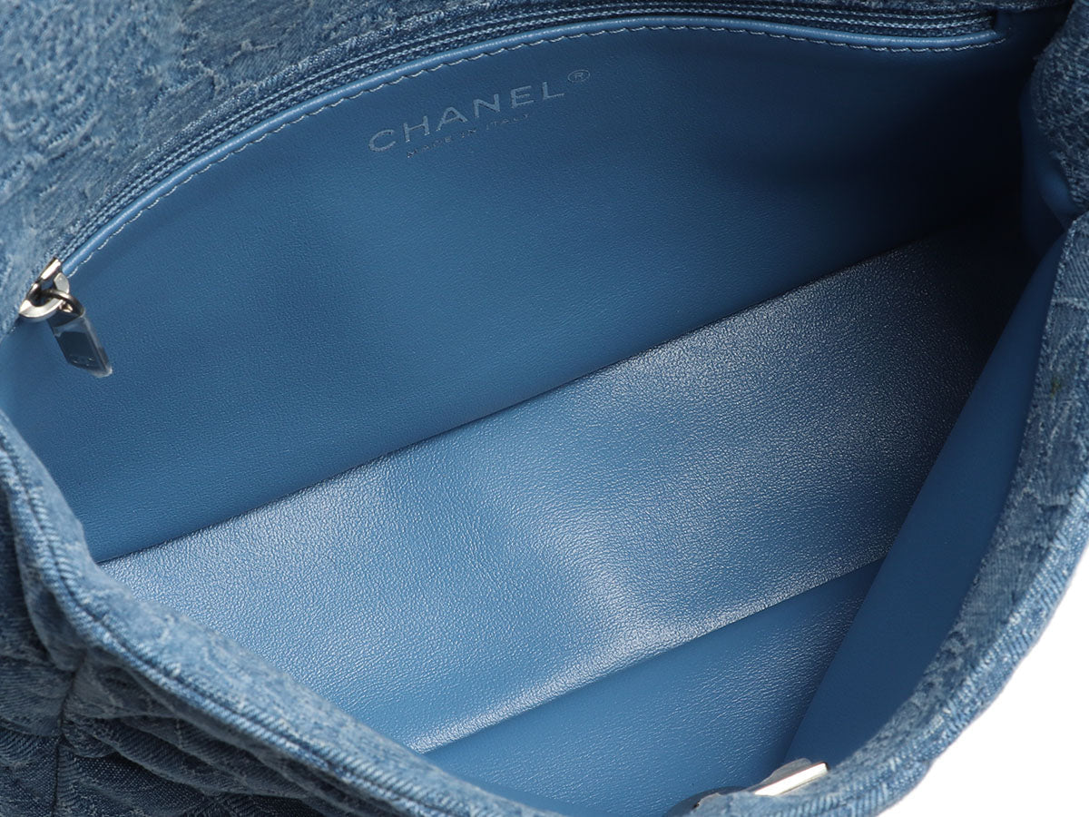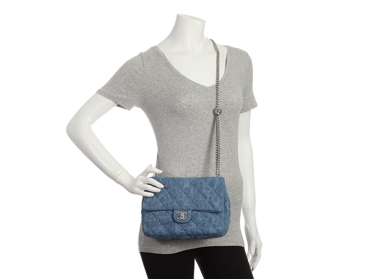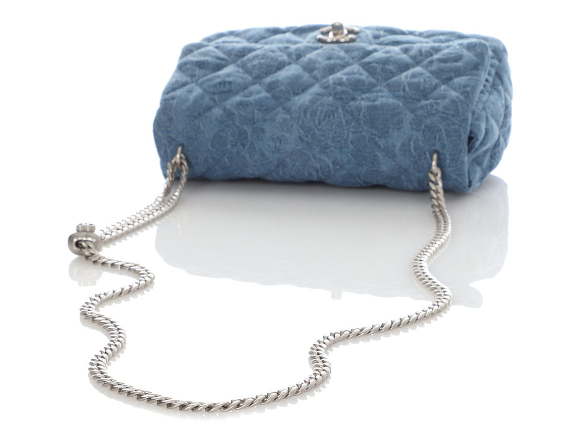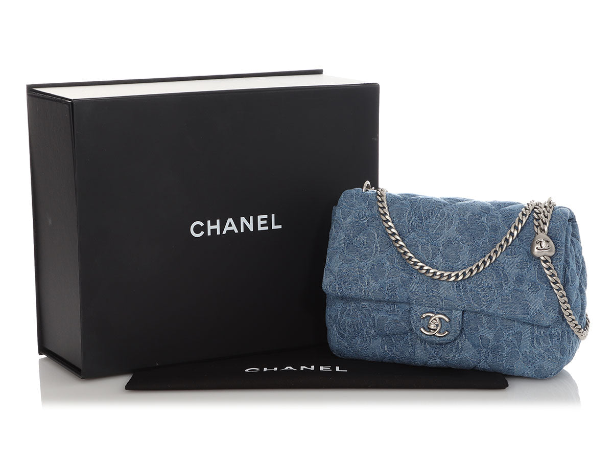 Chanel’s Medium Camellia Denim Sweetheart Flap is a riff on the timeless bag in fabric with brushed silver-tone hardware! The iconic Chanel camellia appears in this unquilted bag’s print and the logo turnlock twists open to reveal matching-colored-leather lining with one zippered pocket inside, while a Mona Lisa slide pocket offers itself on the back face. The hammered all-chain strap features a heart-shaped logo charm and can be worn doubled with a 12-inch drop or as a crossbody at its full drop of 21.5 inches. In great condition, it comes with a dustbag and box and has scratches on the clasp hardware and a faint mark on the front. I’ve got a soft spot in my heart for this slouchy-cool Sweetheart!