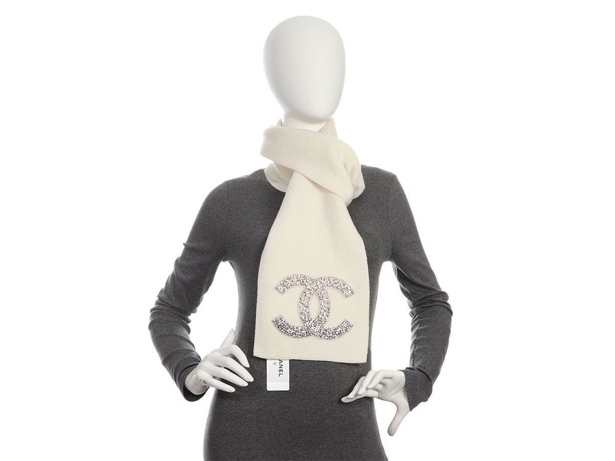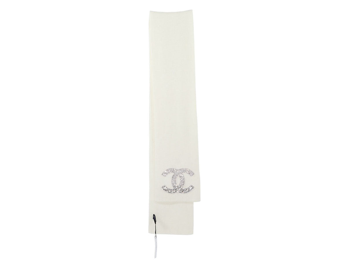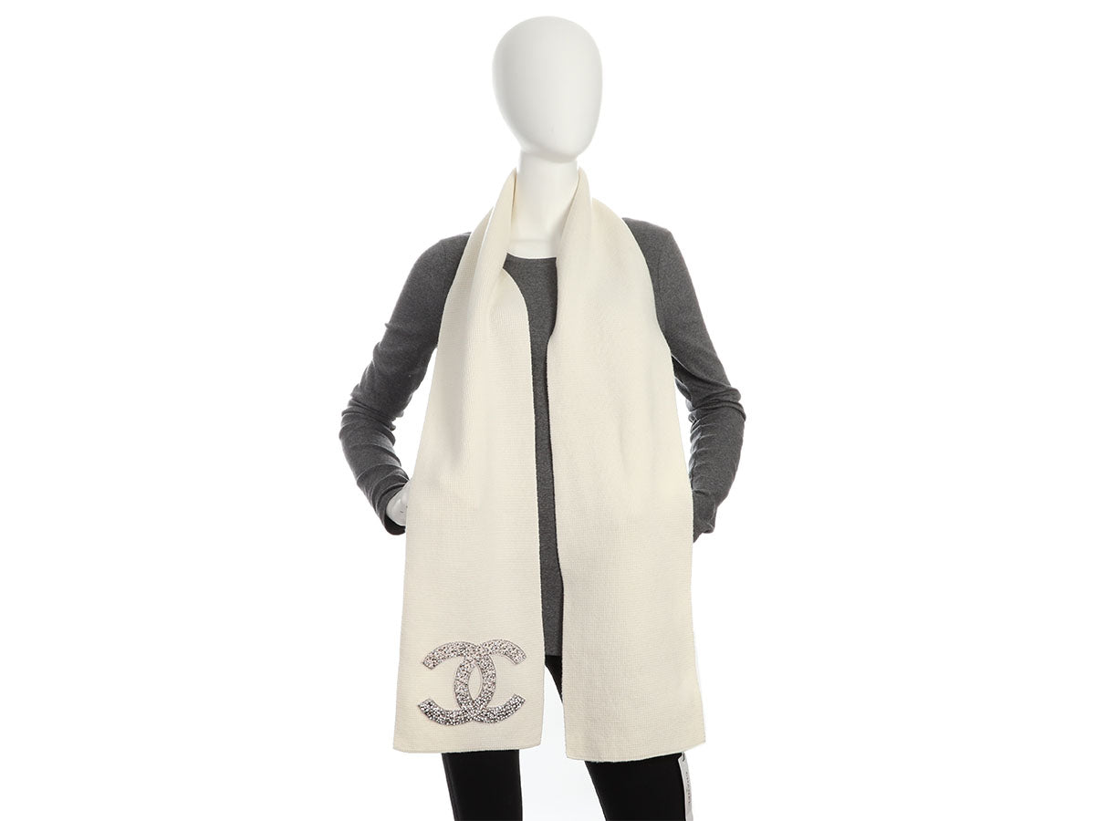Chanel Ivory Cashmere Crystal Scarf