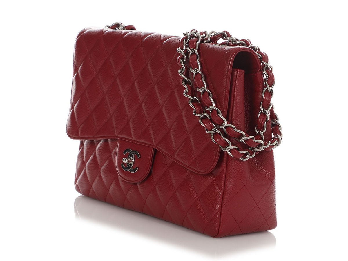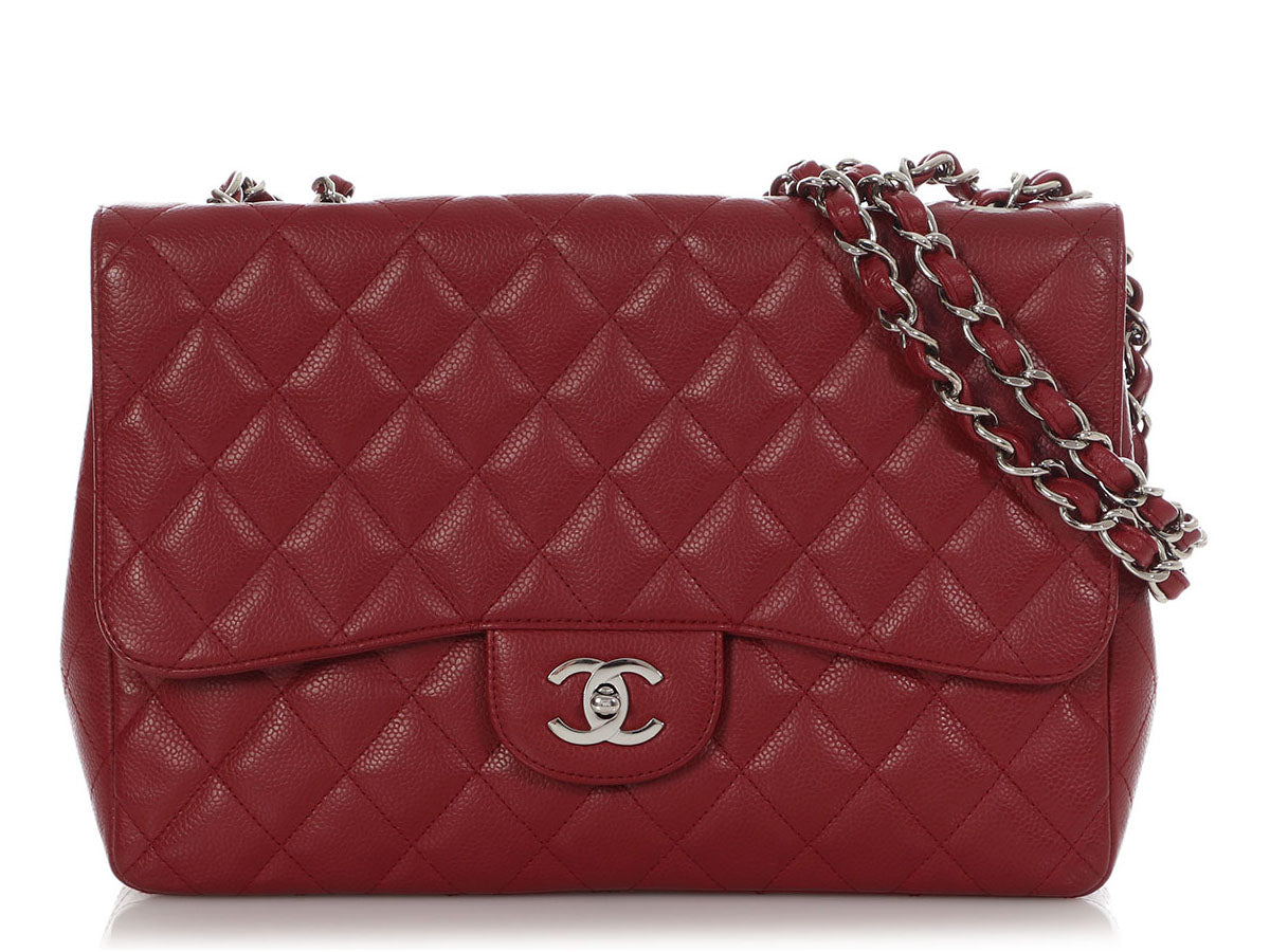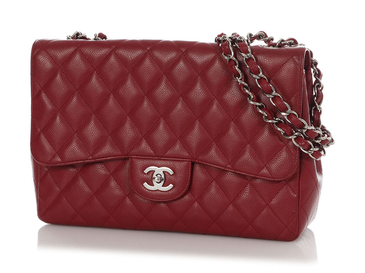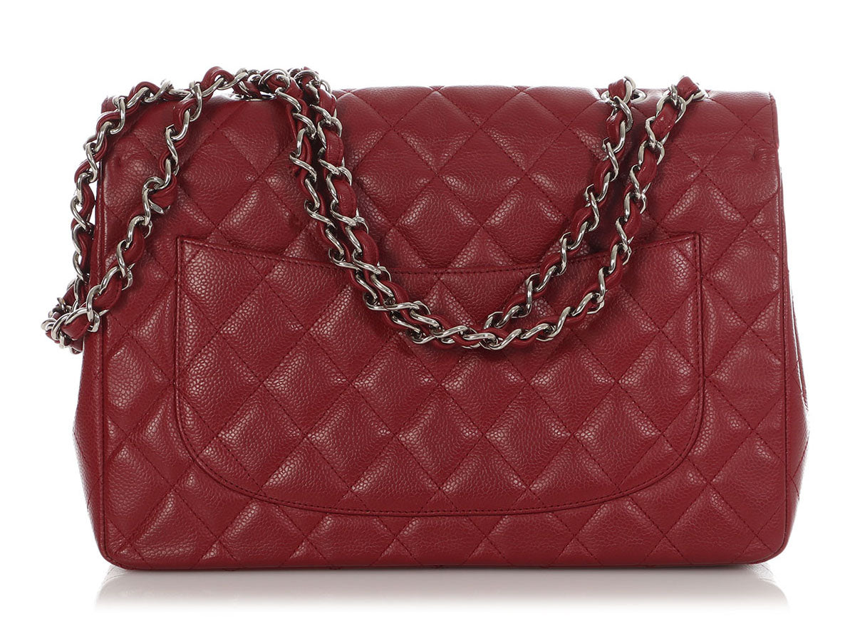 Chanel Jumbo Dark Red Quilted Caviar Classic Single Flap