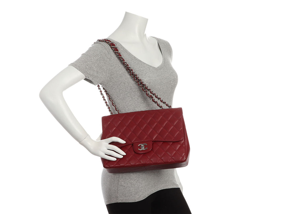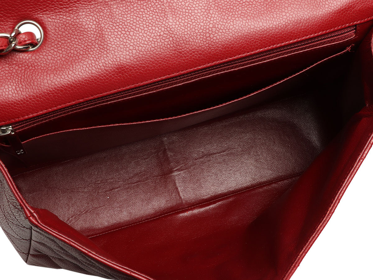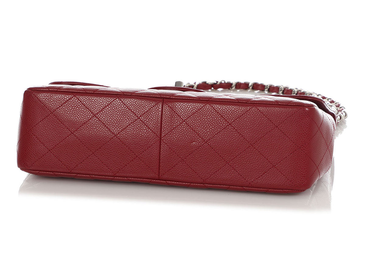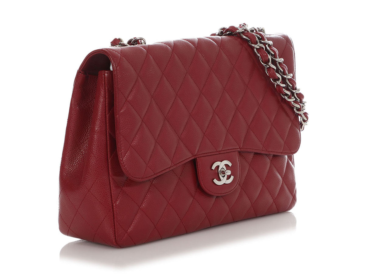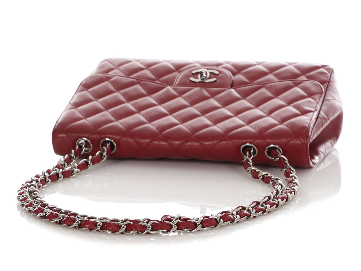 Chanel Jumbo Dark Red Quilted Caviar Classic Single Flap