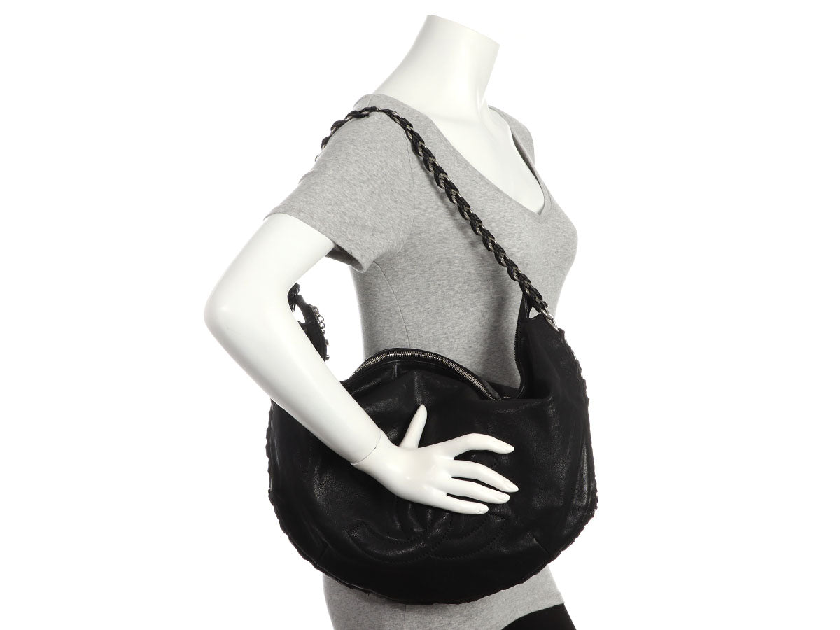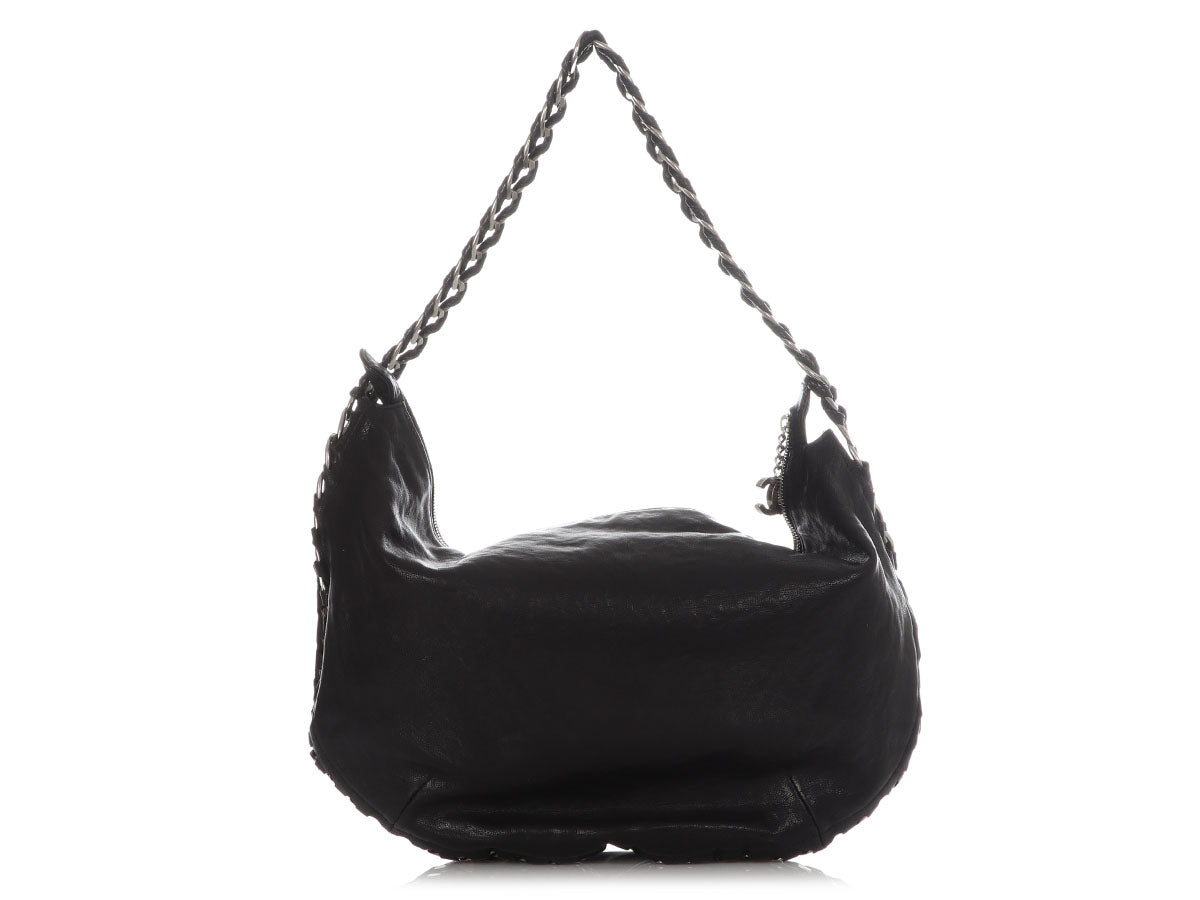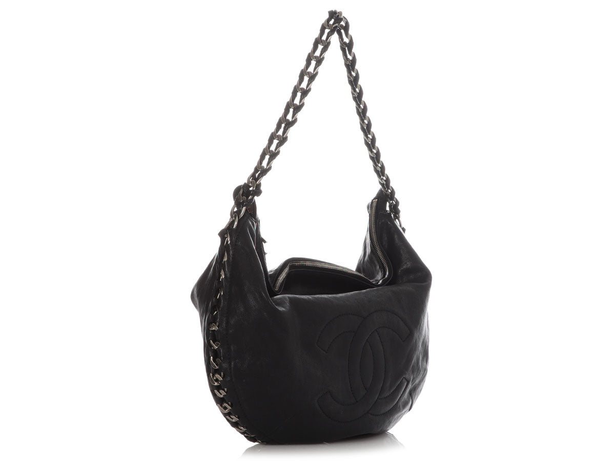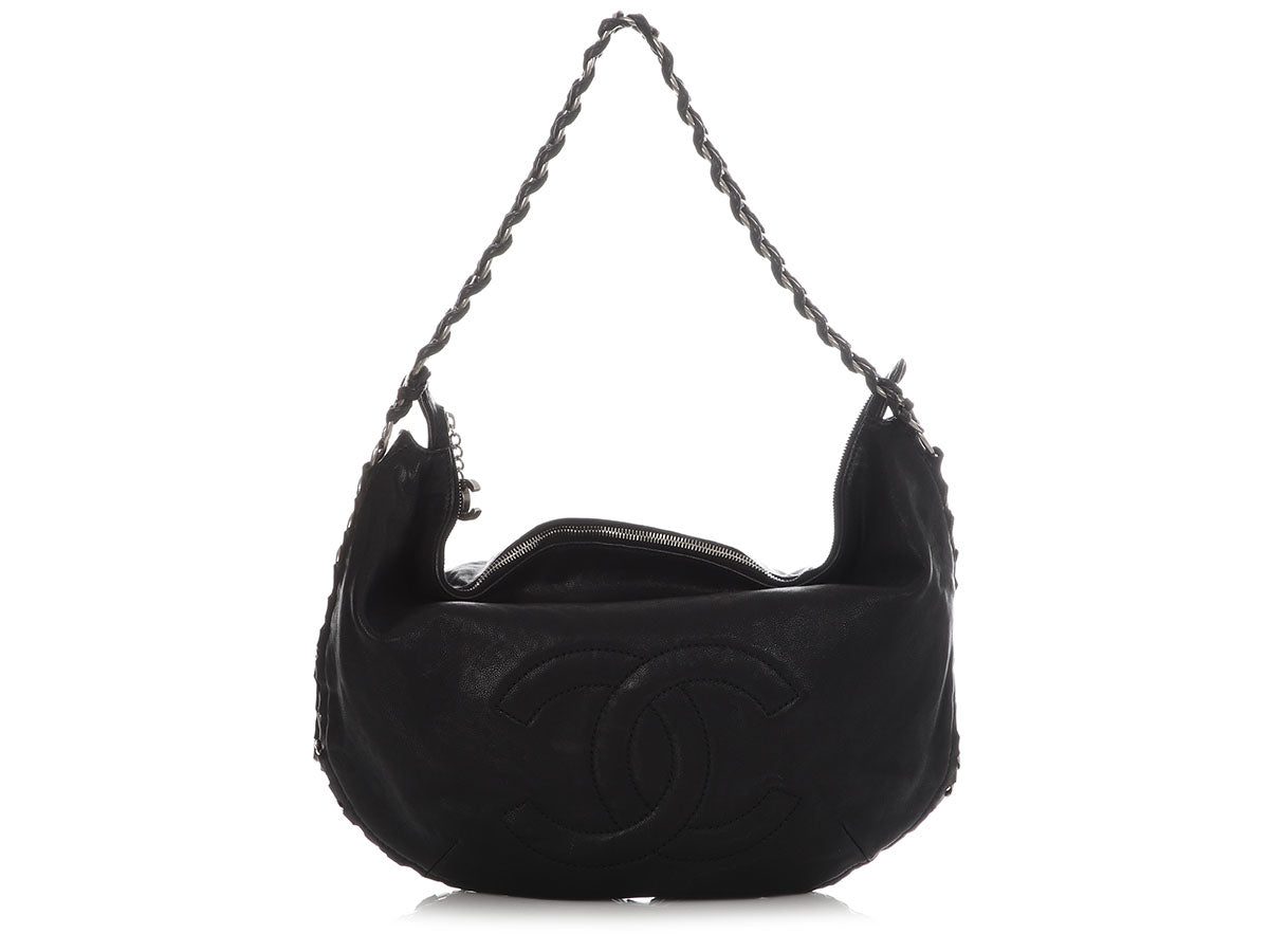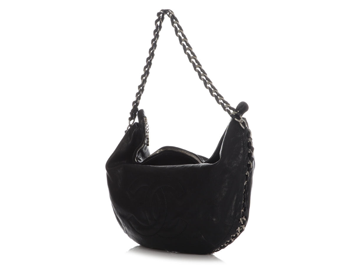 Chanel XL Black Distressed Calfskin Modern Chain Hobo