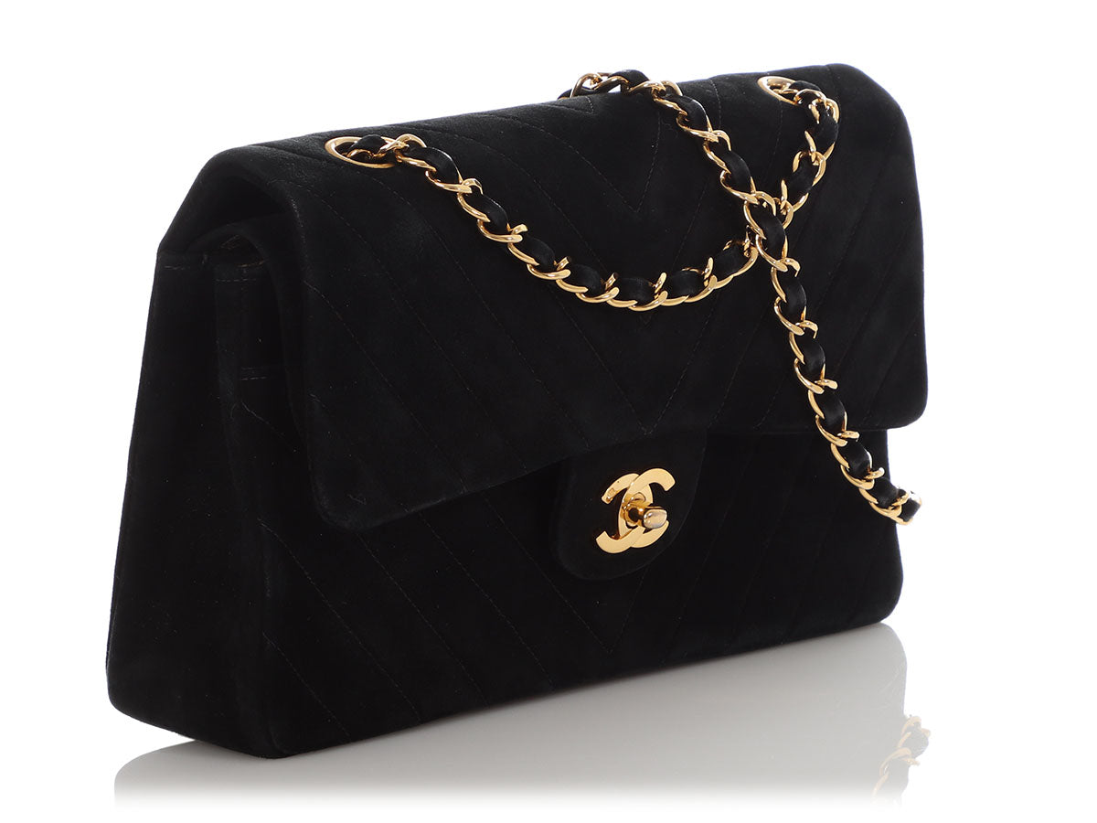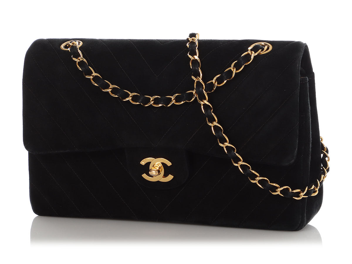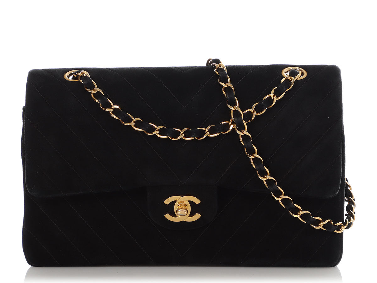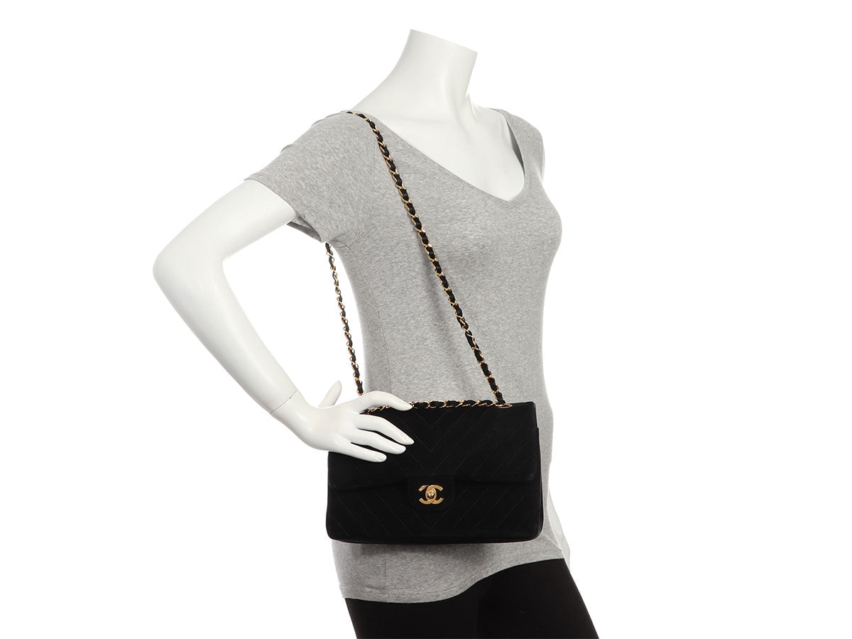 Chanel Medium/Large Black Chevron-Quilted Suede Classic Double Flap