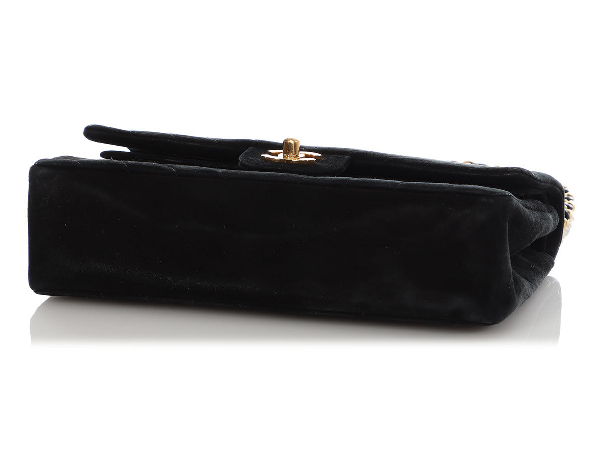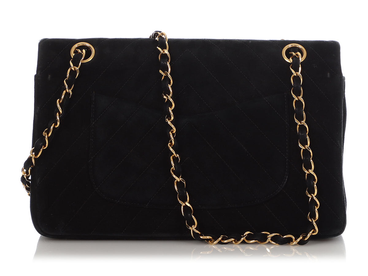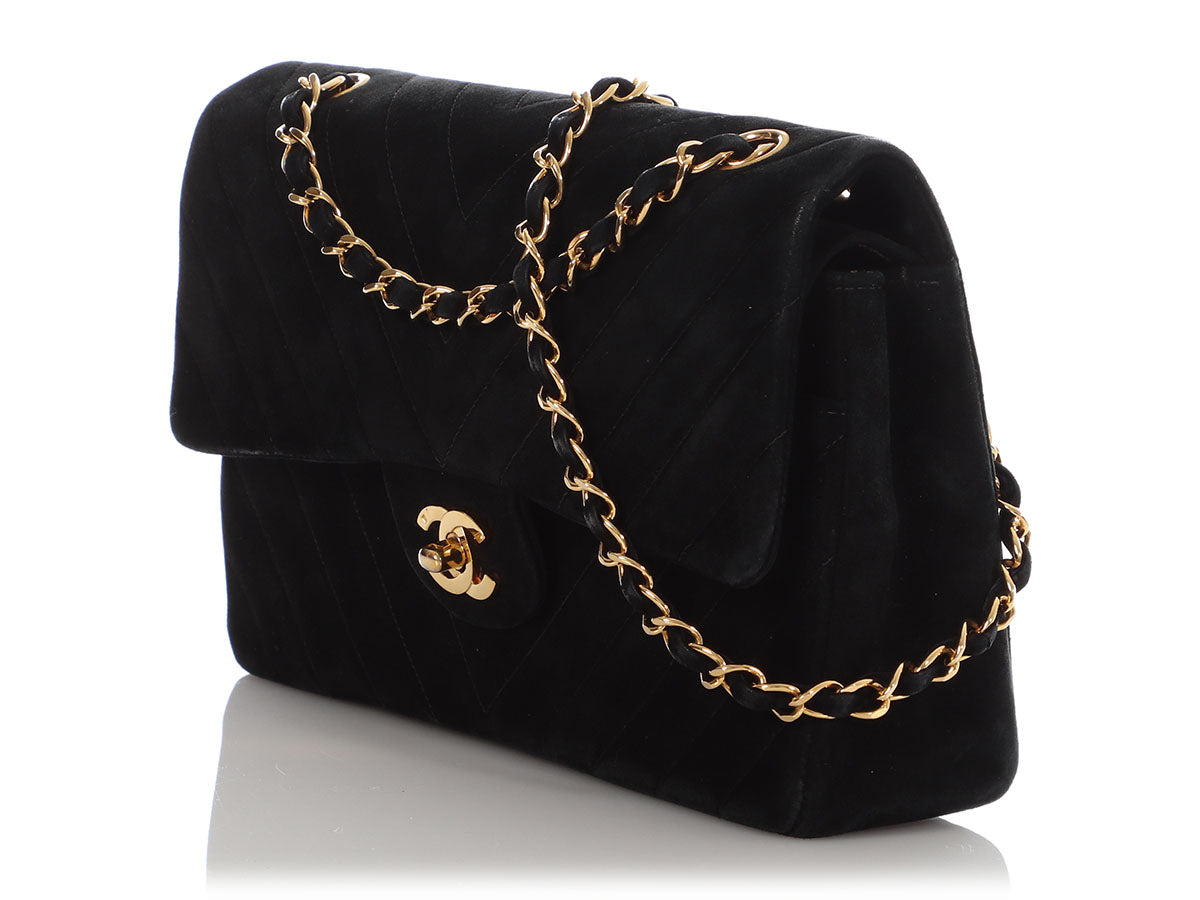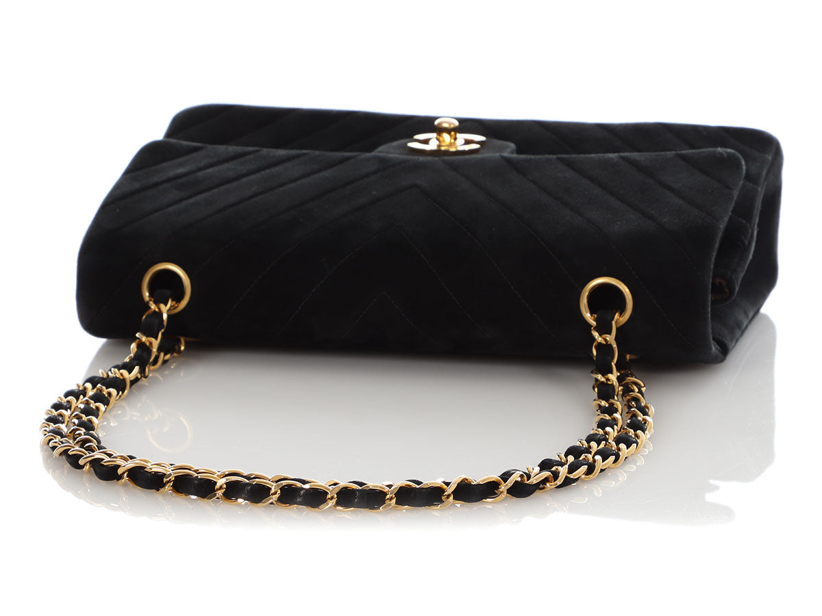 Chanel Medium/Large Black Chevron-Quilted Suede Classic Double Flap
