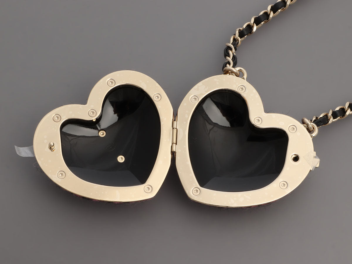 Chanel Purple and Black Tweed Heart Locket Necklace