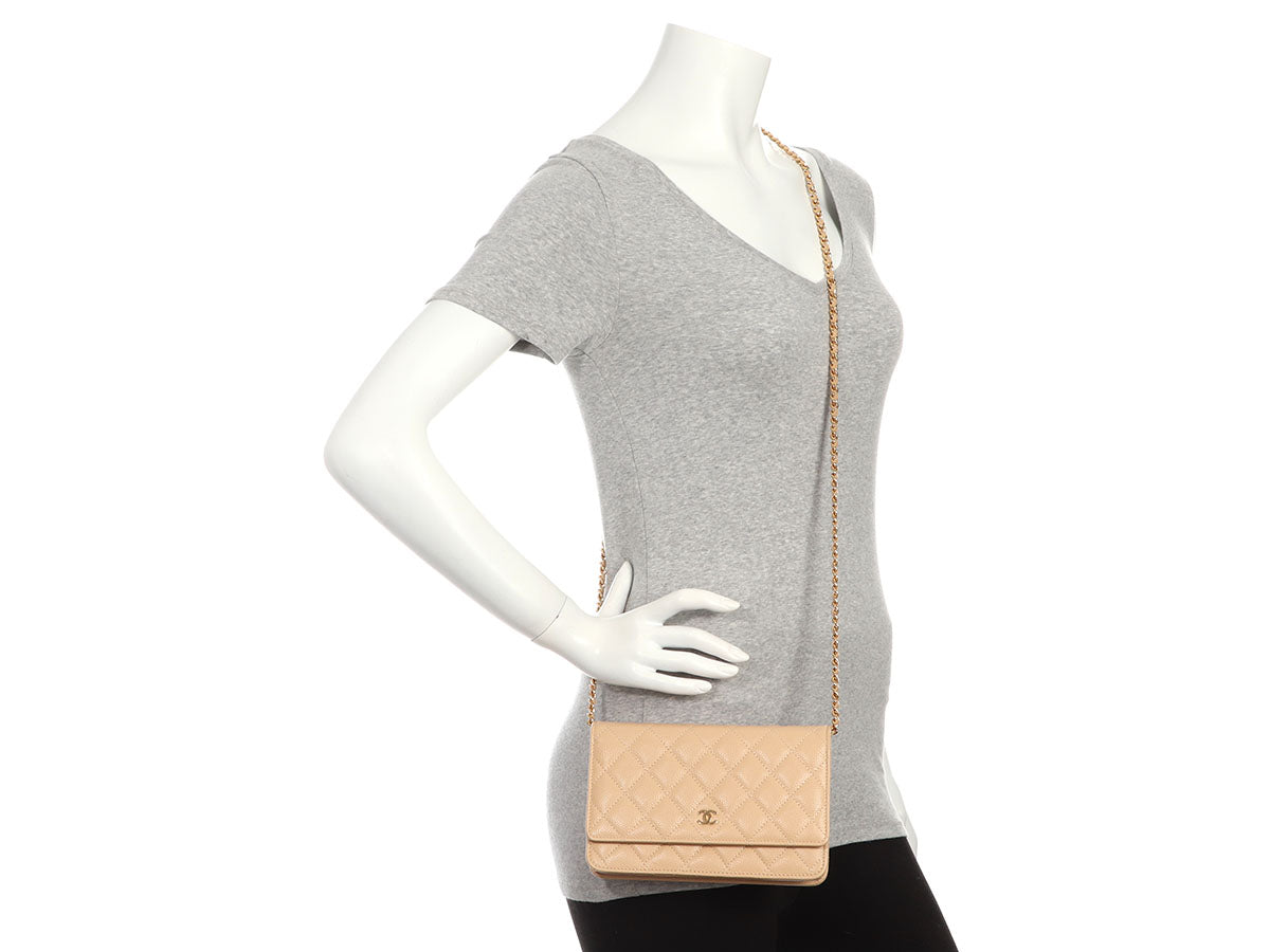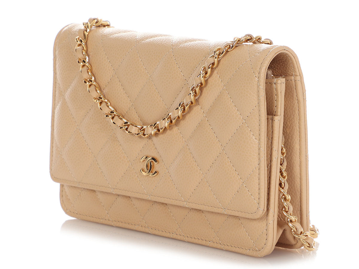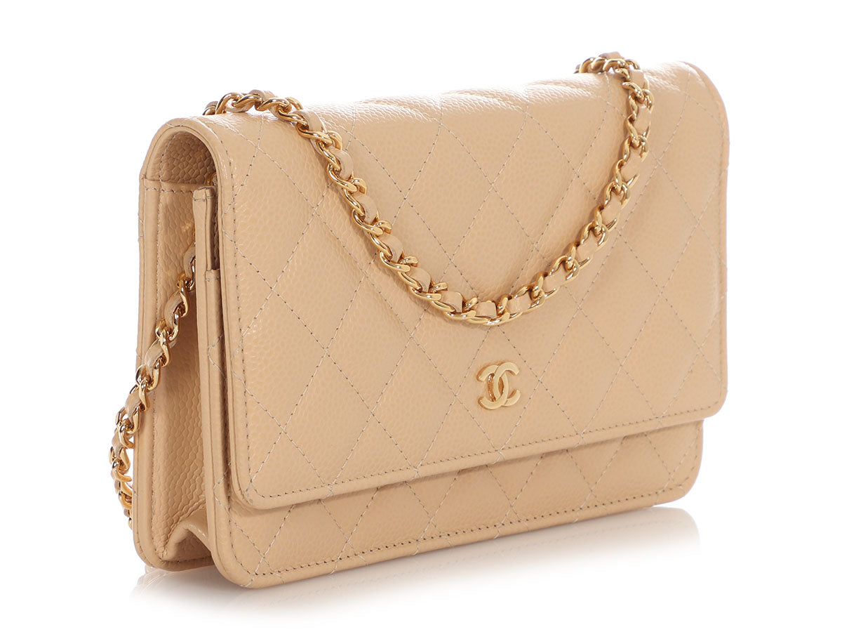 Chanel Beige Quilted Caviar Wallet on Chain WOC