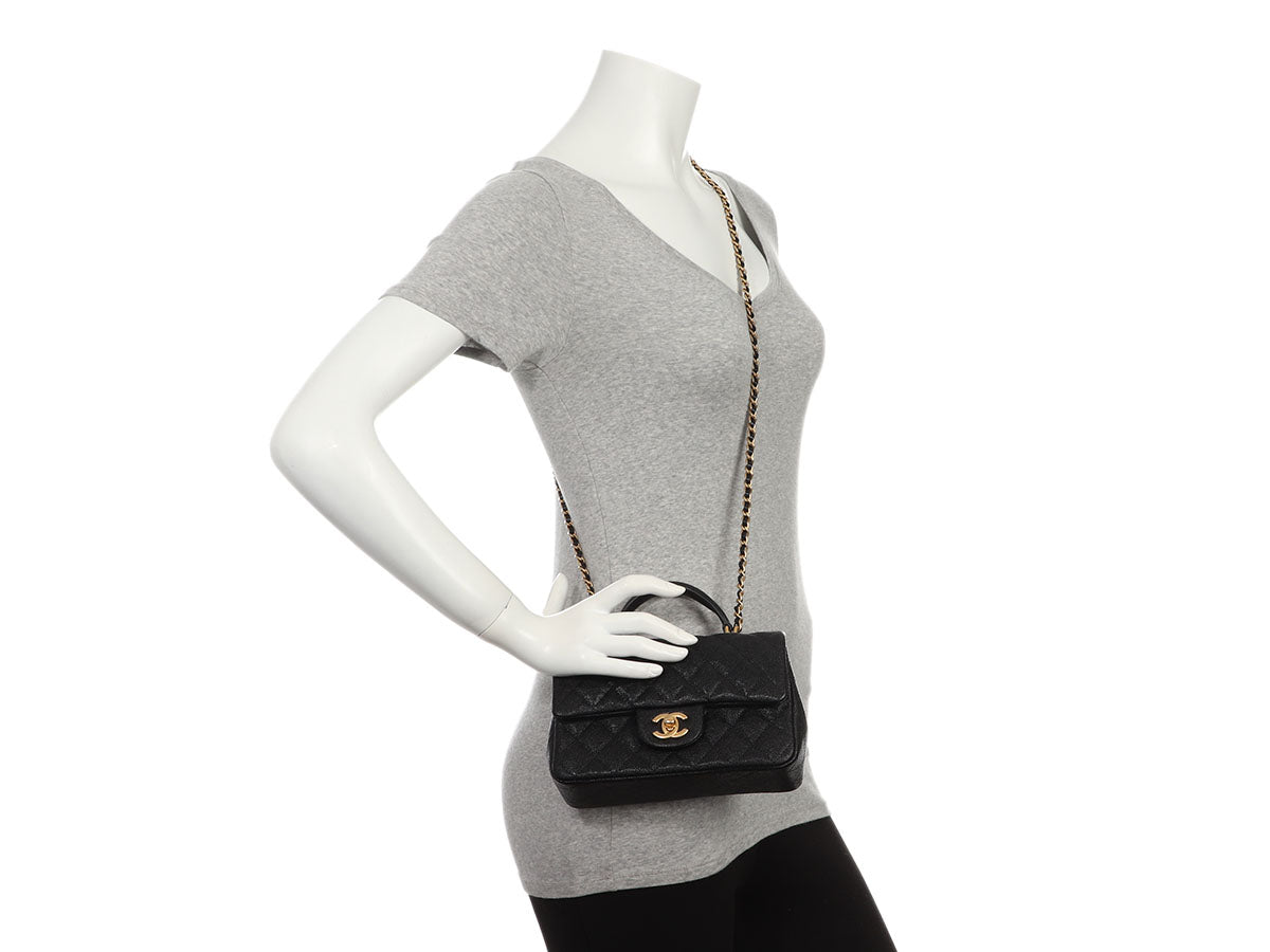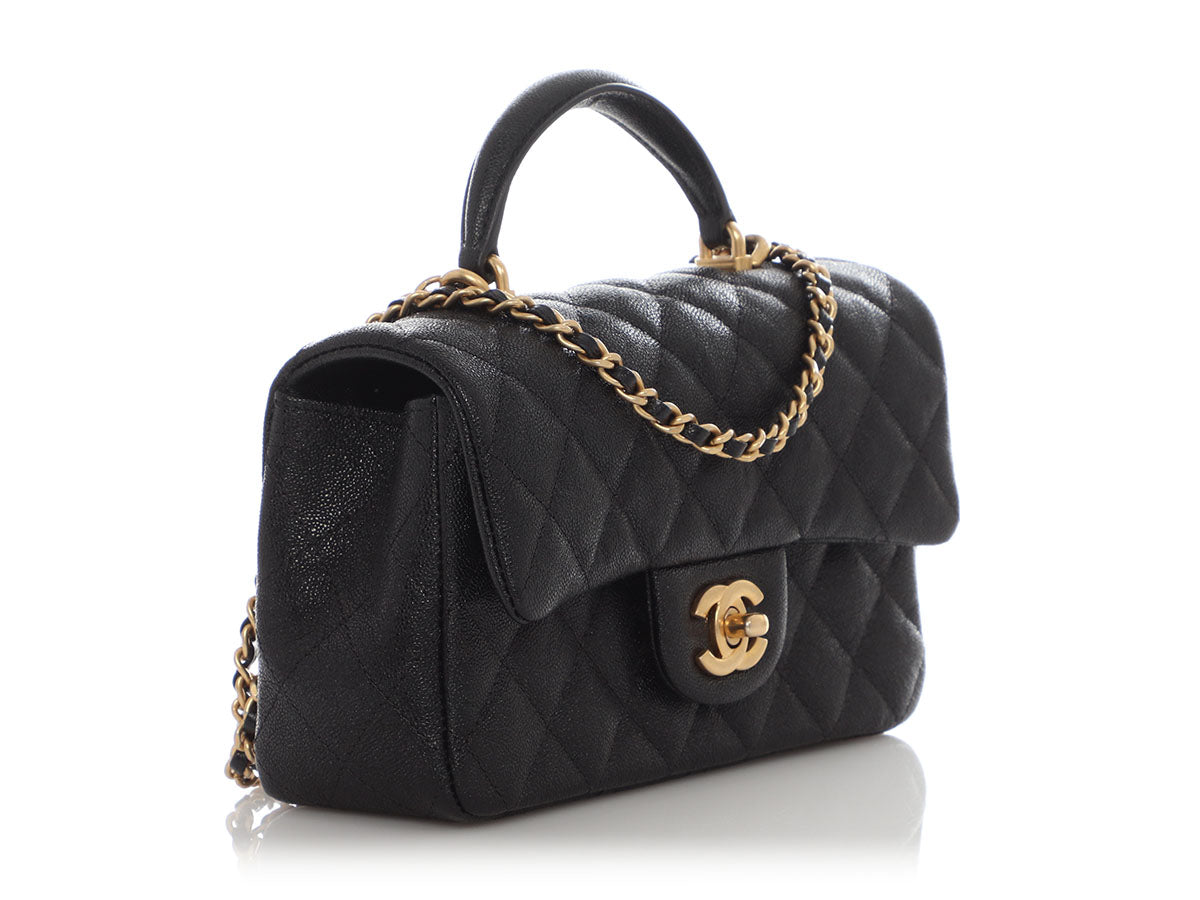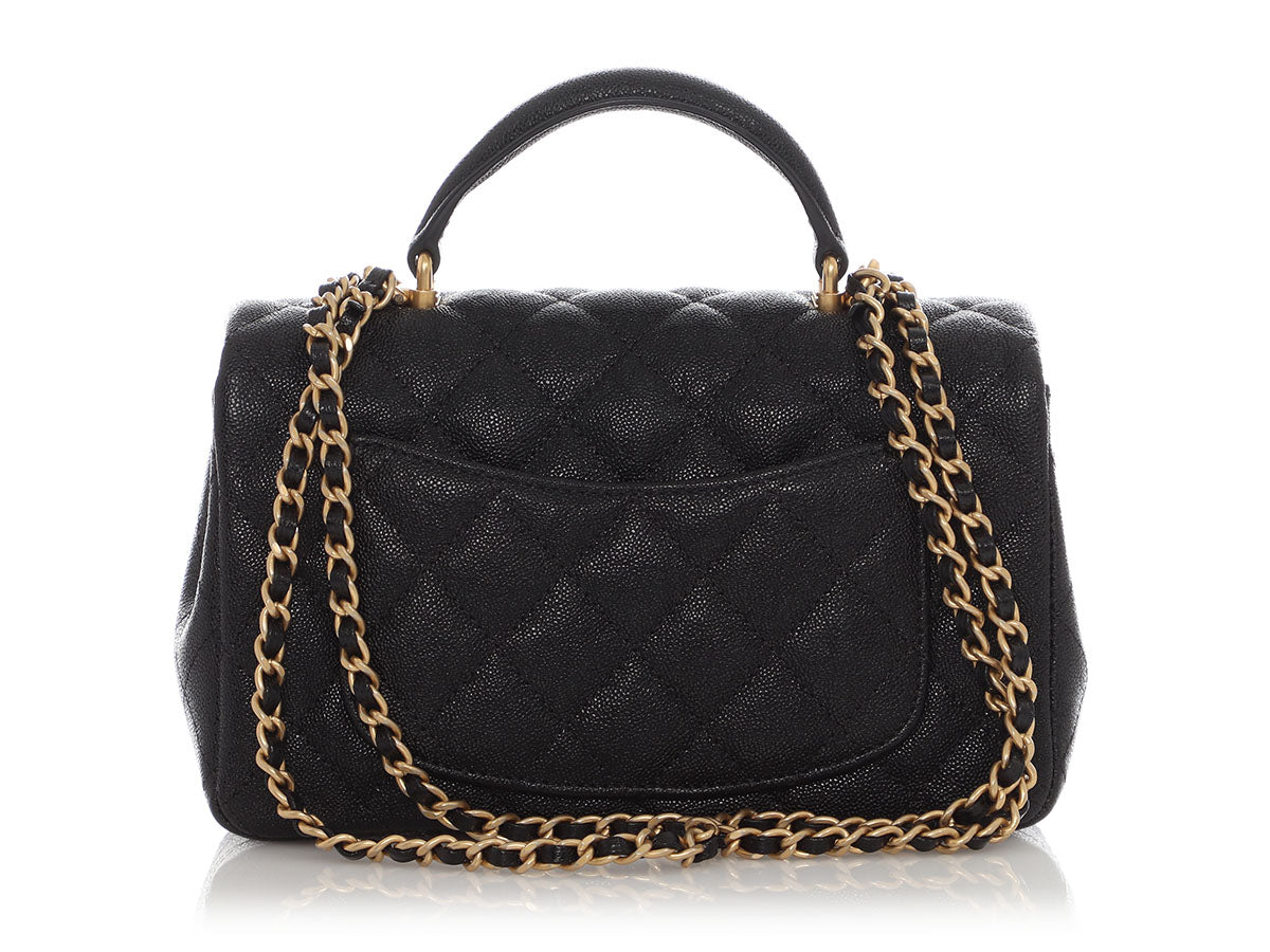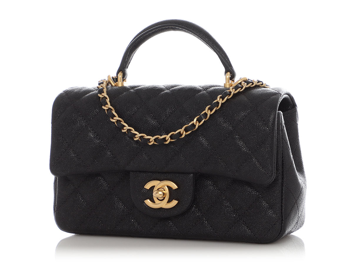 Chanel Mini Black Quilted Caviar Top Handle Flap