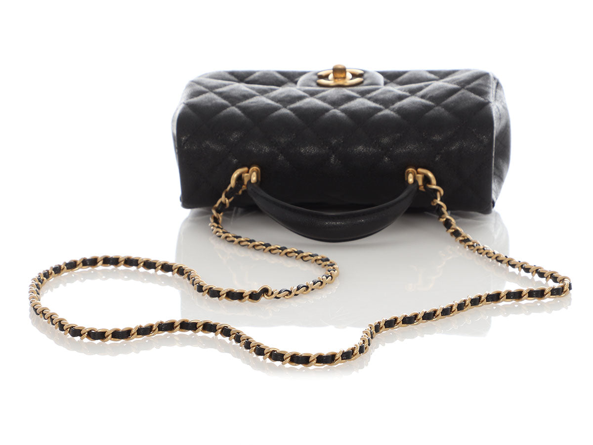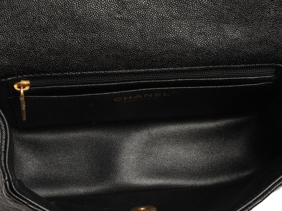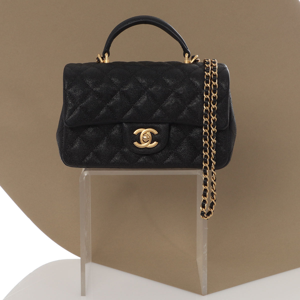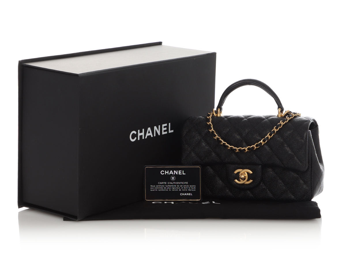 Chanel Mini Black Quilted Caviar Top Handle Flap