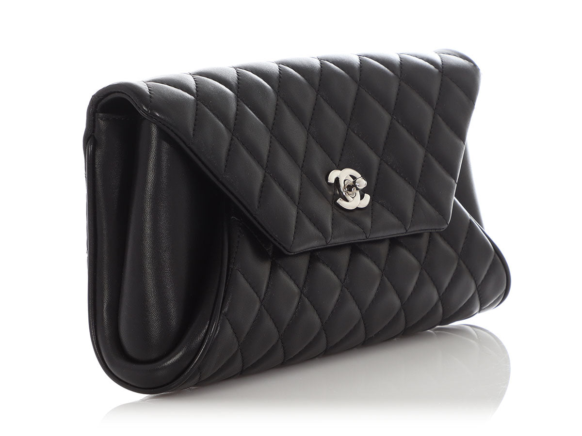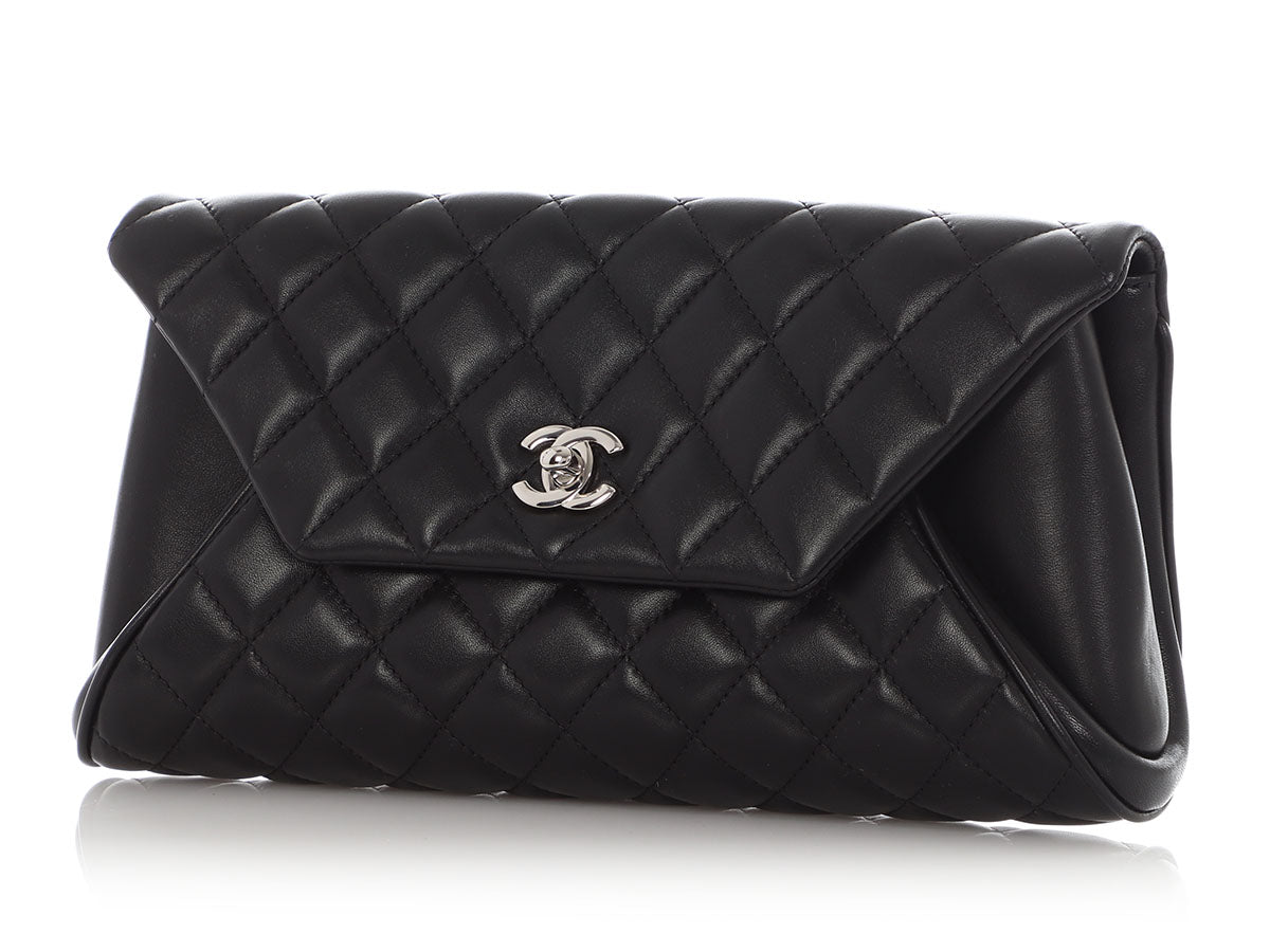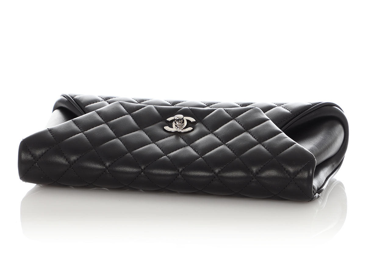 Chanel Black Part-Quilted Lambskin Fold Up Again Clutch