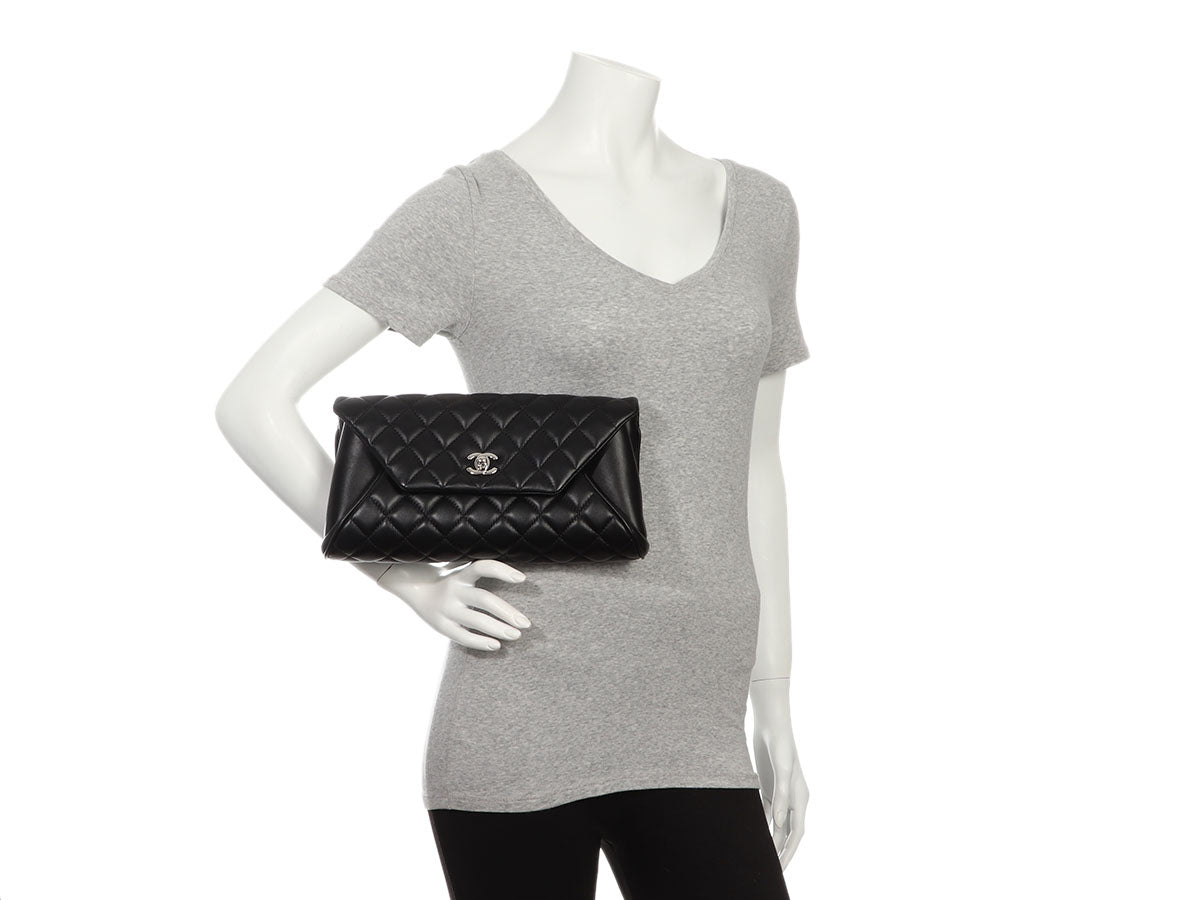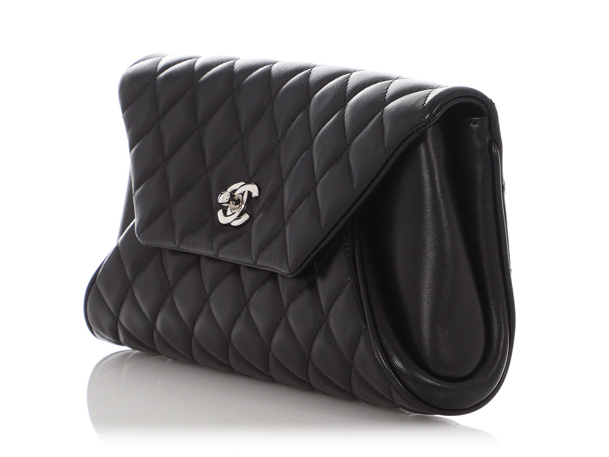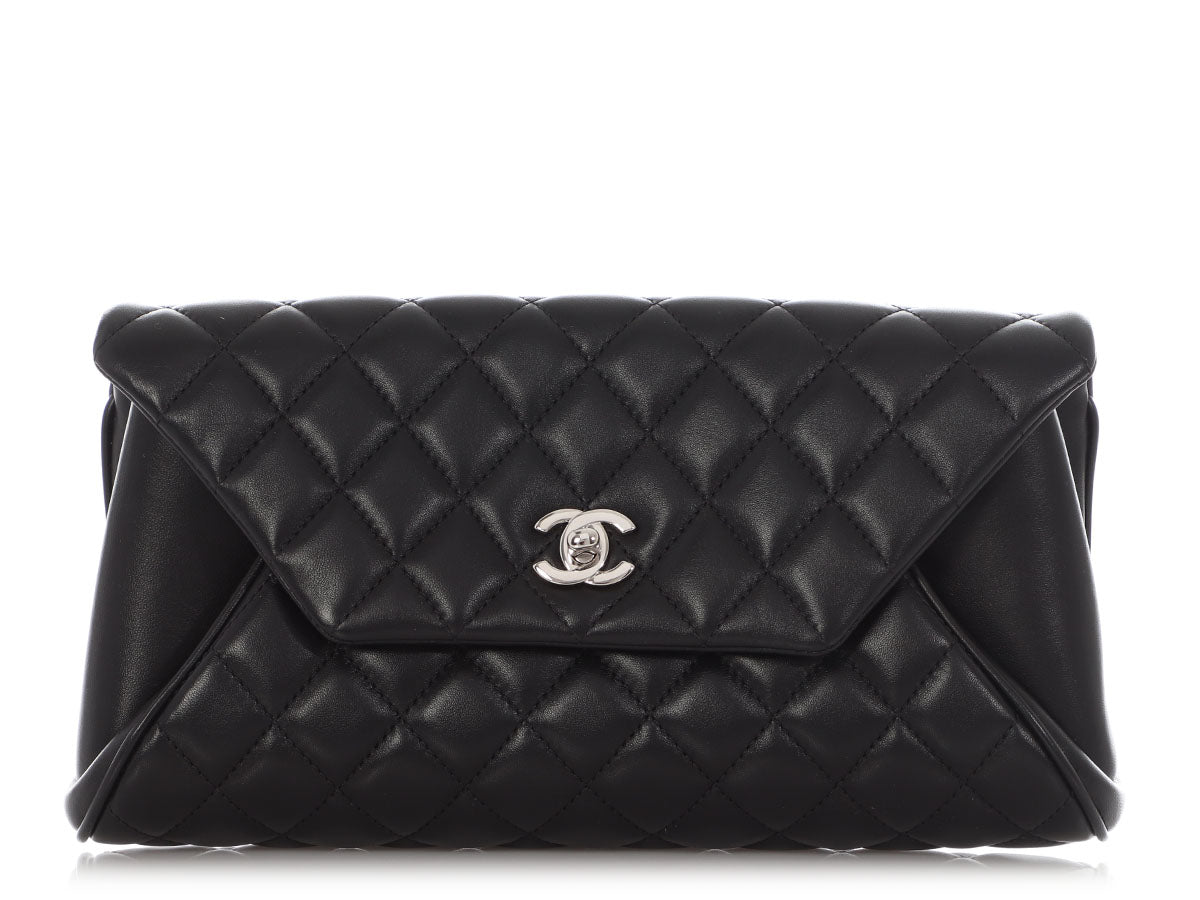 Chanel Black Part-Quilted Lambskin Fold Up Again Clutch