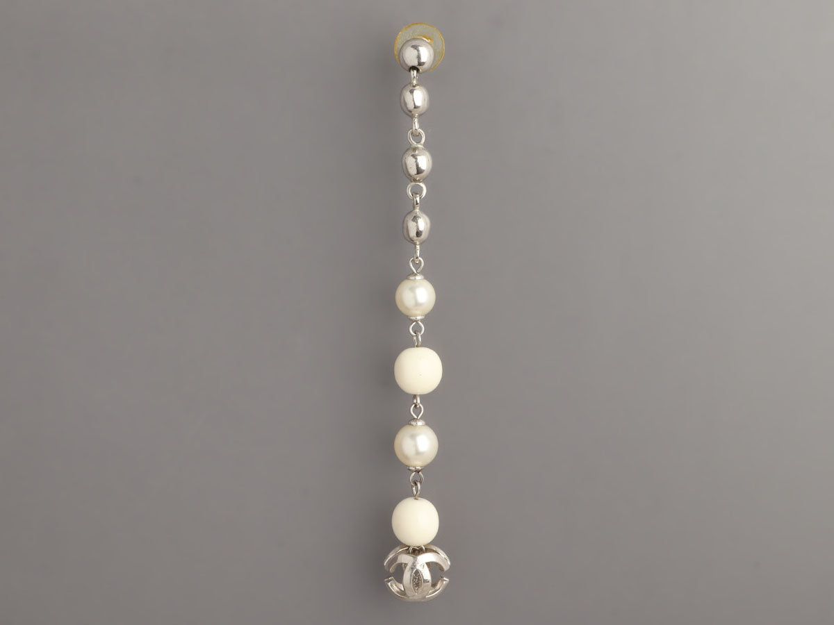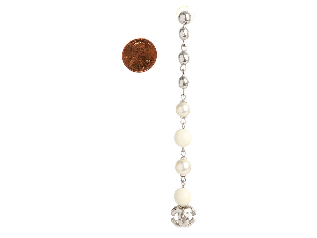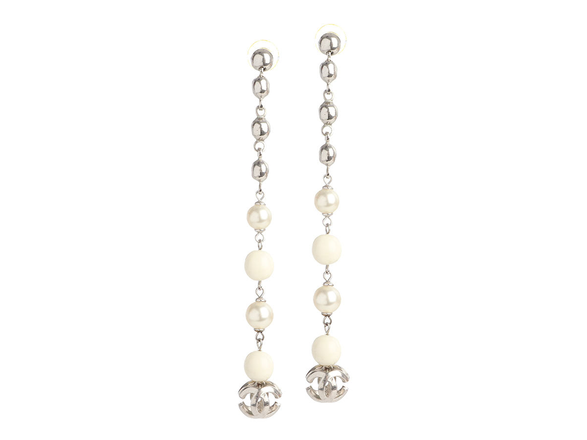 Chanel Long Beads and Pearls Logo Pierced Drop Earrings